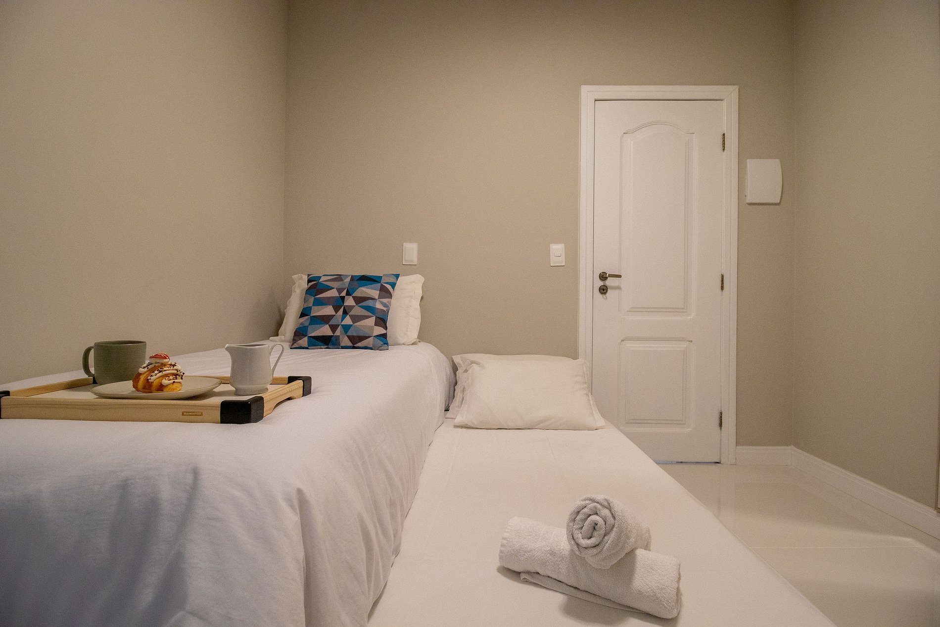 Disponibilizamos roupa de cama básica (lençol de elástico, sobre lençol e travesseiros com fronha) e uma toalha de banho por hóspede. Fornecemos um edredom para cada cama e uma manta de microfibra para a cama auxiliar, garantindo praticidade e conforto durante sua estadia.