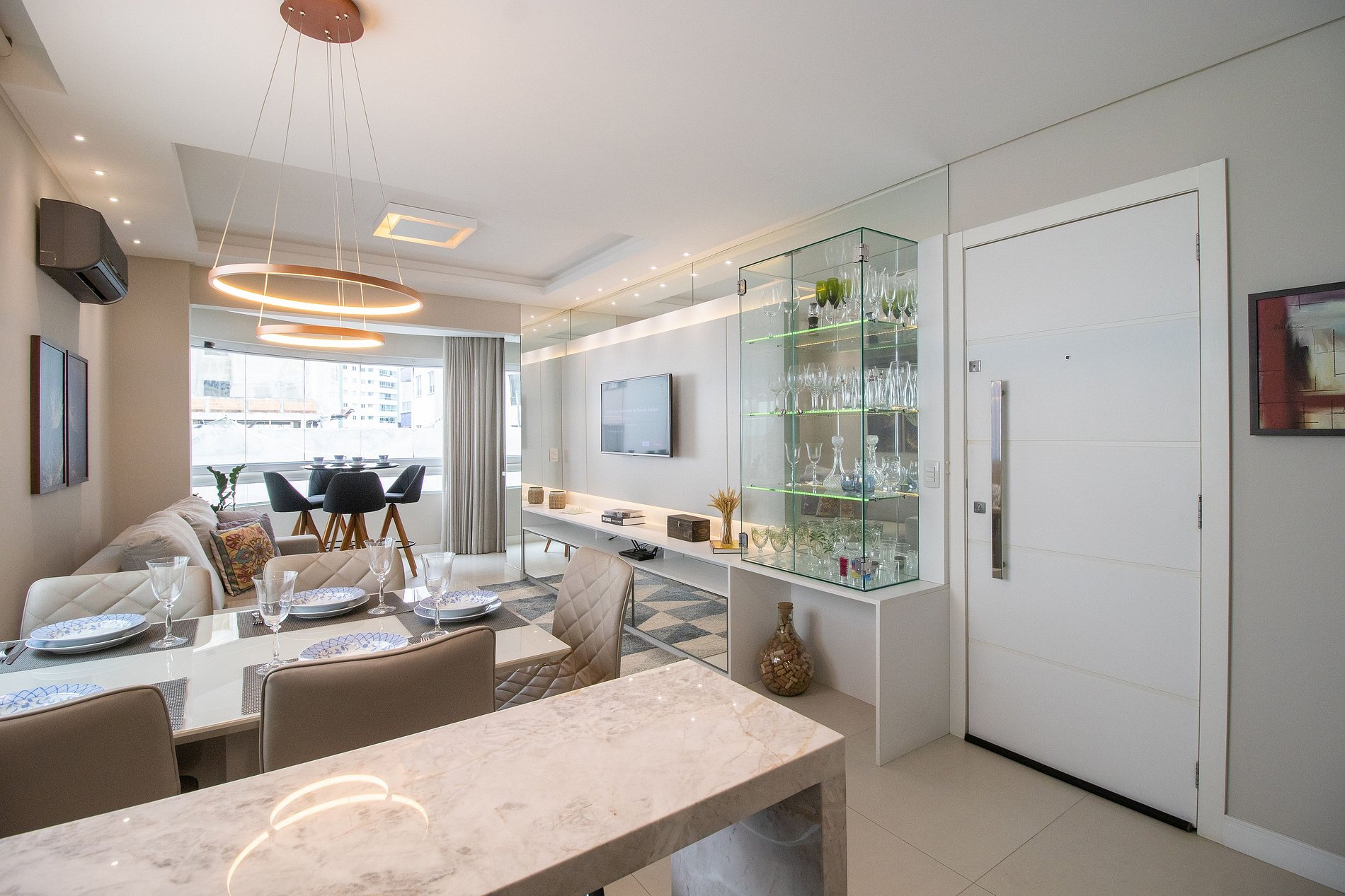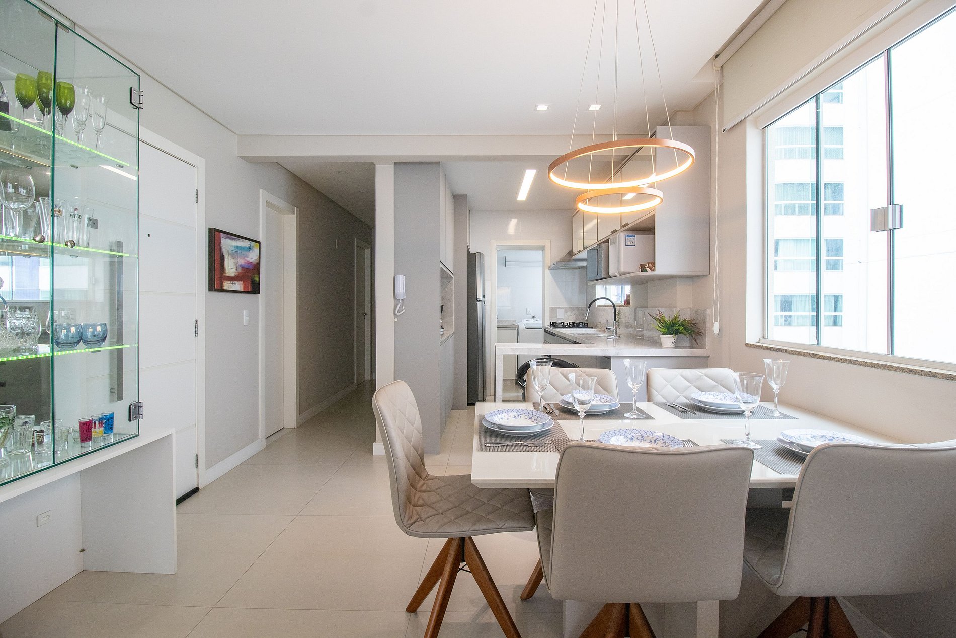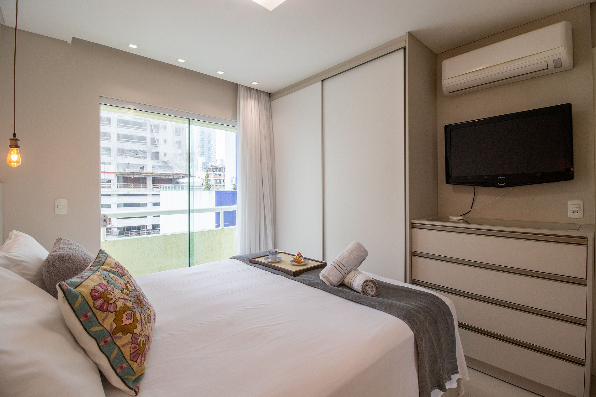 Este apartamento oferece um ambiente com dois dormitórios com sacada, sendo uma suíte. Ao total há uma cama queen e uma cama de casal. Desfrute da sala de estar equipada com sofá e TV Smart, perfeita para momentos de relaxamento. A mesa de jantar é ideal para refeições em família e sacada fechada com churrasqueira. Um dos quartos conta ainda com uma mesa de escritório, perfeita para quem precisa de um espaço de trabalho. A cozinha completa vem equipada com itens básicos, além de geladeira, microondas, cafeteira, sanduicheira, fogão e filtro de água. Para sua conveniência, você também encontrará uma máquina de lavar e dois banheiros com chuveiros elétricos.