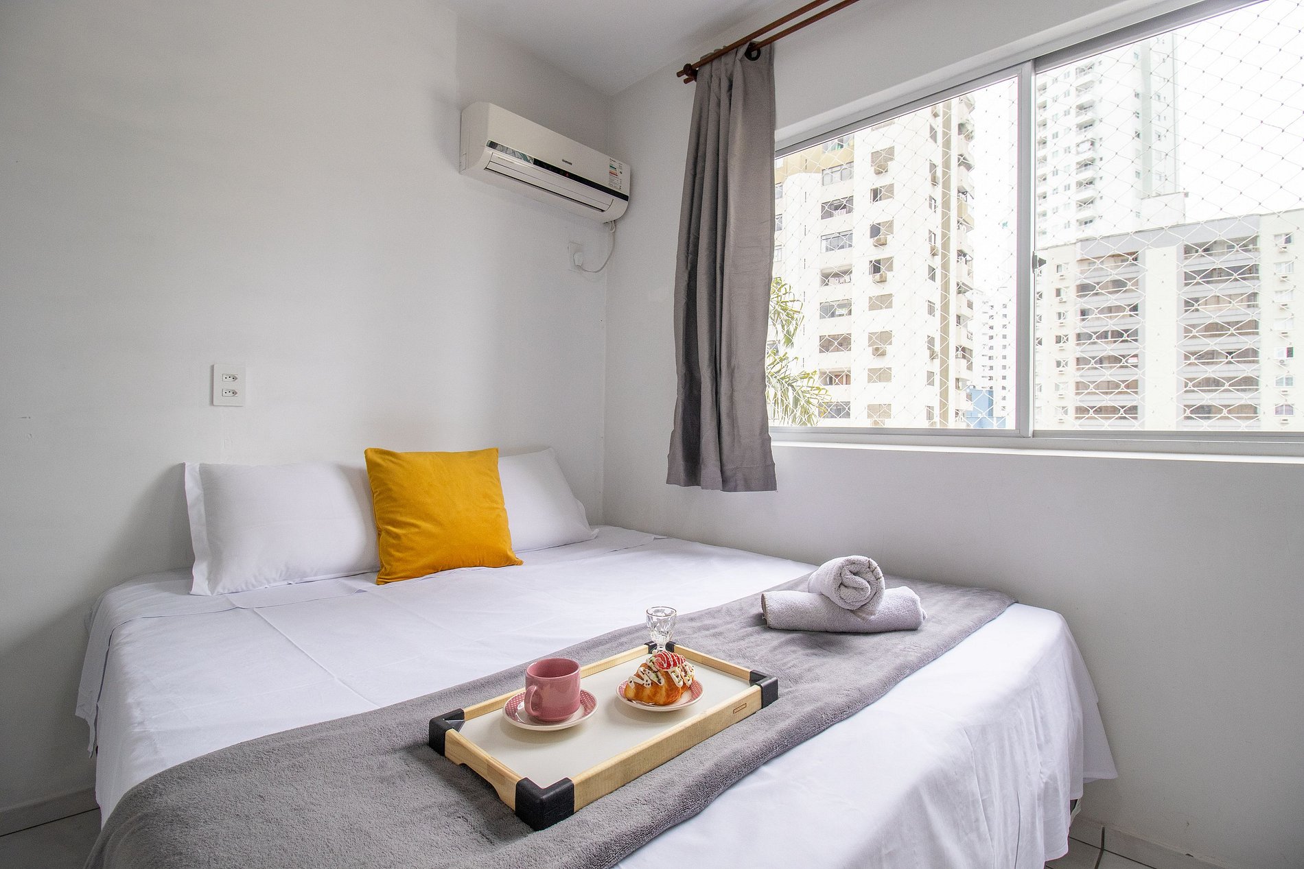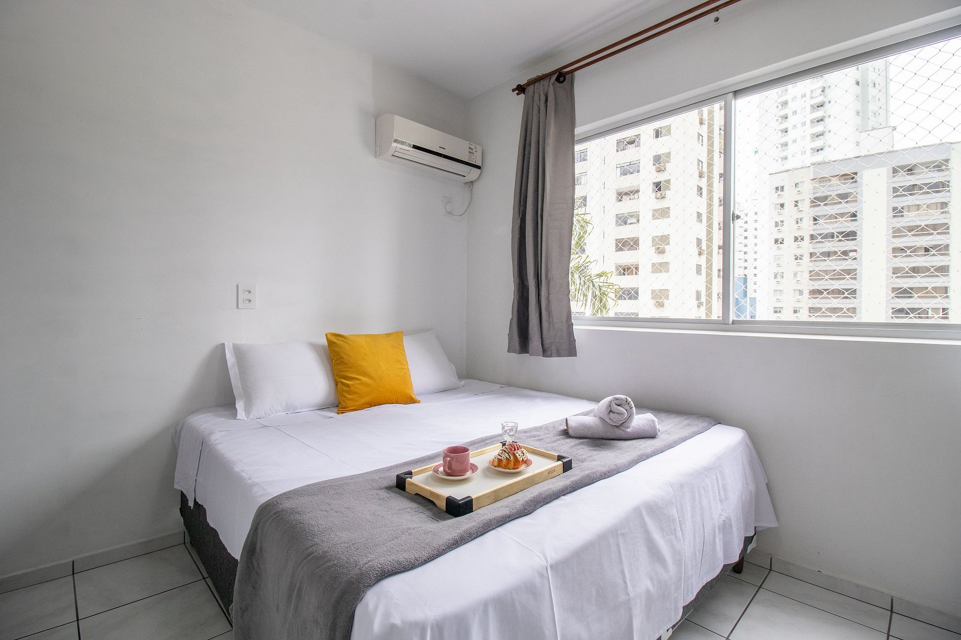 O dormitório possui um ar condicionado split que conta somente com a opção de resfriamento, garantindo que o ambiente fique sempre agradável nos dias mais quentes.