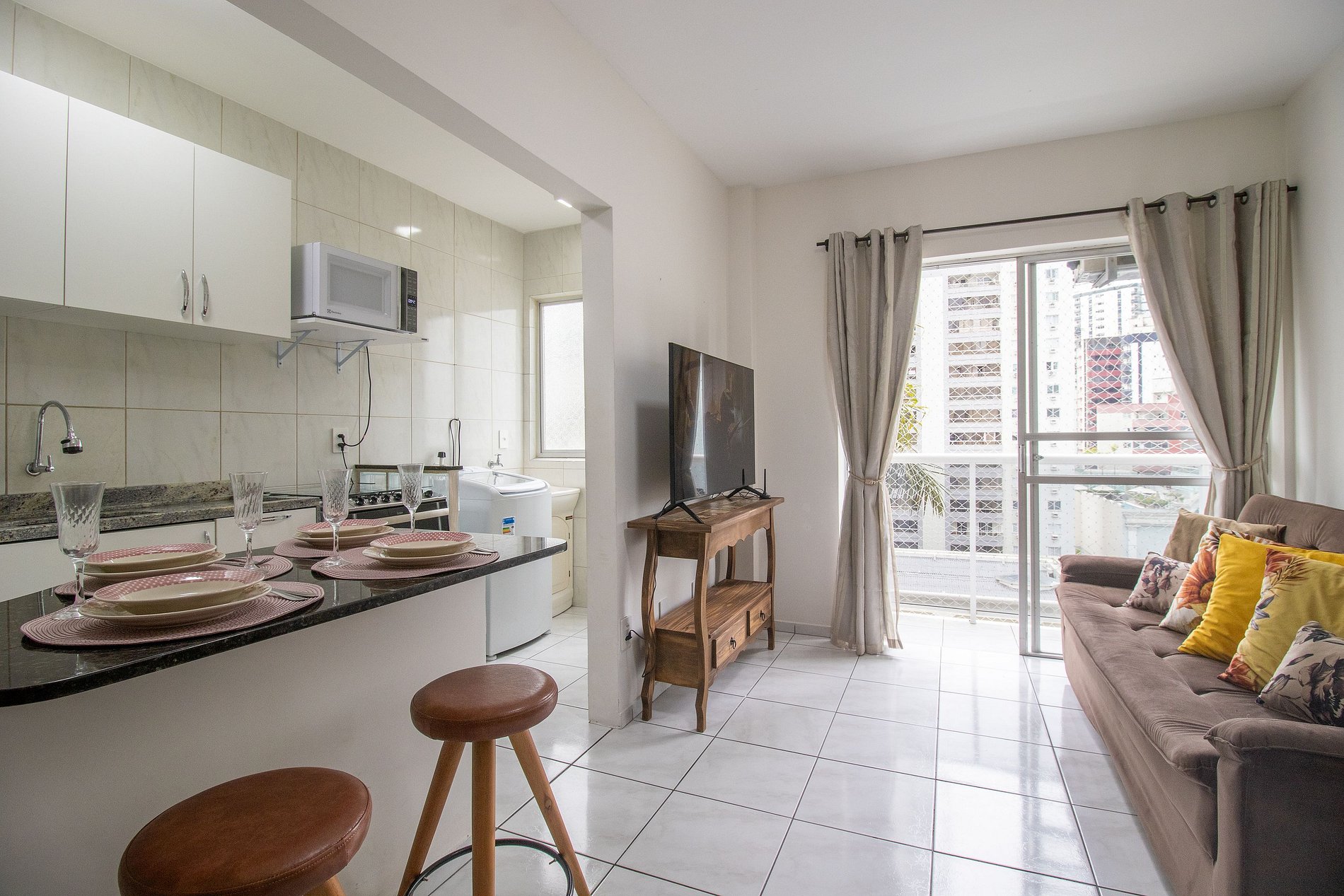 Localizado na esquina da Av. Brasil, este aconchegante apartamento de 1 dormitório é perfeito para casais ou viajantes solo. Com uma cozinha bem equipada, sala de estar com TV, sacada para relaxar, e máquina de lavar, oferecendo toda a comodidade para estadias curtas ou longas. Além de estar perto da praia, do Passeio San Miguel e PZ Ecomall, onde você encontrará excelentes opções de gastronomia e lazer. Ideal para quem busca praticidade, conforto e a vibração única de Balneário Camboriú!