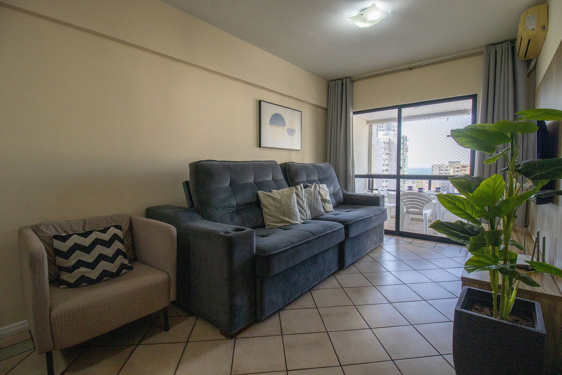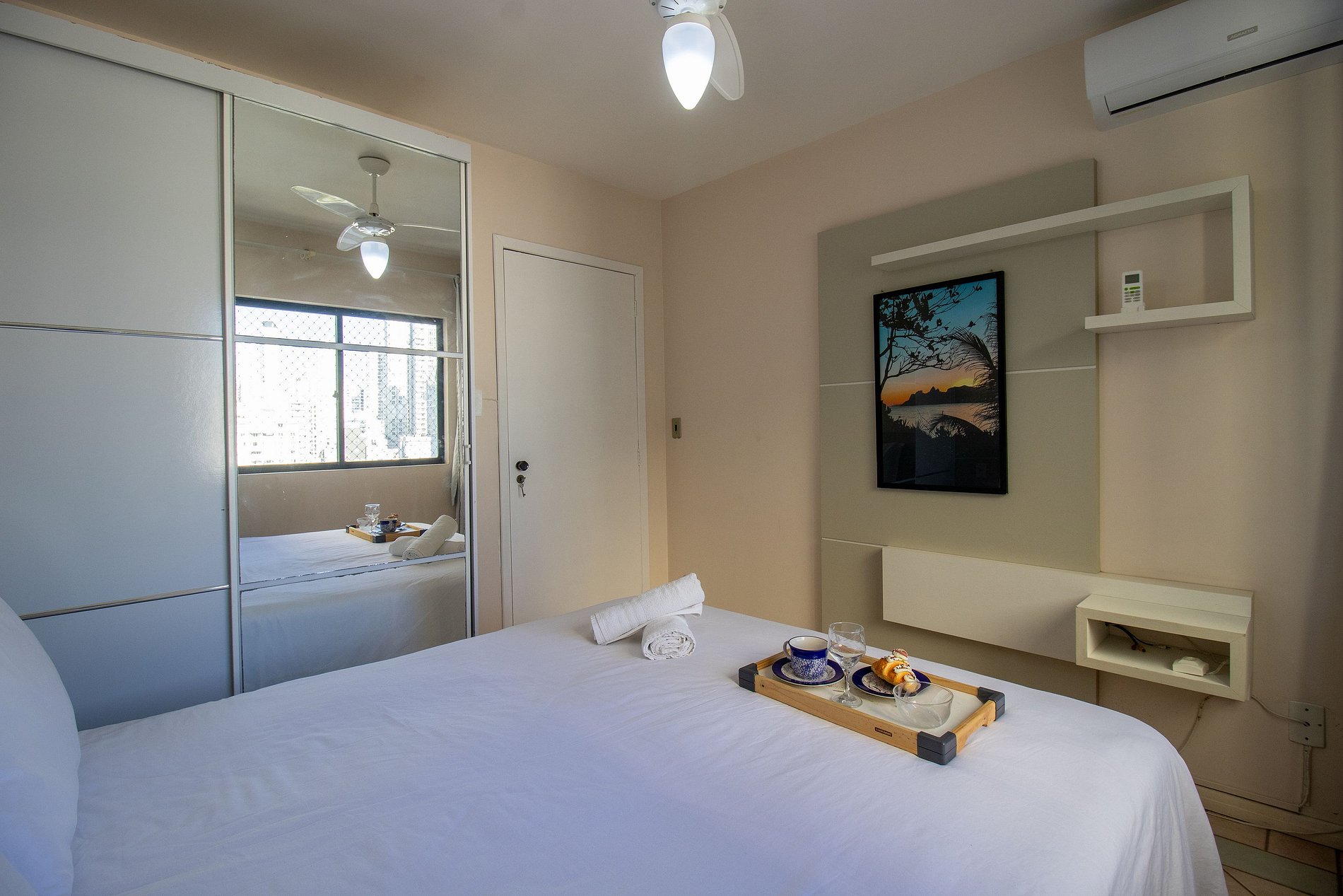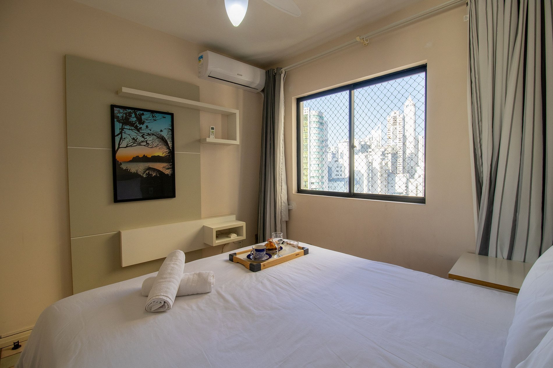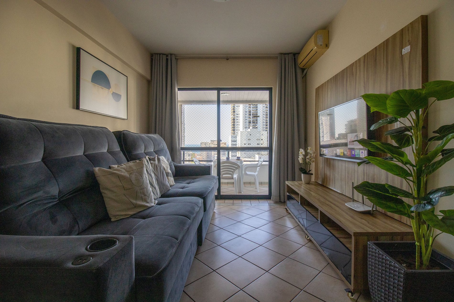 Hospede-se em Balneário Camboriú com sua família ou amigos nesse espaço localizado a menos de um minuto do calçadão central. O espaço conta com climatização na sala e em nos três dormitórios, TV Smart na sala e TV com acesso a serviços de streaming na suíte, internet wi-fi de excelente qualidade, cozinha completa com utensílios para preparo de refeições básicas e uma vaga de garagem privativa no mesmo prédio.