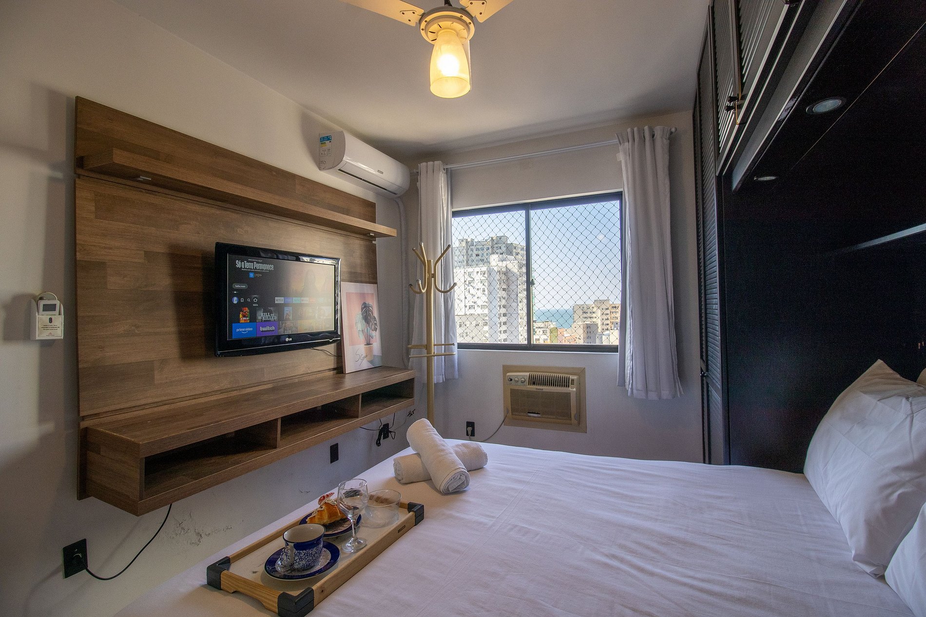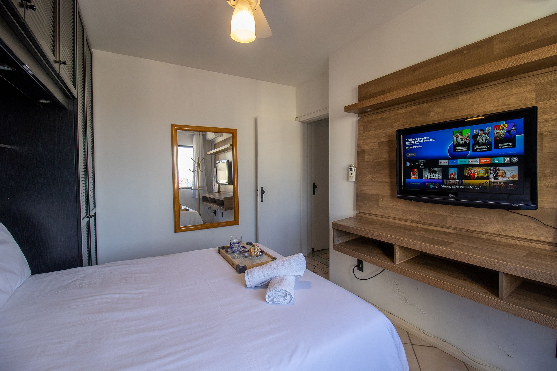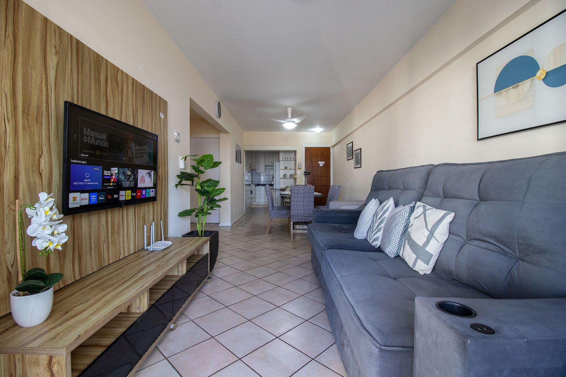 Conectividade garantida com internet Wi-Fi própria de 300Mb, TV Smart na sala e TV com acesso a serviços de streaming na suíte (necessário utilizar sua conta).