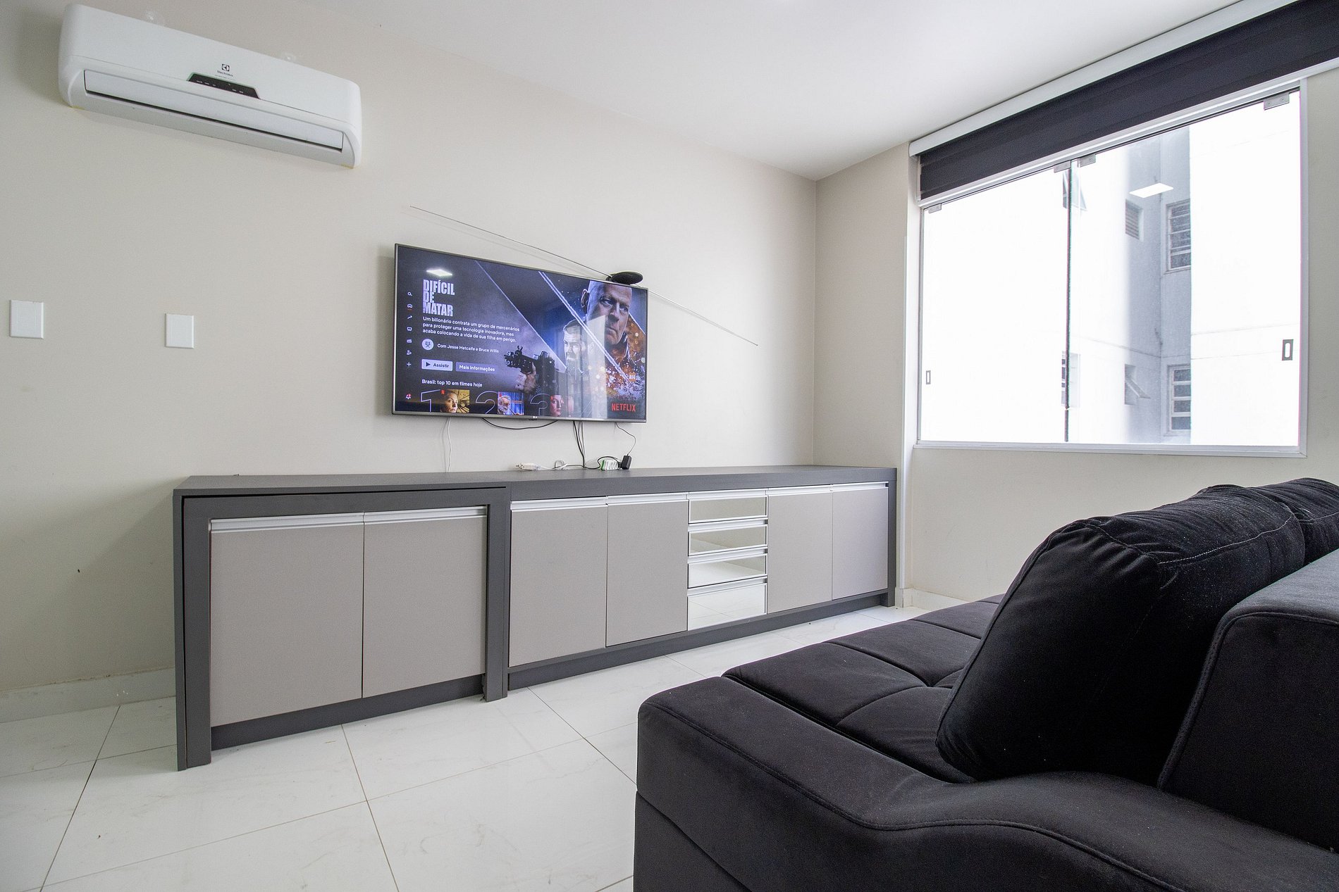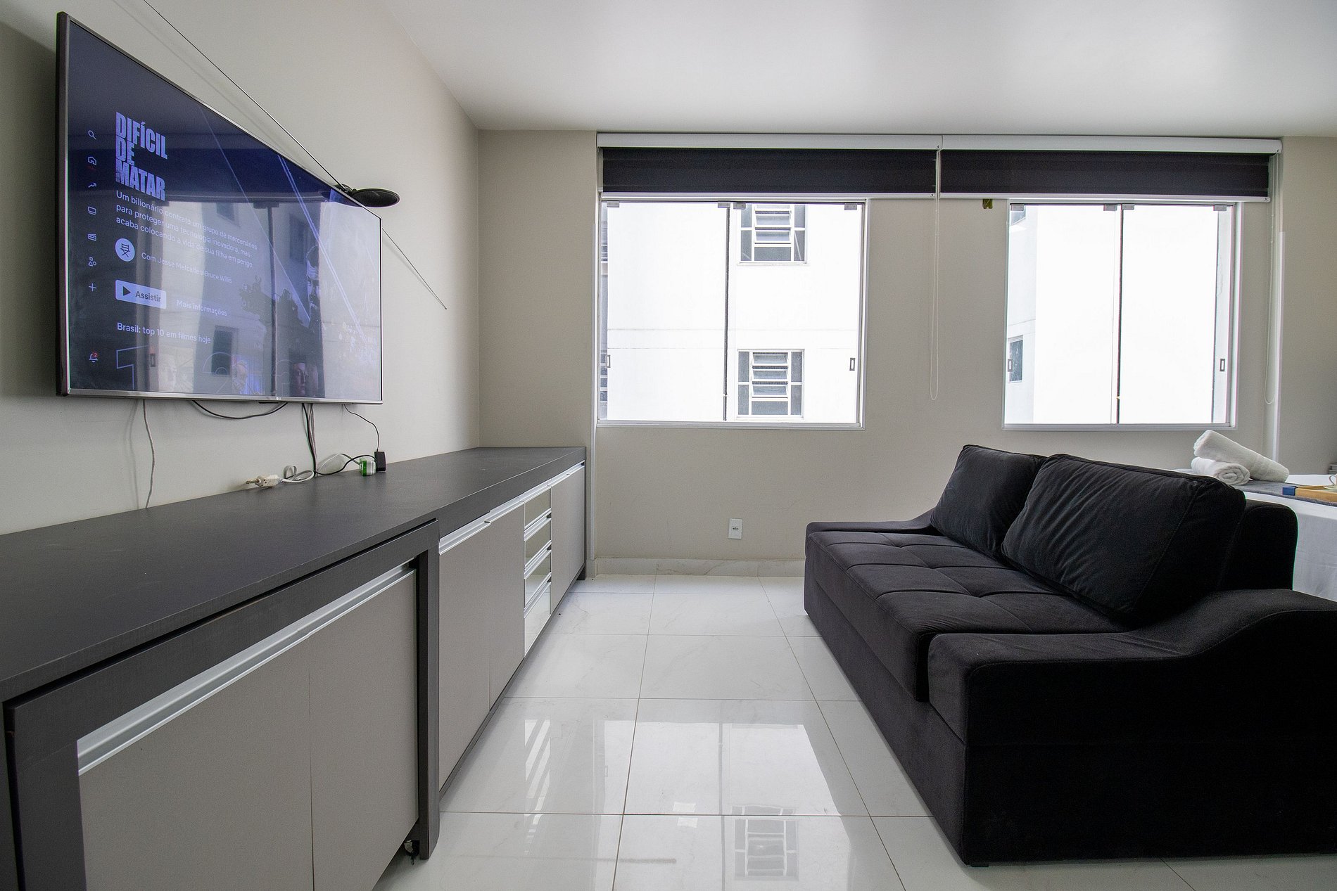 Internet wi-fi de boa velocidade própria do apartamento, TV Smart na suíte e na sala.