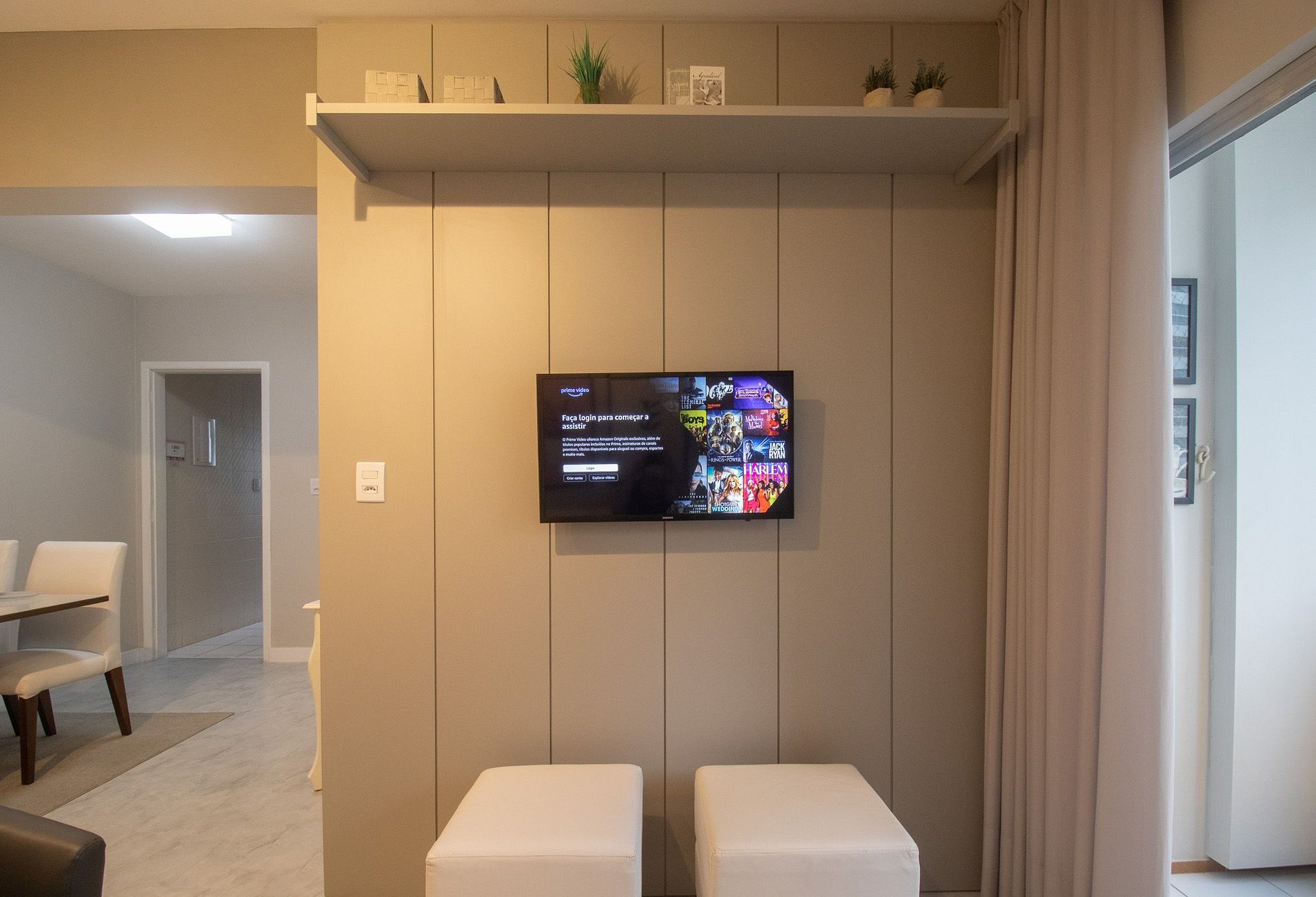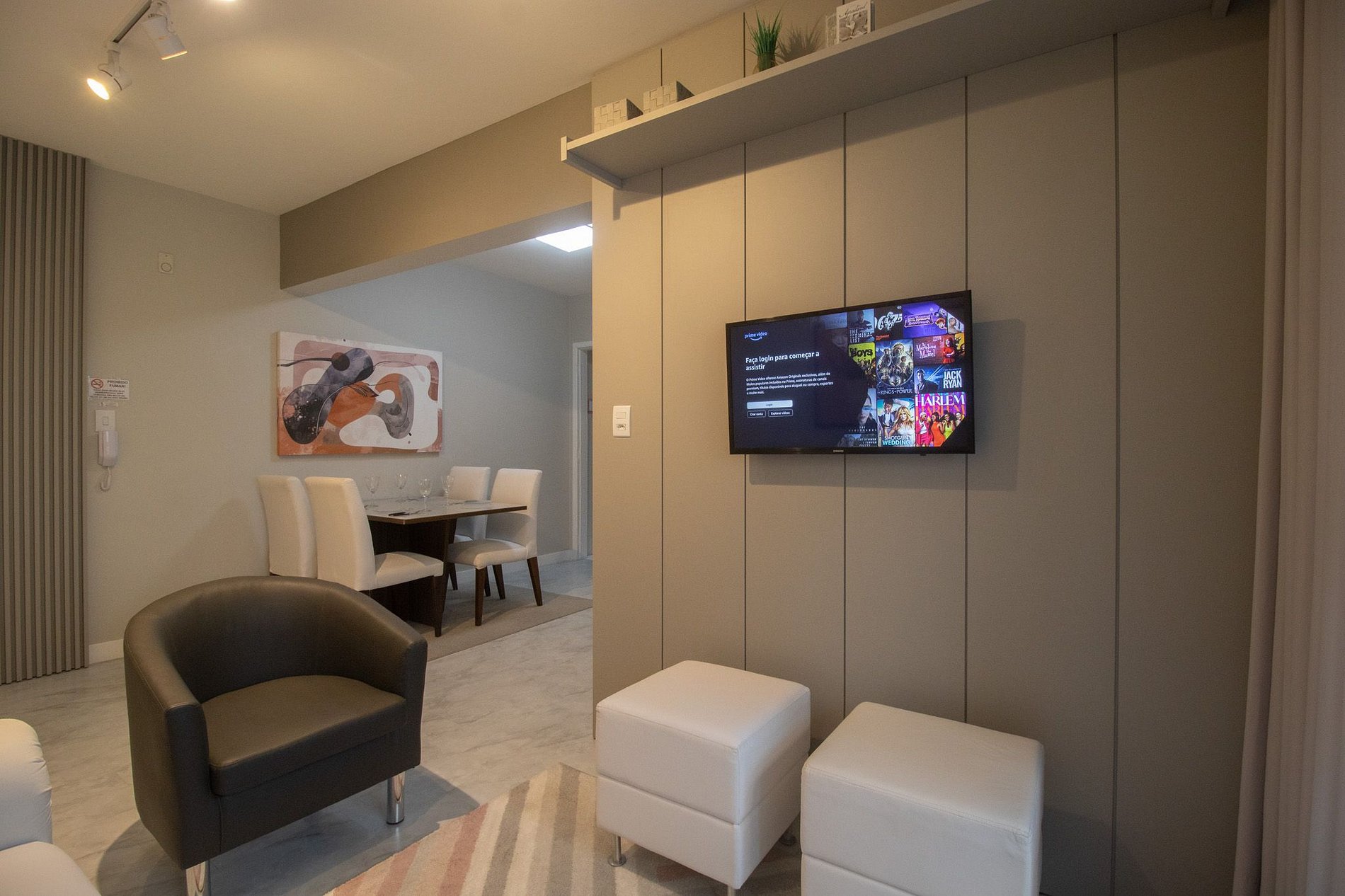 O espaço conta com internet wi-fi própria do apartamento e duas TV's Smart, sendo uma na sala e em um dormitório.