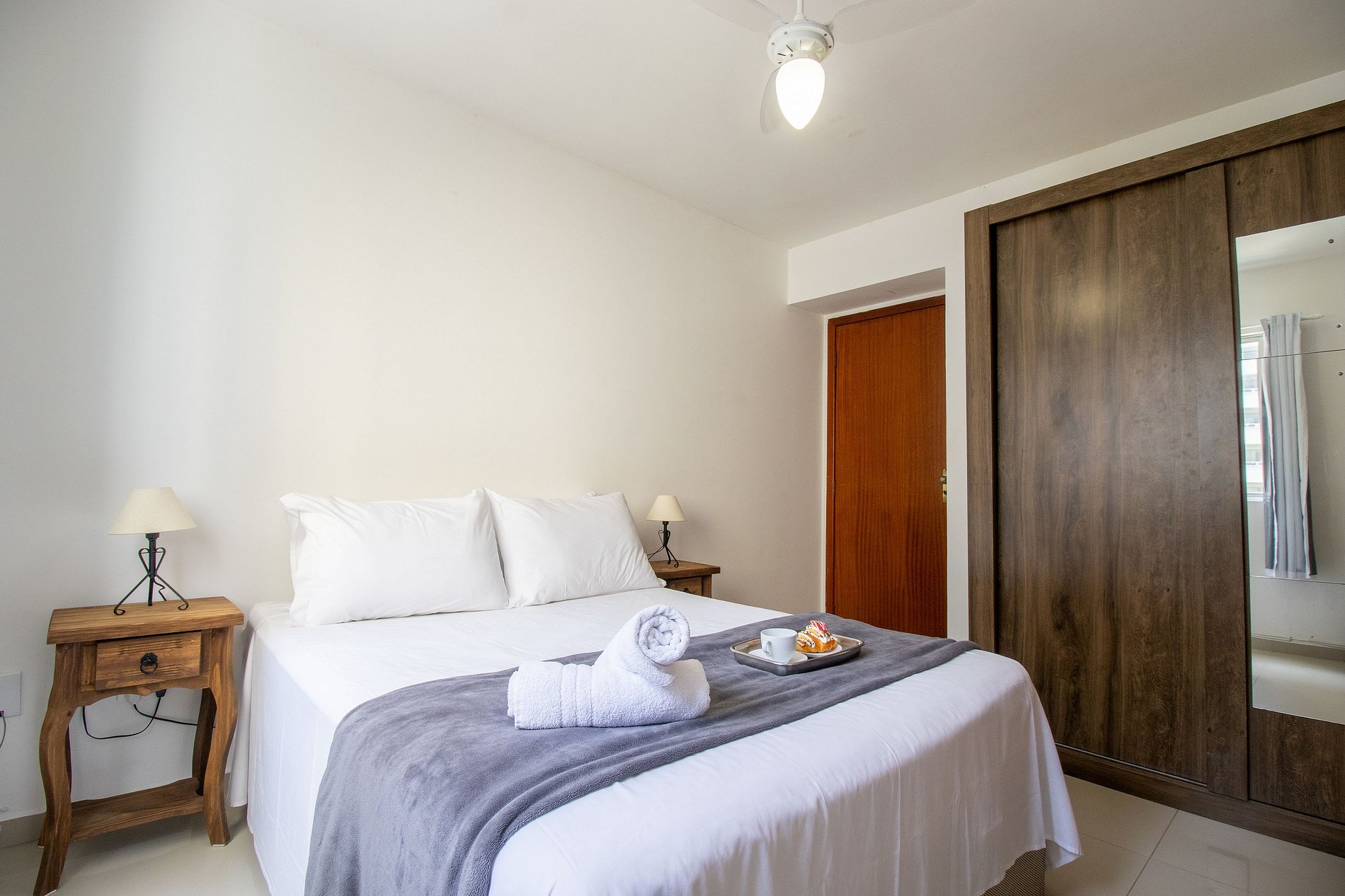 Conectividade garantida com internet Wi-Fi própria do apartamento e TV Smart na sala.