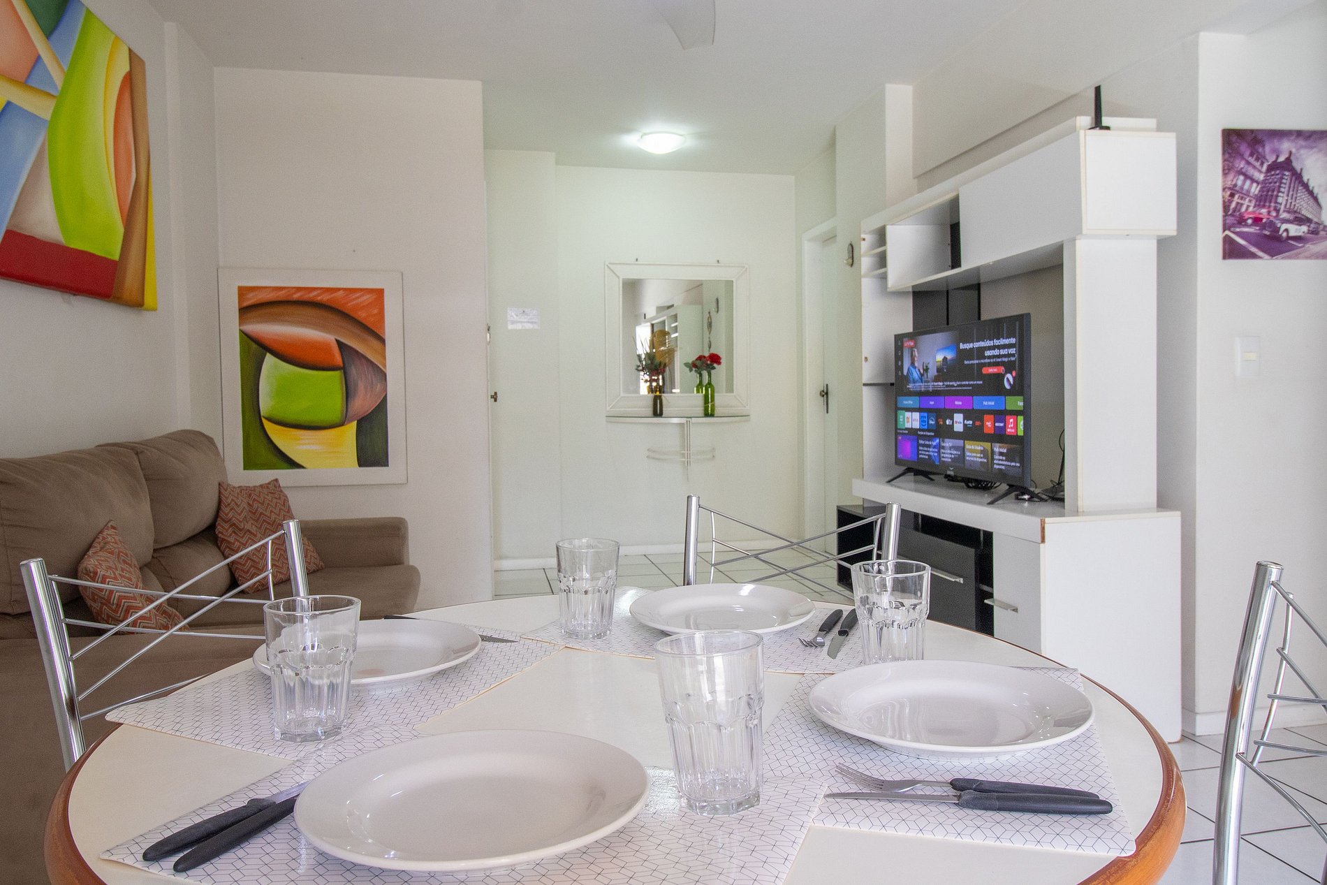Internet Wi-Fi de 300 MB dedicada exclusivamente ao apartamento, proporcionando uma conexão estável e rápida. O dormitório possui uma TV.