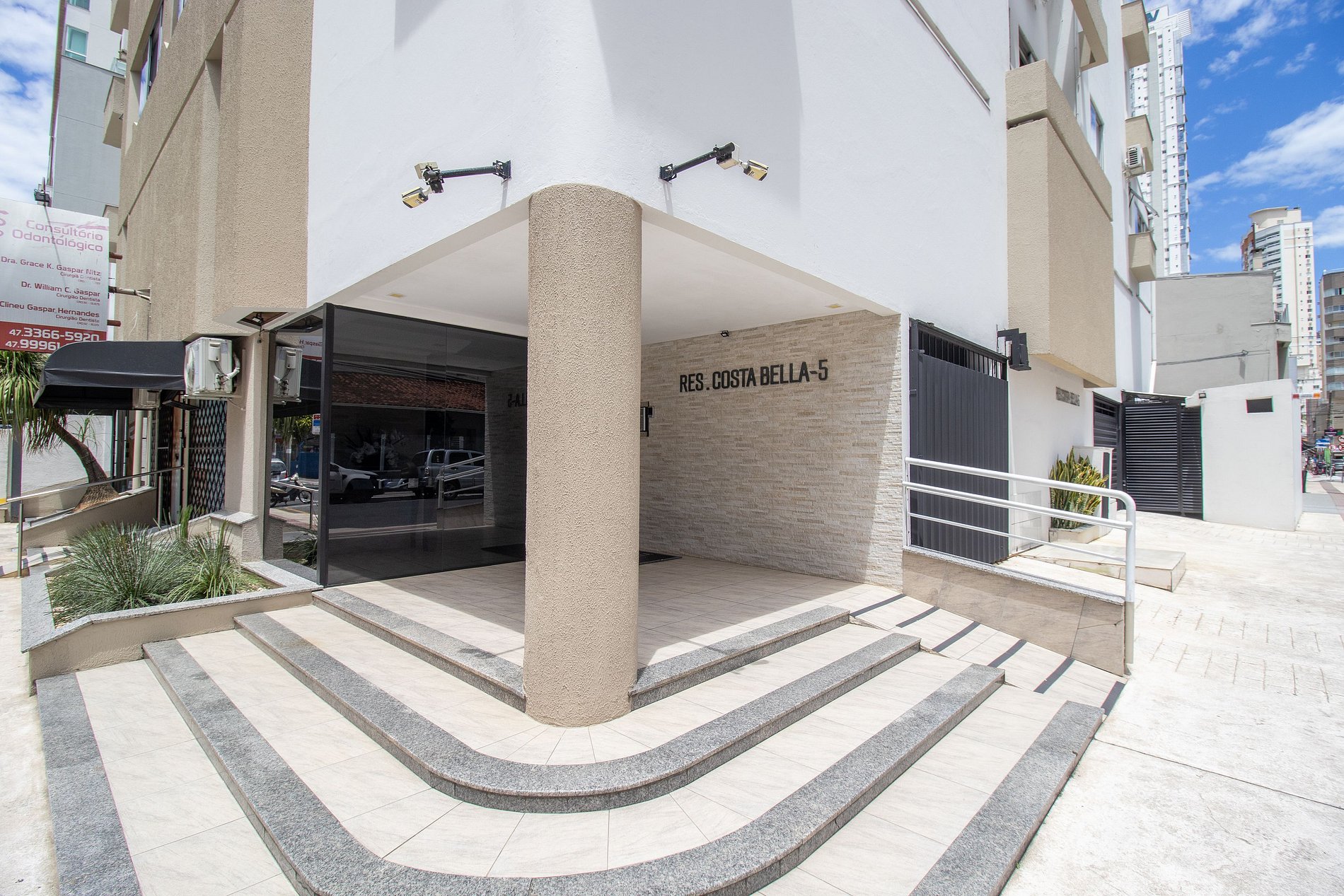 Este apartamento está localizado no Edifício Costa Bella, na Rua 1520, número 5, na esquina com a Rua 904. Apenas quatro minutos de caminhada do calçadão e a cerca de seis minutos andando até a areia da praia. O imóvel fica ao lado do Camelódromo.