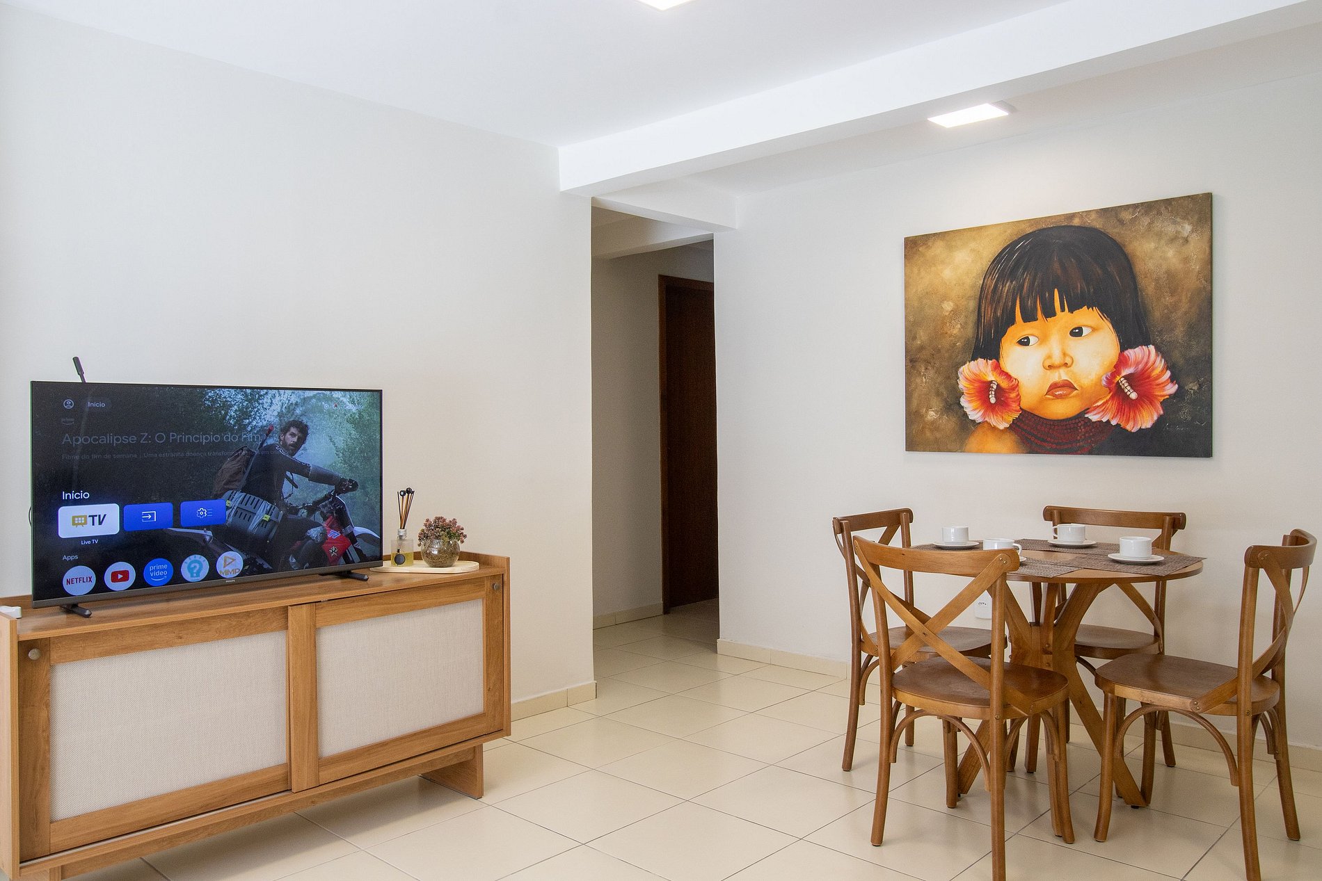 O apartamento possui internet própria do apartamento e de boa qualidade. Há televisão Smart na sala.