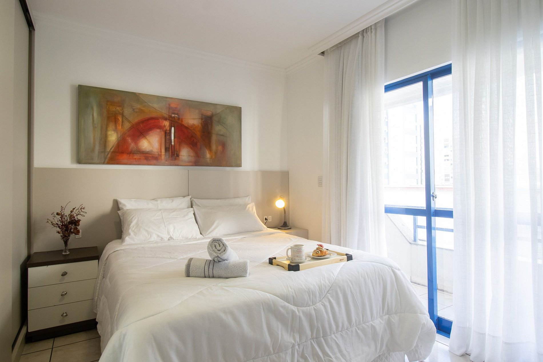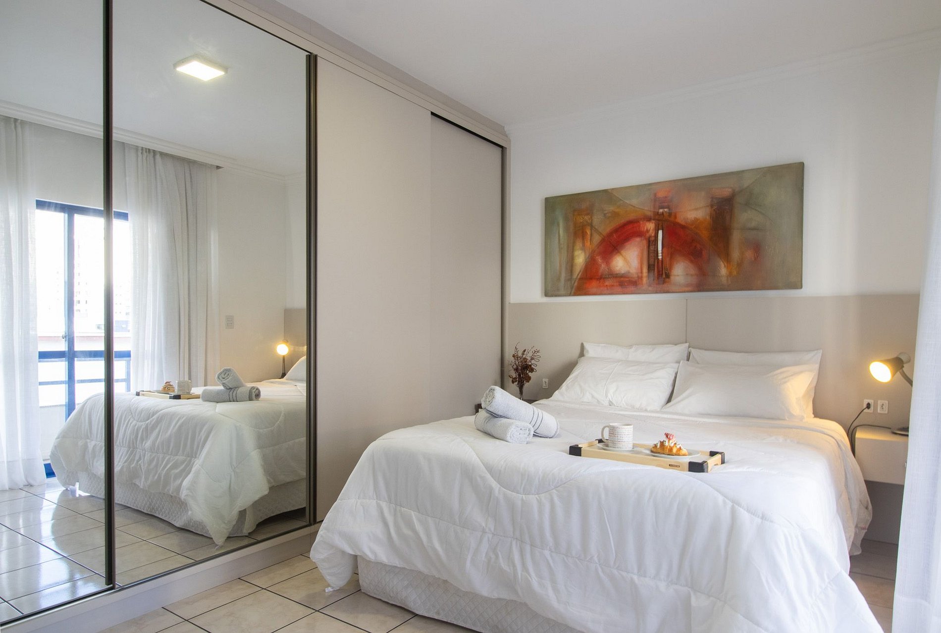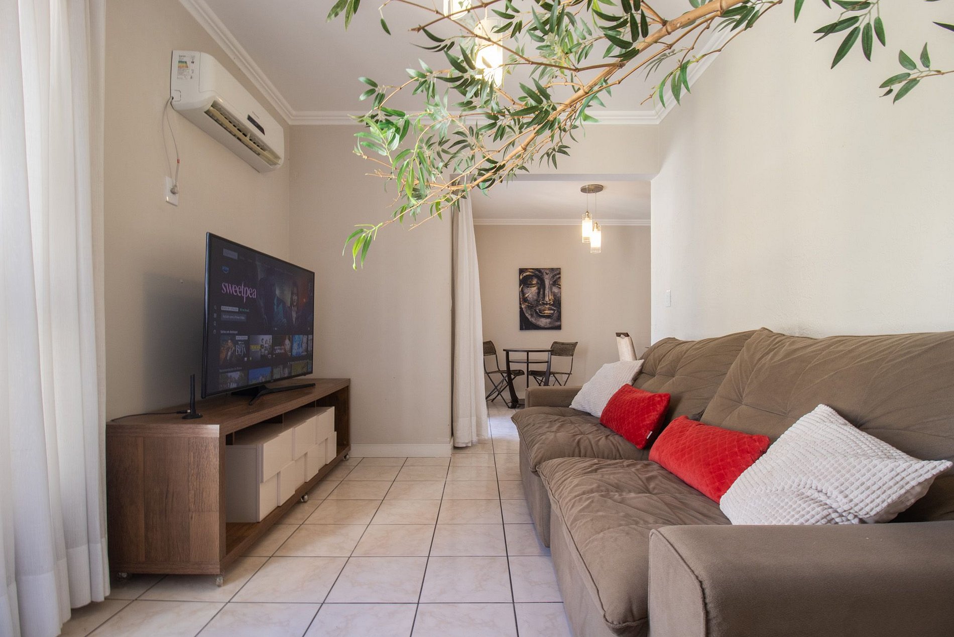 Conectividade garantida com internet Wi-Fi própria e TV Smart na sala de estar e suíte.