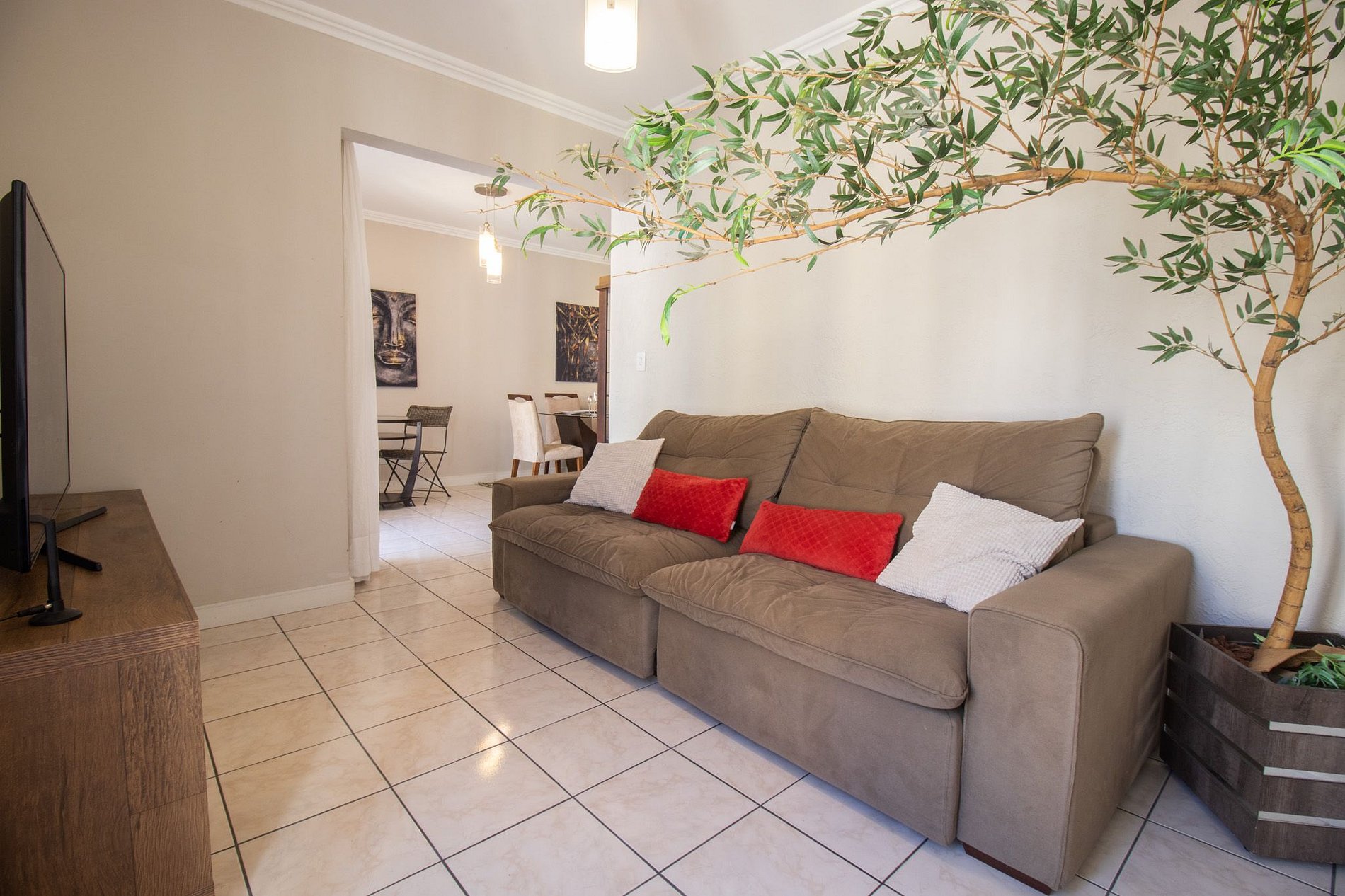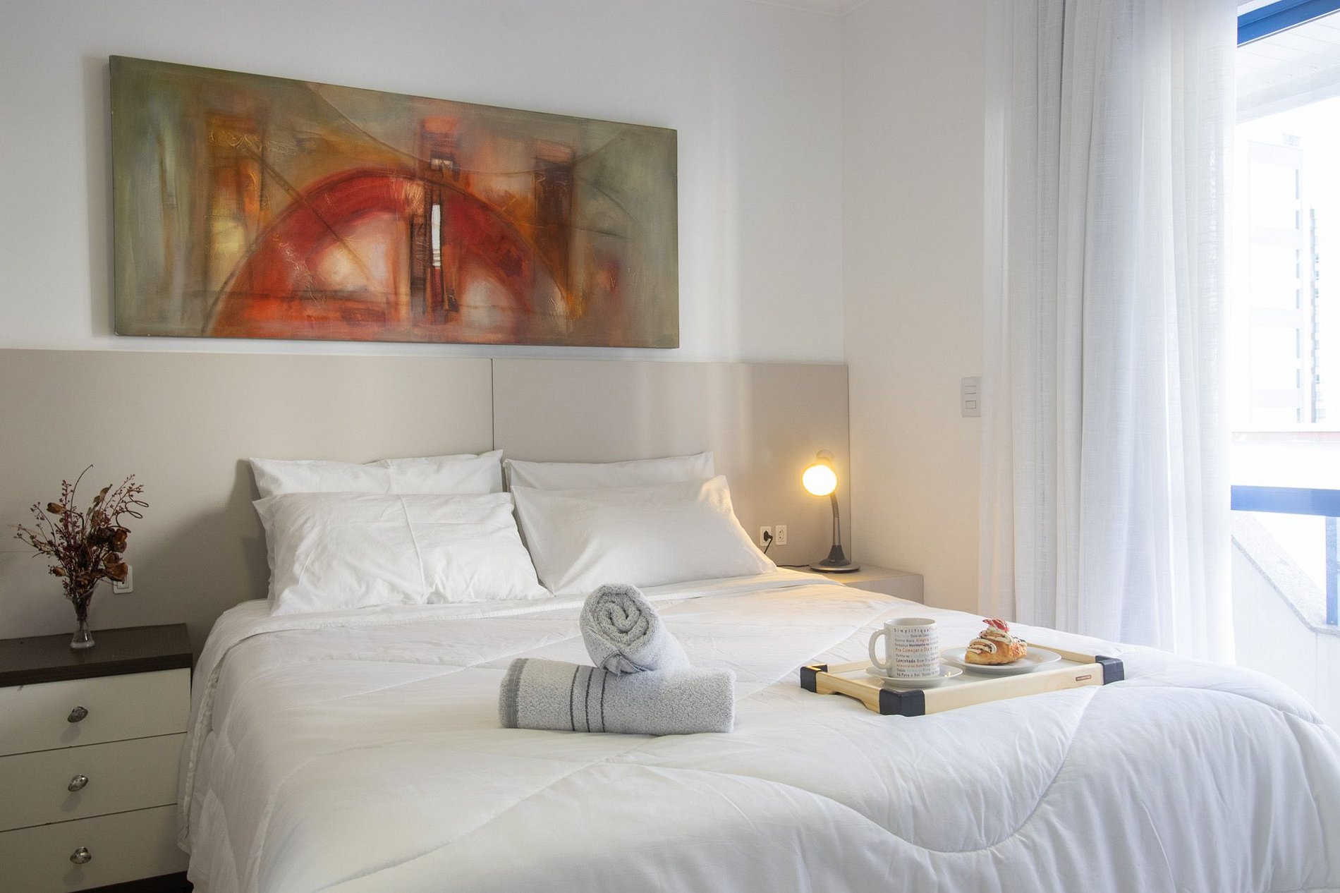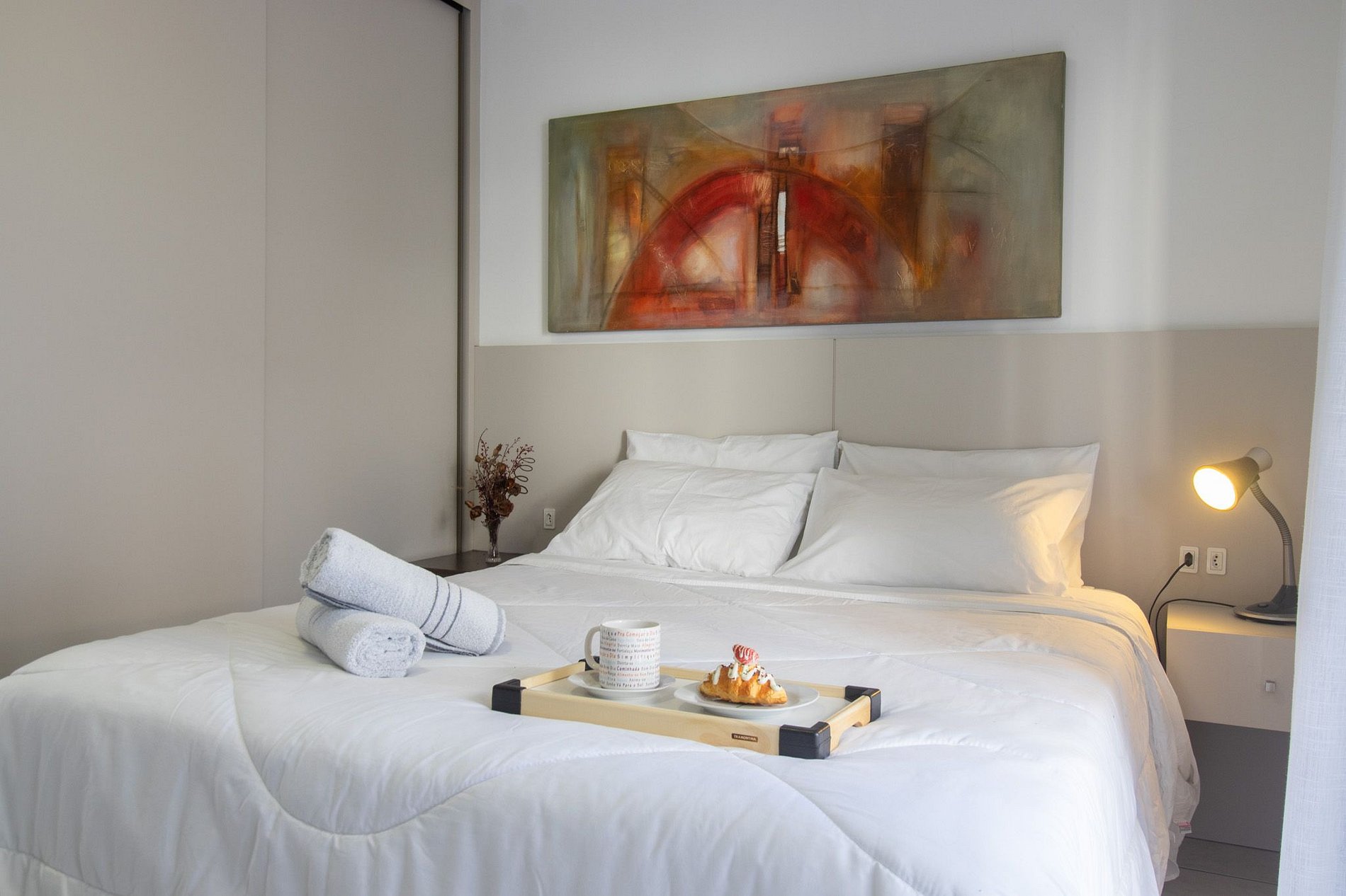 Conectividade garantida com internet Wi-Fi própria e TV Smart na sala de estar e suíte.