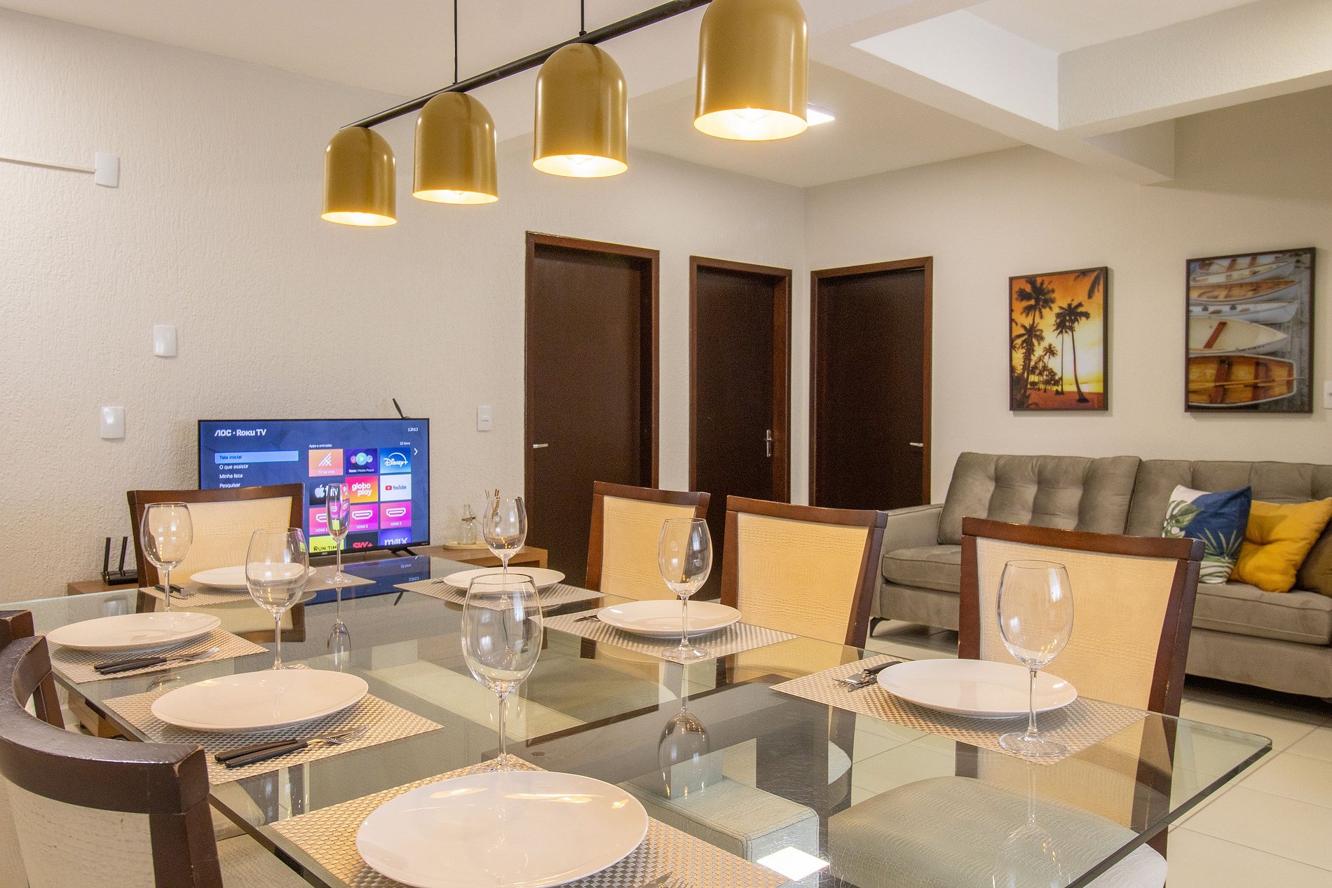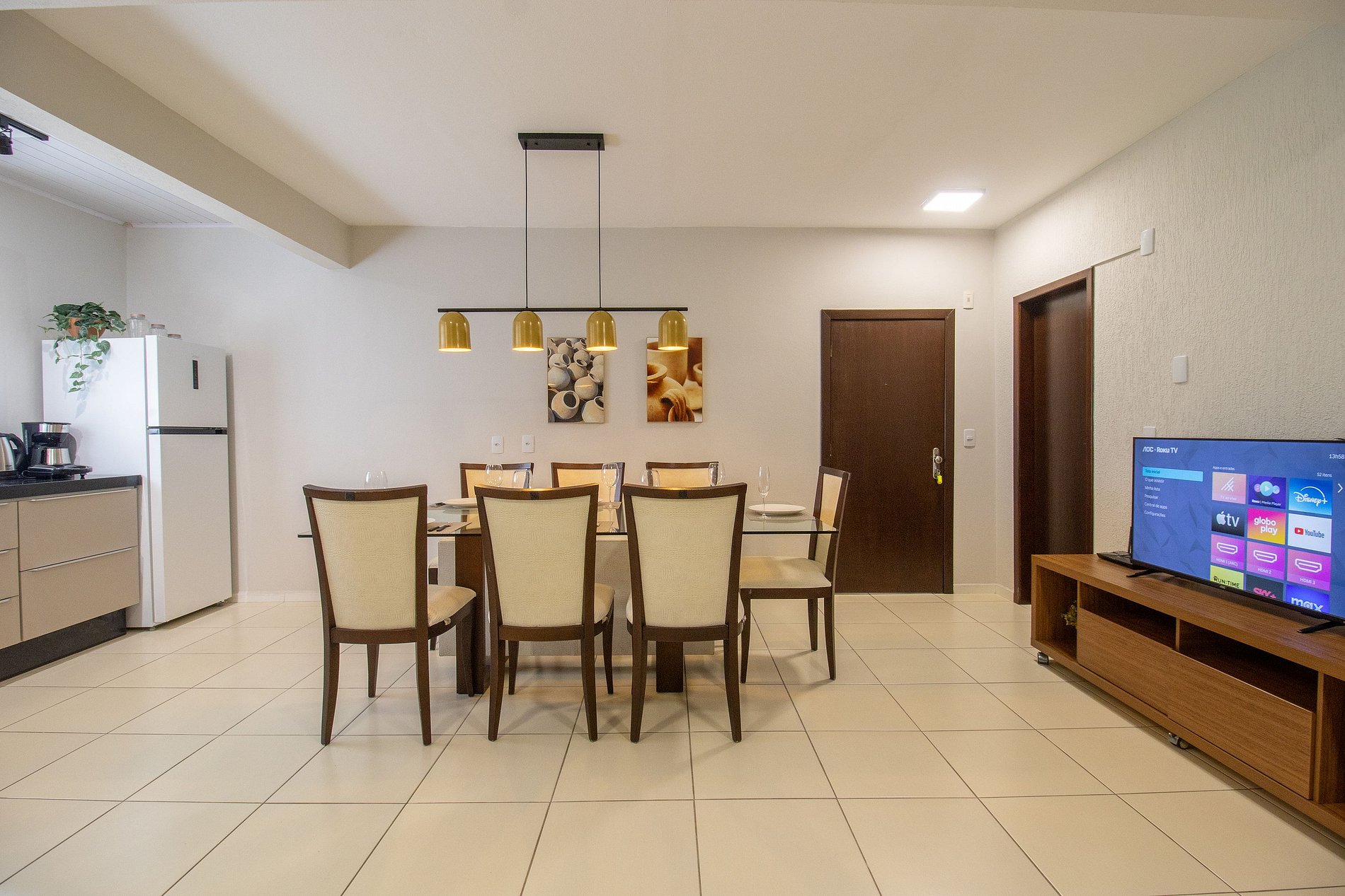 O espaço possui internet wi-fi própria do apartamento. Conta com uma TV Smart na sala.