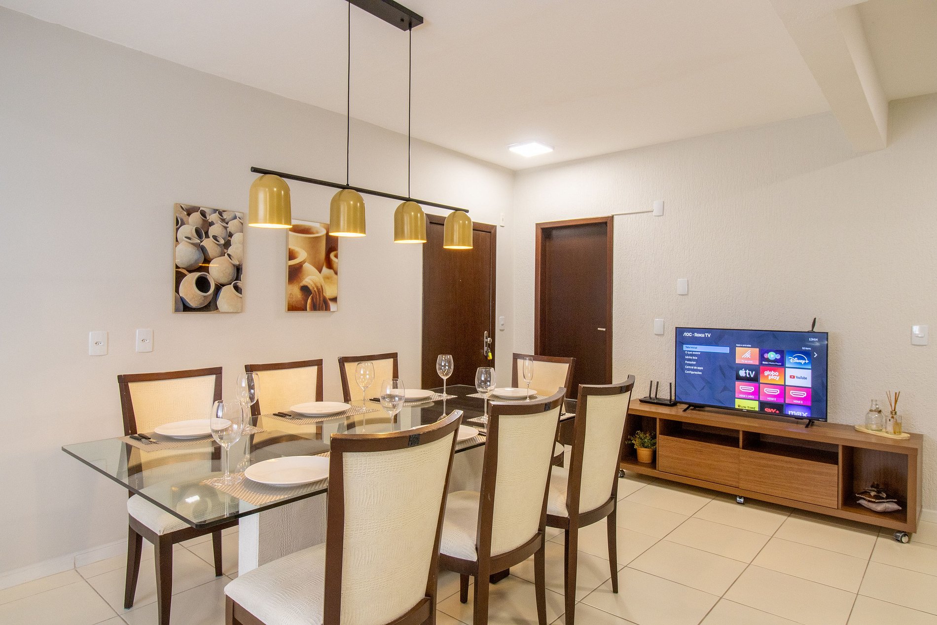 O espaço possui internet wi-fi própria do apartamento. Conta com uma TV Smart na sala.