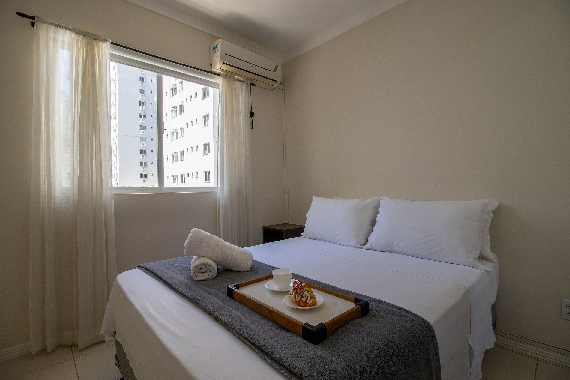 O apartamento conta com climatização completa para garantir seu conforto em qualquer estação. São 3 ares condicionados do tipo split, sendo um em cada quarto. Todos os aparelhos possuem a função quente e frio, proporcionando a temperatura ideal para suas necessidades, seja nos dias quentes de verão ou nas noites mais frescas do inverno.