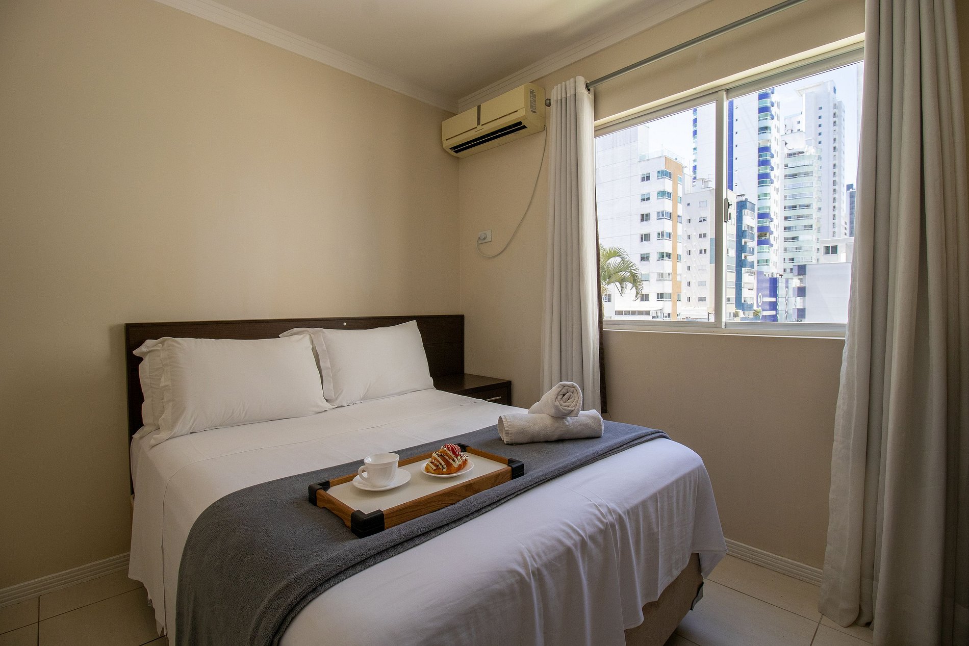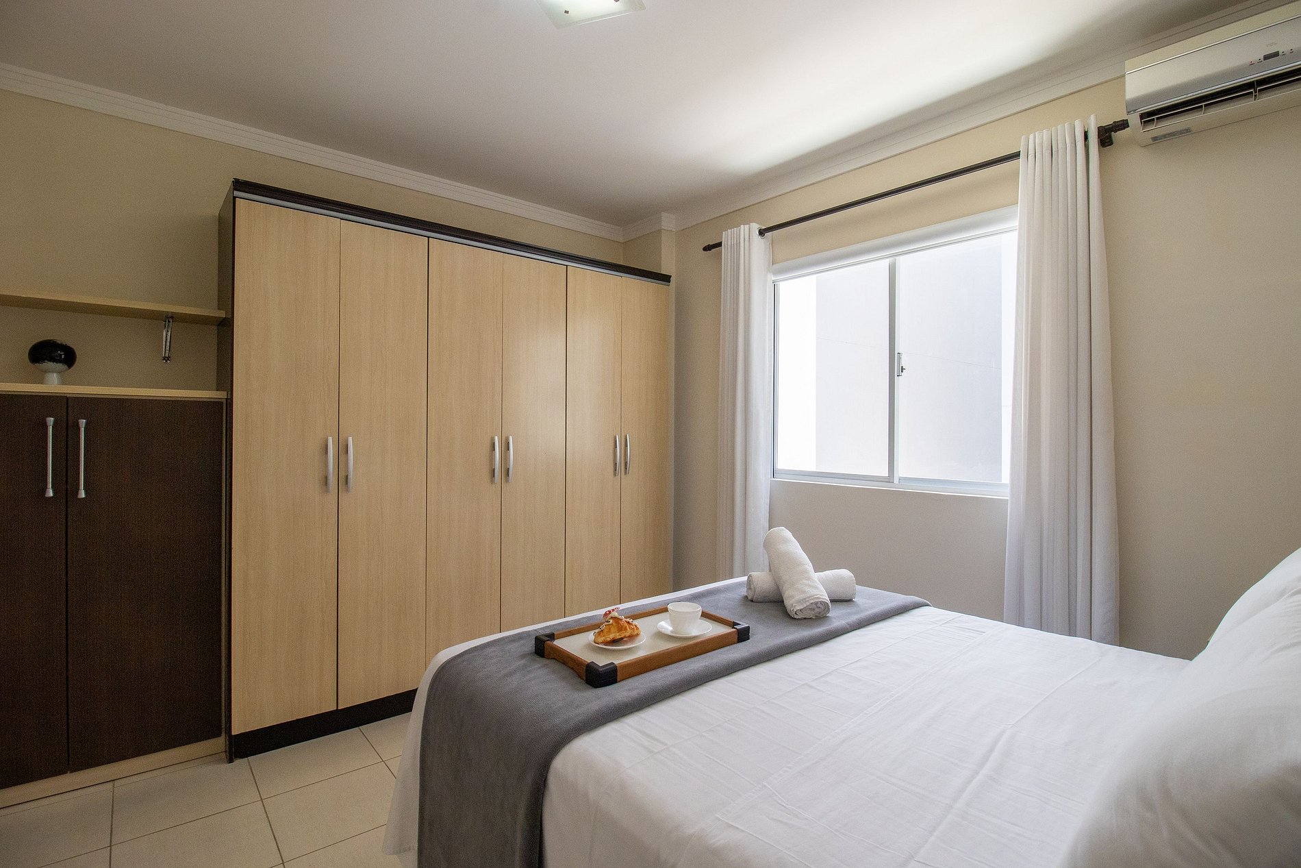 O apartamento conta com climatização completa para garantir seu conforto em qualquer estação. São 3 ares condicionados do tipo split, sendo um em cada quarto. Todos os aparelhos possuem a função quente e frio, proporcionando a temperatura ideal para suas necessidades, seja nos dias quentes de verão ou nas noites mais frescas do inverno.