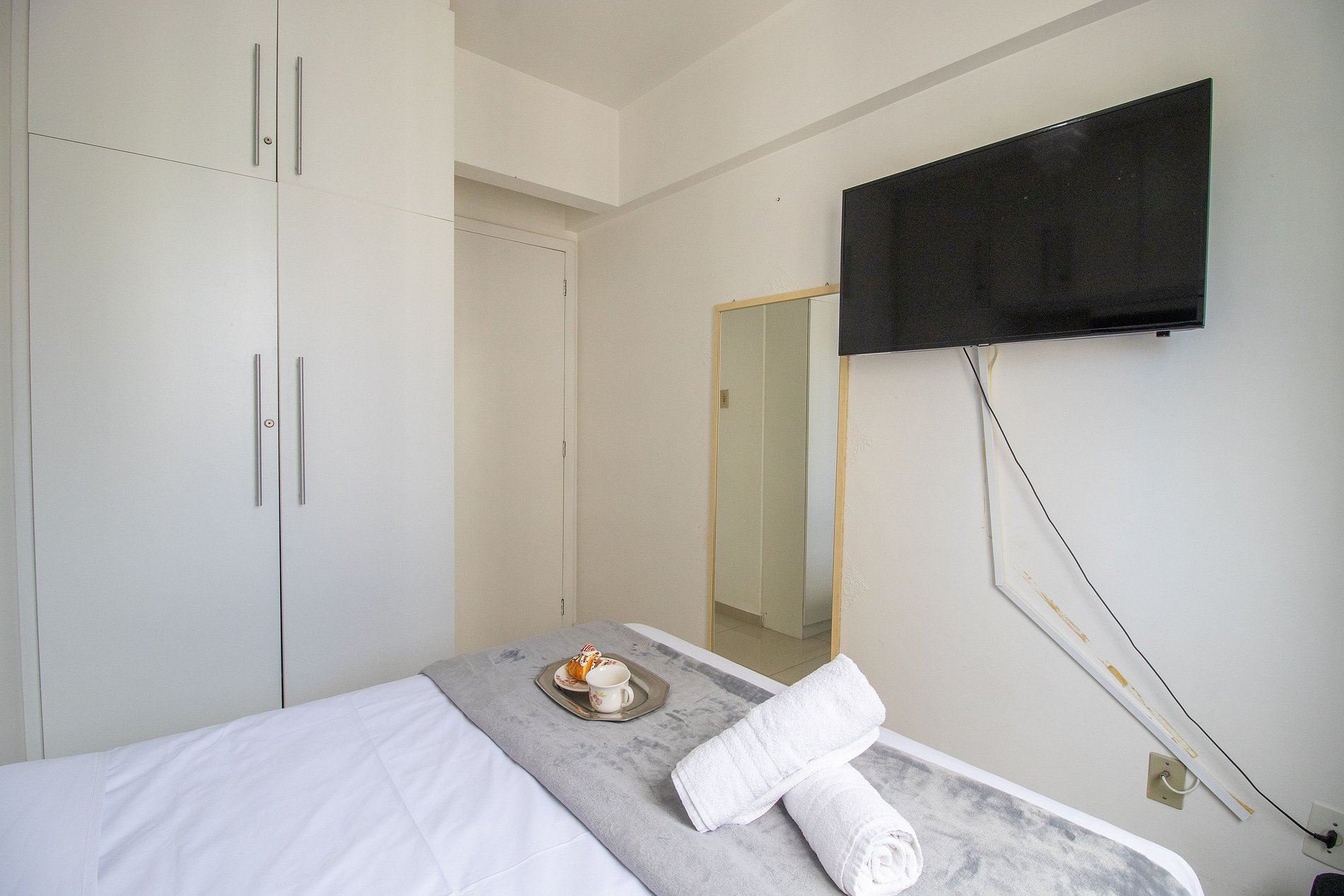 Conectividade garantida com internet Wi-Fi própria do apartamento. O espaço possui duas TV's e somente a do dormitório é Smart.