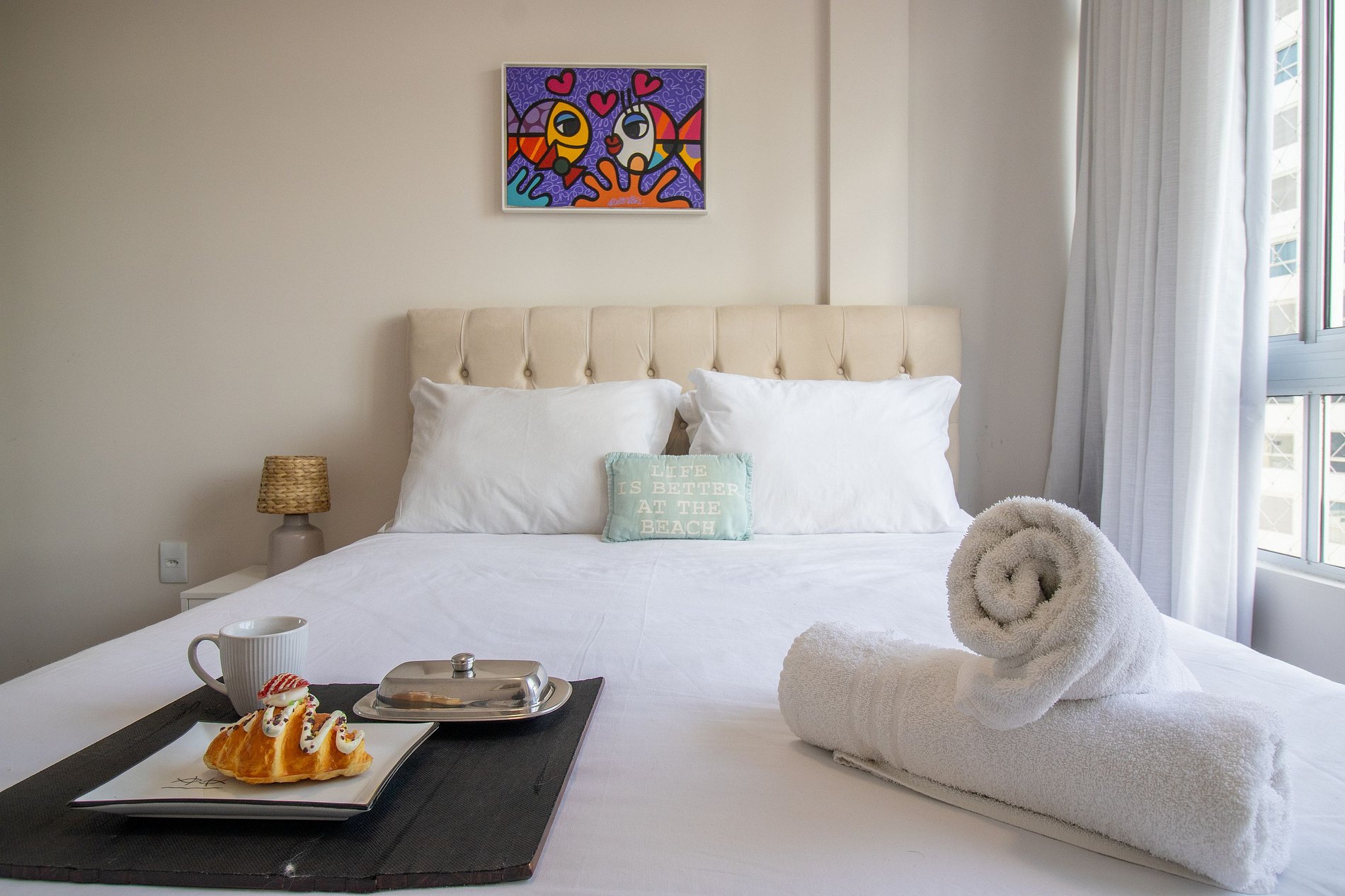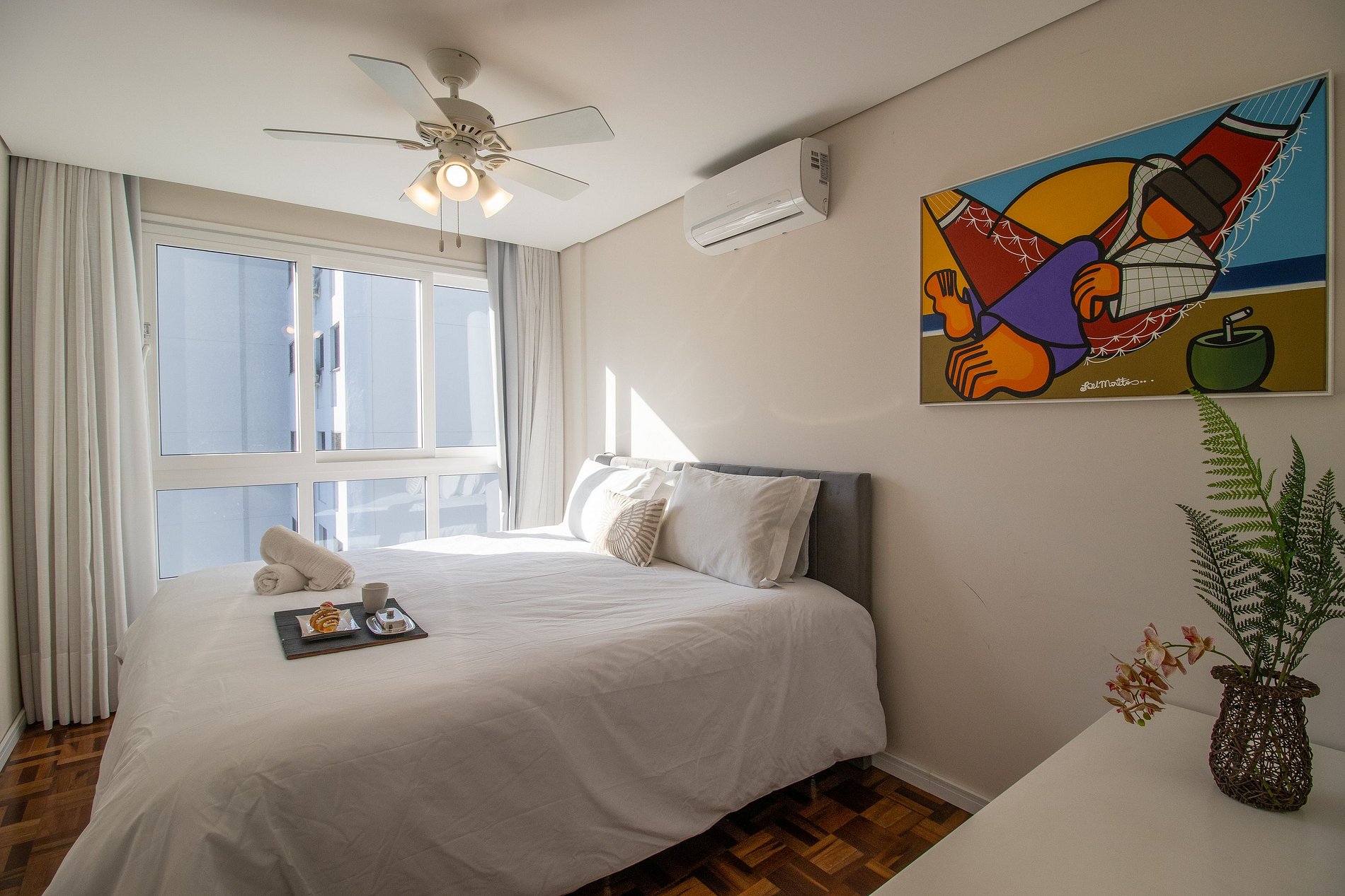 Desfrute de um apartamento totalmente climatizado e bem equipado, com uma suíte e dois dormitórios, sala de estar, varanda com rede de proteção e linda vista para o mar. Cozinha completa com tudo o que você precisa, incluindo utensílios básicos. O espaço ainda oferece garagem, wi-fi, máquina lava e seca, ferro de passar e secador de cabelo. Tudo pronto para você aproveitar ao máximo!