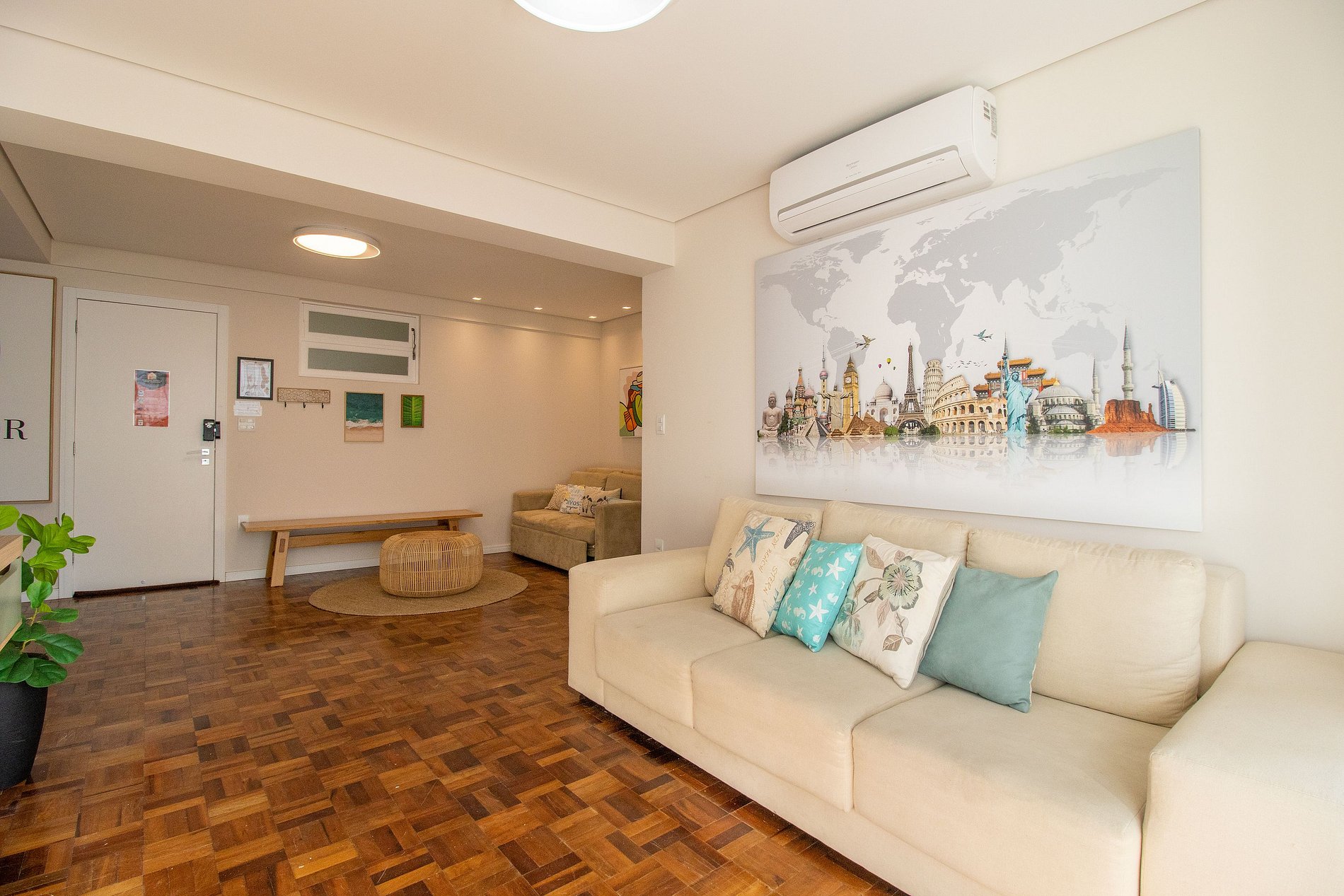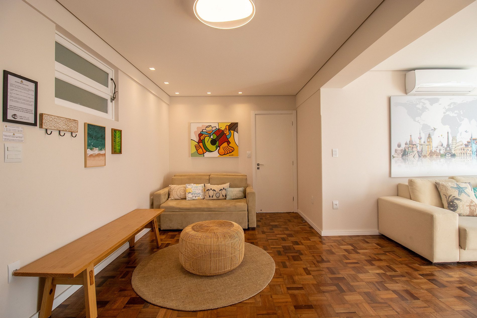 O apartamento conta com três dormitórios climatizados, sendo uma suíte, garantindo noites bem confortáveis. A suíte possui duas camas de solteiro que ficam uma ao lado da outra para formar uma cama só, o segundo quarto conta com uma cama king, e o terceiro tem uma cama queen. Além disso, há um sofá-cama e um colchão de solteiro avulso, acomodando até oito pessoas com todo o conforto.
