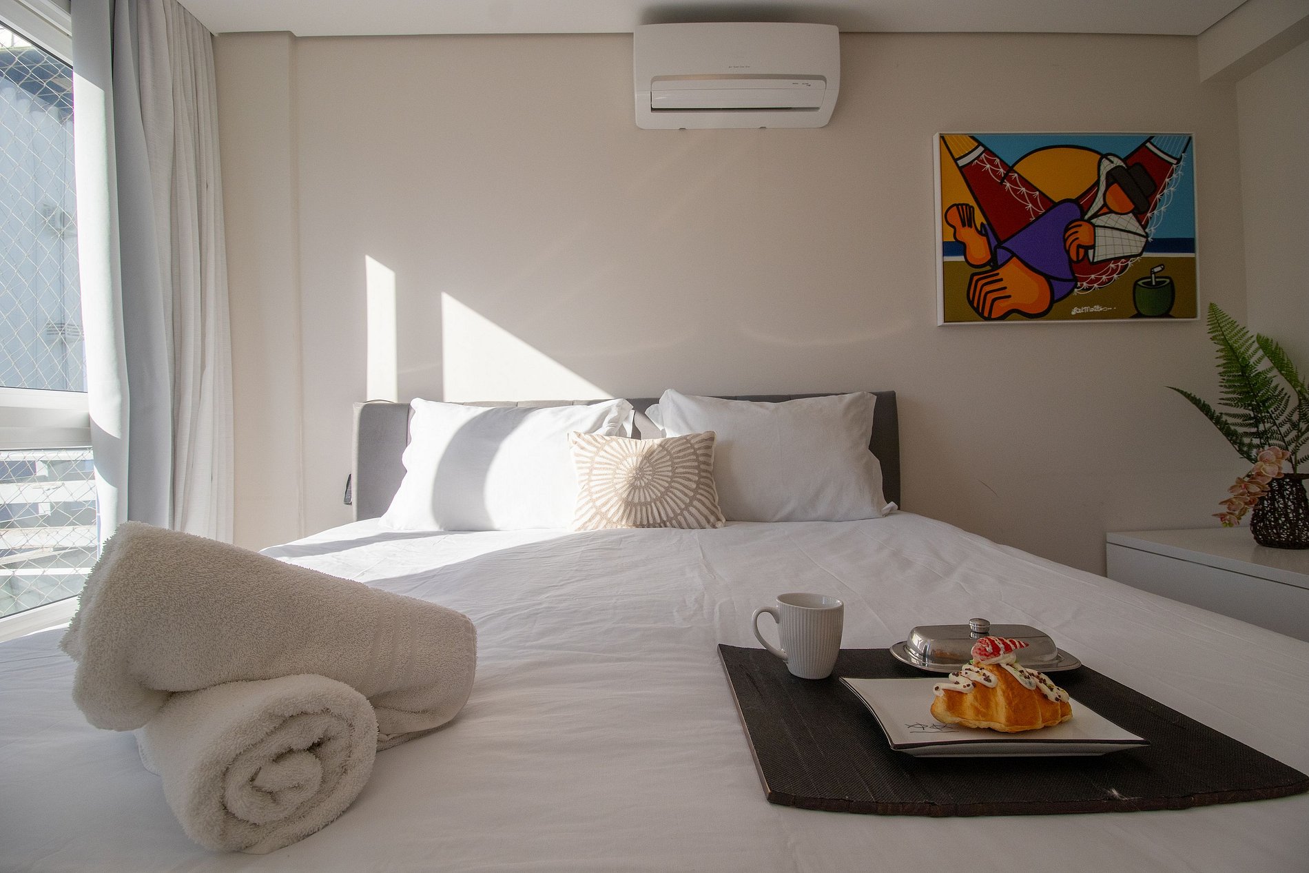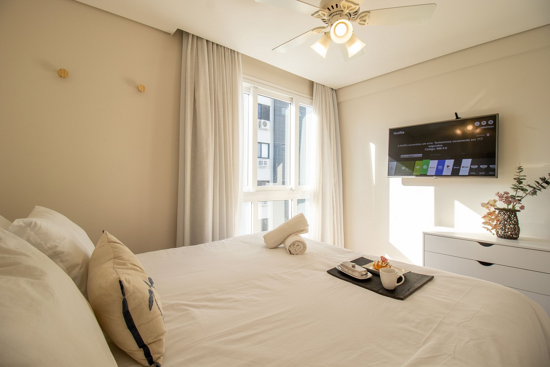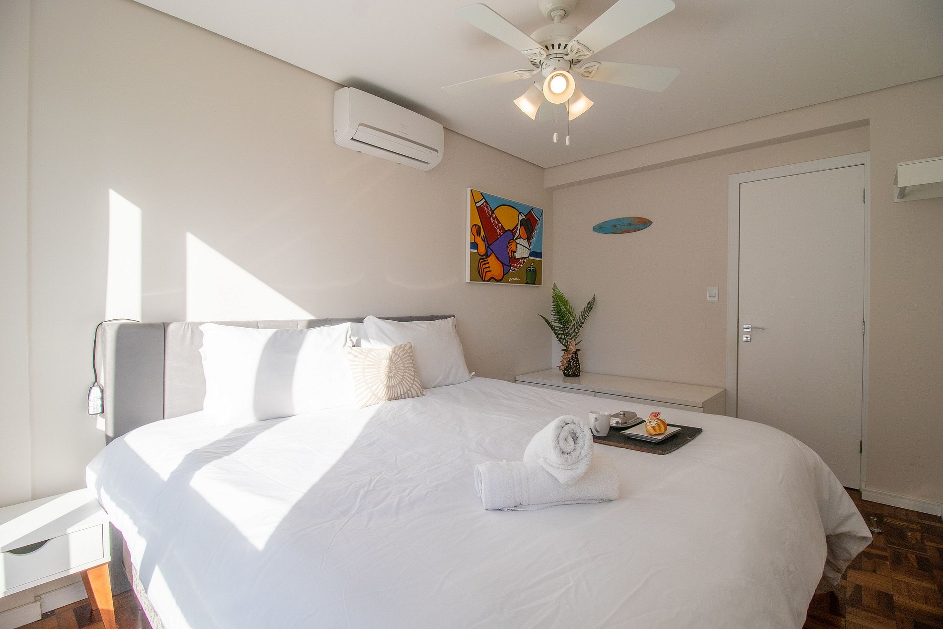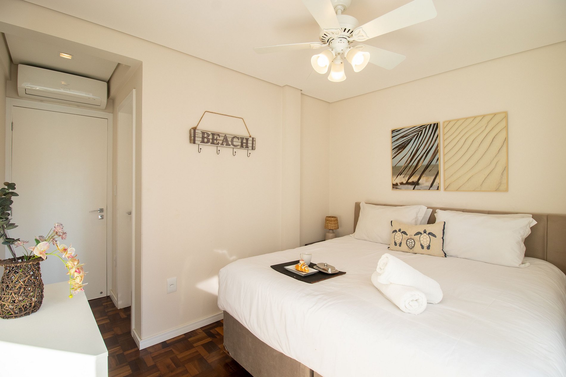 Desfrute de um apartamento totalmente climatizado e bem equipado, com uma suíte e dois dormitórios, sala de estar, varanda com rede de proteção e linda vista para o mar. Cozinha completa com tudo o que você precisa, incluindo utensílios básicos. O espaço ainda oferece garagem, wi-fi, máquina lava e seca, ferro de passar e secador de cabelo. Tudo pronto para você aproveitar ao máximo!