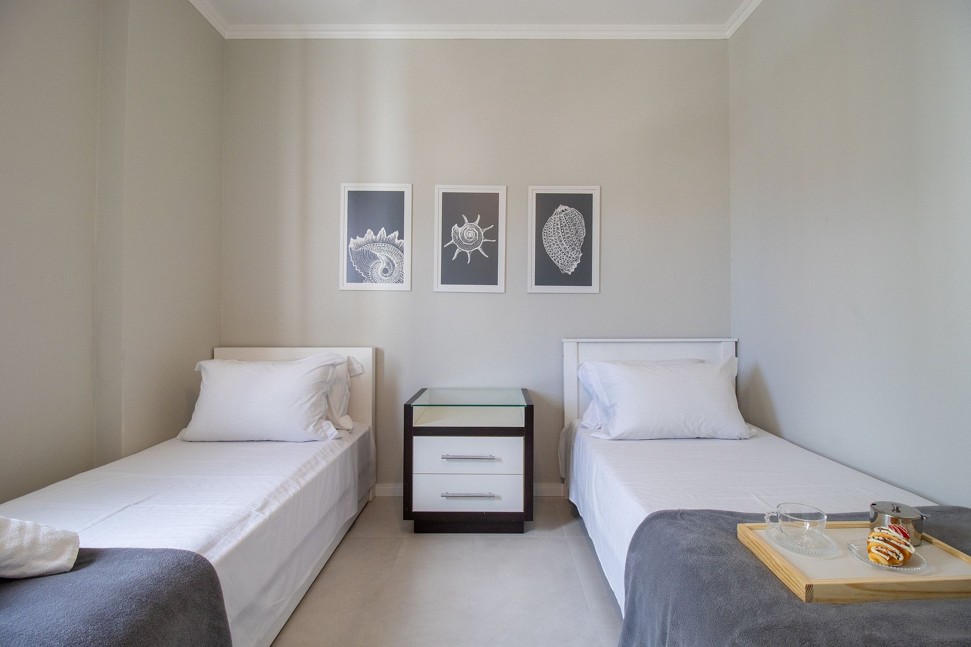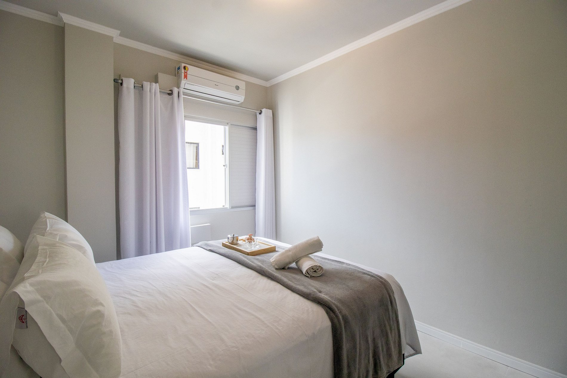 Os dois quartos do apartamento são climatizados, cada um equipado com um ar-condicionado split. Ambos os aparelhos funcionam apenas no modo de refrigeração, proporcionando conforto térmico nos dias mais quentes.