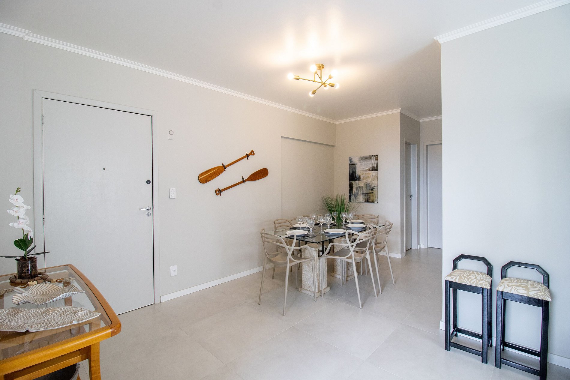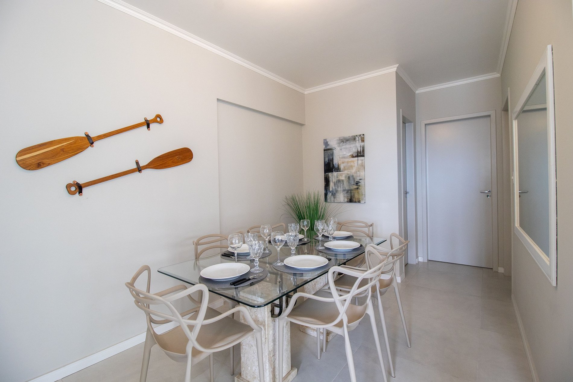 Este apartamento moderno e completo é perfeito para quem busca conforto no coração de Balneário Camboriú. Com capacidade para até 6 pessoas, ele conta com dois dormitórios bem equipados: um com cama queen e outro com duas camas de solteiro, além de uma cama auxiliar e um colchão de solteiro avulso, garantindo espaço para todos. A sala de estar é super aconchegante, com um sofá retrátil e TV Smart, ideal para relaxar depois de um dia aproveitando a cidade. Ao lado, a mesa de jantar proporciona um ótimo espaço para refeições. A varanda oferece uma vista da cidade e do mar, tornando a experiência ainda mais especial. A cozinha é totalmente equipada, contando com fogão, geladeira, microondas, cafeteira, liquidificador e air fryer, além de todos os utensílios básicos para preparar suas refeições com praticidade. Para maior comodidade, a área de serviço possui máquina de lavar, ferro de passar e secador de cabelo, garantindo que você tenha tudo o que precisa durante a estadia.