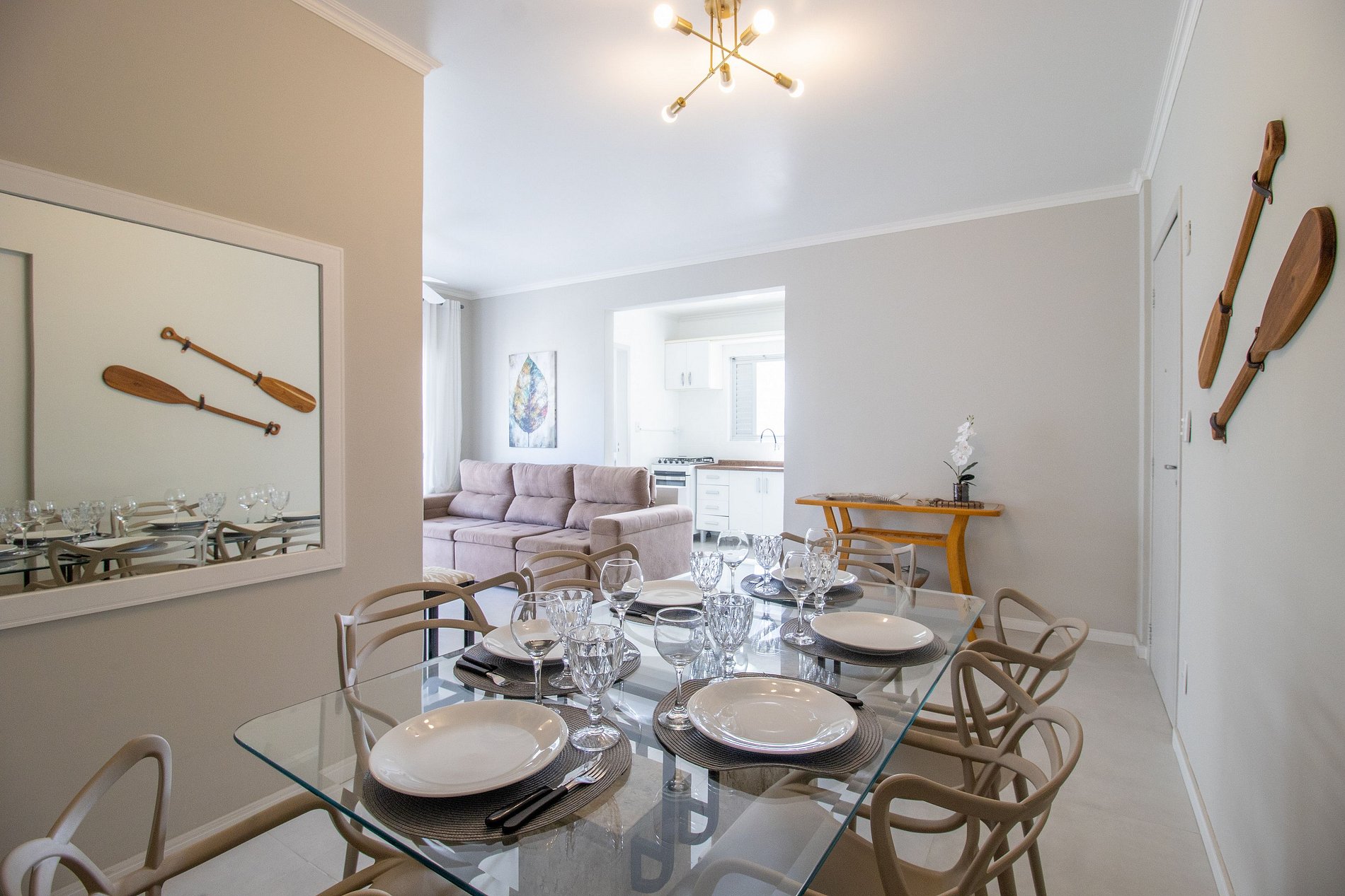 Este apartamento moderno e completo é perfeito para quem busca conforto no coração de Balneário Camboriú. Com capacidade para até 6 pessoas, ele conta com dois dormitórios bem equipados: um com cama queen e outro com duas camas de solteiro, além de uma cama auxiliar e um colchão de solteiro avulso, garantindo espaço para todos. A sala de estar é super aconchegante, com um sofá retrátil e TV Smart, ideal para relaxar depois de um dia aproveitando a cidade. Ao lado, a mesa de jantar proporciona um ótimo espaço para refeições. A varanda oferece uma vista da cidade e do mar, tornando a experiência ainda mais especial. A cozinha é totalmente equipada, contando com fogão, geladeira, microondas, cafeteira, liquidificador e air fryer, além de todos os utensílios básicos para preparar suas refeições com praticidade. Para maior comodidade, a área de serviço possui máquina de lavar, ferro de passar e secador de cabelo, garantindo que você tenha tudo o que precisa durante a estadia.
