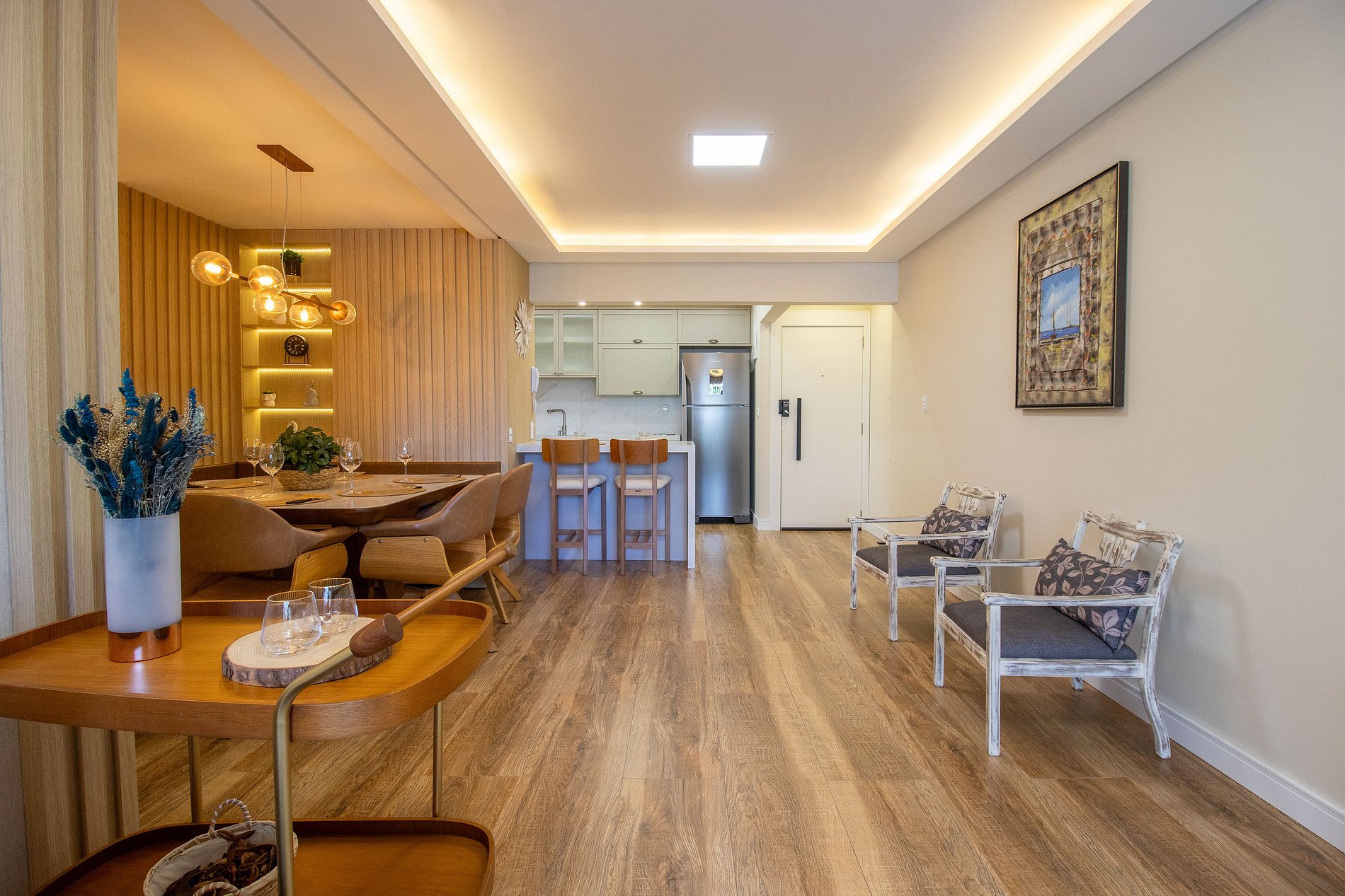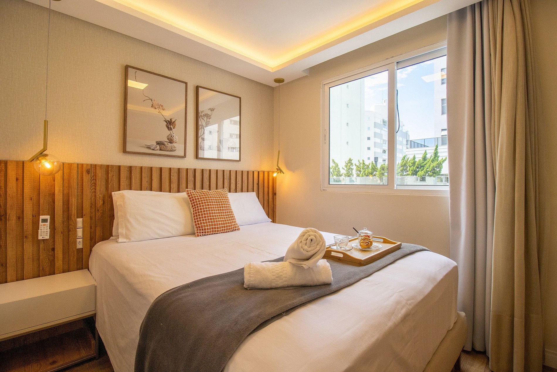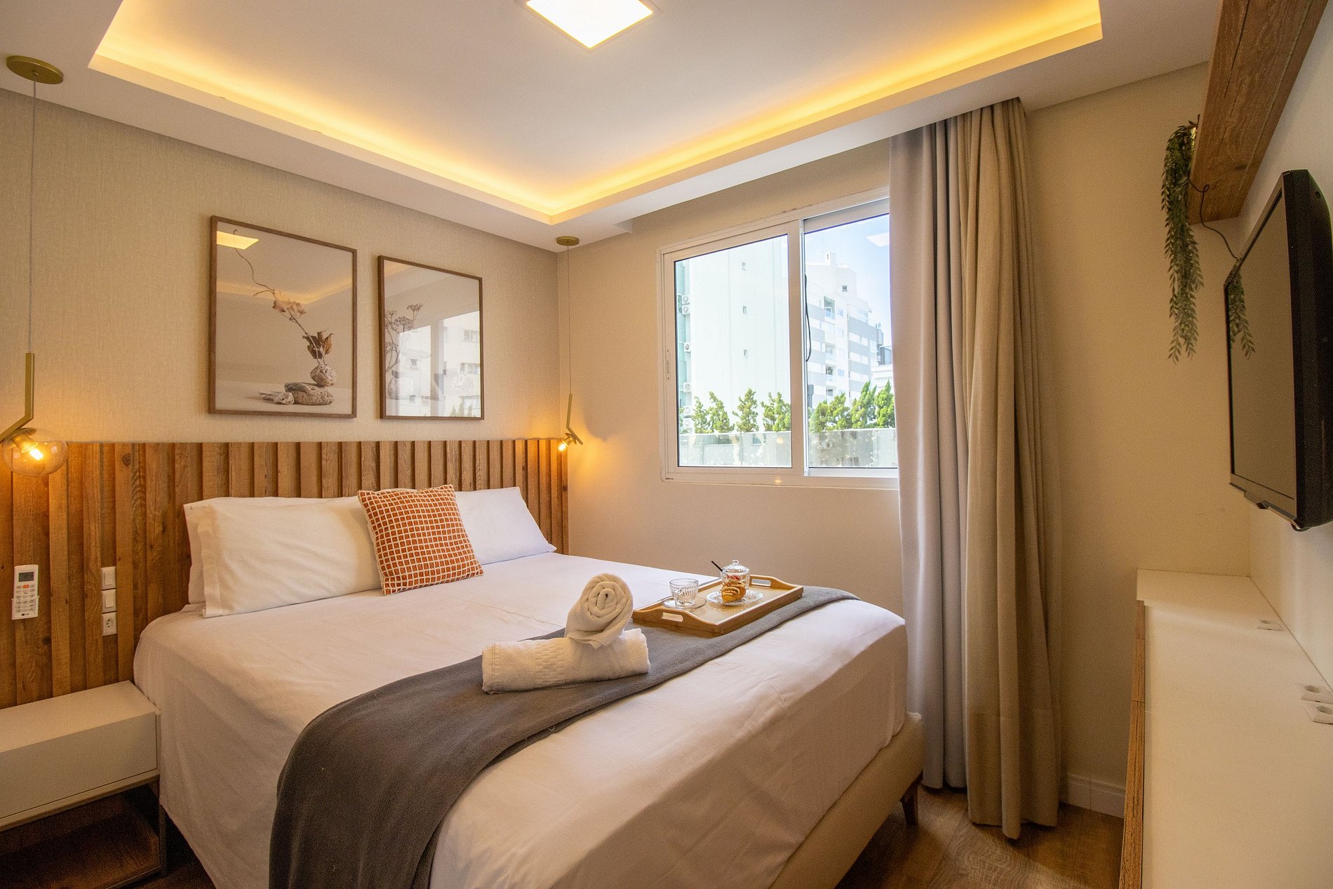 Esse espaço foi pensado para proporcionar conforto e praticidade, acomodando até 6 pessoas. São 2 suítes e 1 dormitório, ao total temos duas camas queen e uma cama de casal. A sala moderna e aconchegante, com sofá confortável e TV Smart, integrada à sala de jantar, criando um ambiente perfeito para momentos de lazer. Cozinha completa com balcão americano, equipada com geladeira, microondas, forno e fogão, além de contar com liquidificador, sanduicheira e cafeteira para sua comodidade. Área de serviço com máquina lava e seca, além de secador de cabelo e ferro de passar, para facilitar sua estadia. Tudo isso em uma localização privilegiada, perfeito para quem busca conforto, praticidade e momentos inesquecíveis. Fornecemos roupa de cama básica e uma toalha de banho por hóspede. Oferecemos uma manta de microfibra para cada cama, garantindo seu máximo conforto.