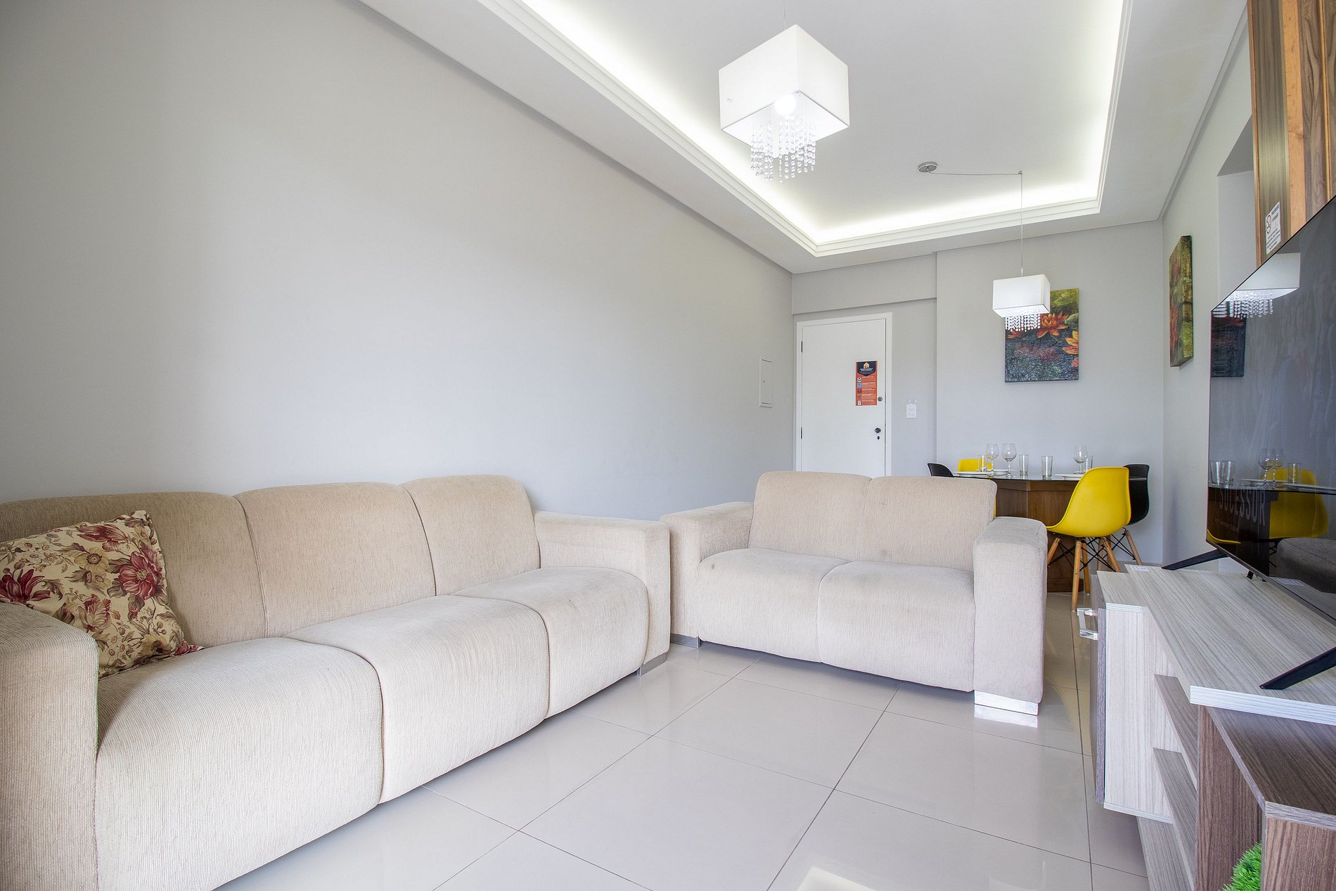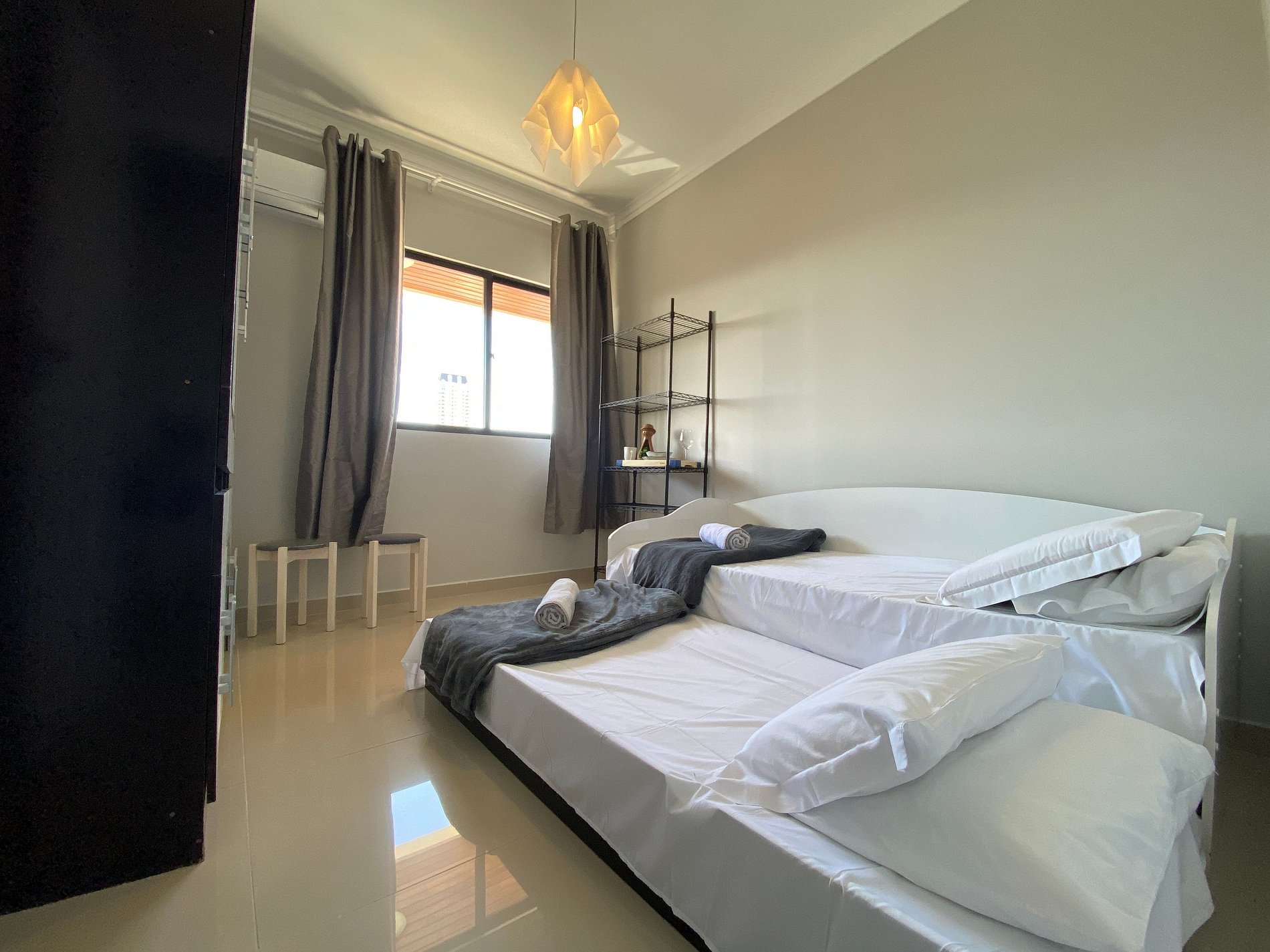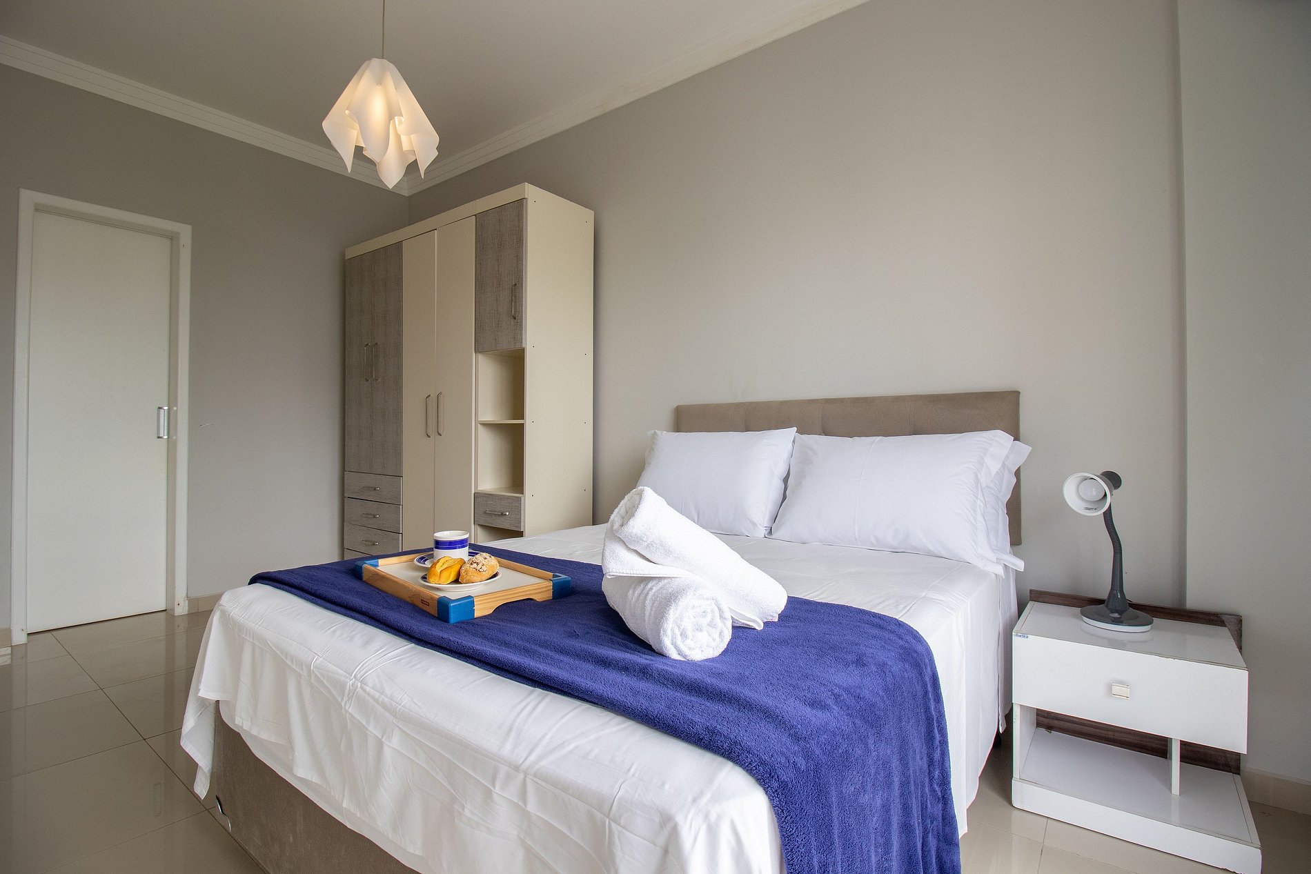 O apartamento conta com dois dormitórios, sendo uma suíte e mais um quarto. Há uma cama de casal, uma cama de solteiro com uma cama auxiliar e dois colchões de solteiro avulsos. Disponibilizamos roupa de cama básica (lençol de elástico, sobre lençol e travesseiros com fronha) e uma toalha de banho por hóspede. Oferecemos uma manta de microfibra para cada cama e colchão avulso, garantindo seu máximo conforto.