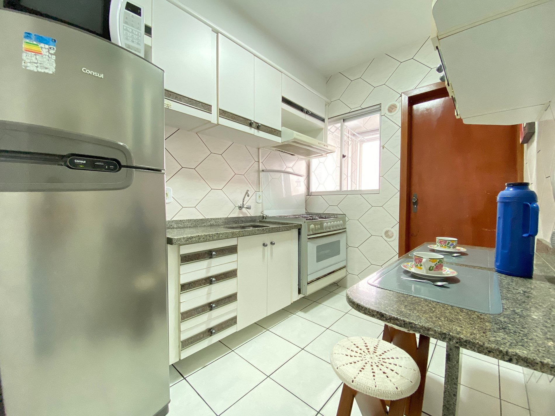 Este apartamento possui dois dormitórios, sendo ideal para acomodar famílias ou grupos. Oferece uma cama de casal, duas camas de solteiro e dois colchões de solteiro avulsos para flexibilidade extra. A sacada conta com churrasqueira, perfeita para momentos de lazer. A sala de estar é aconchegante, equipada com TV, proporcionando entretenimento e relaxamento. A cozinha é prática e dispõe de utensílios básicos para preparar refeições.