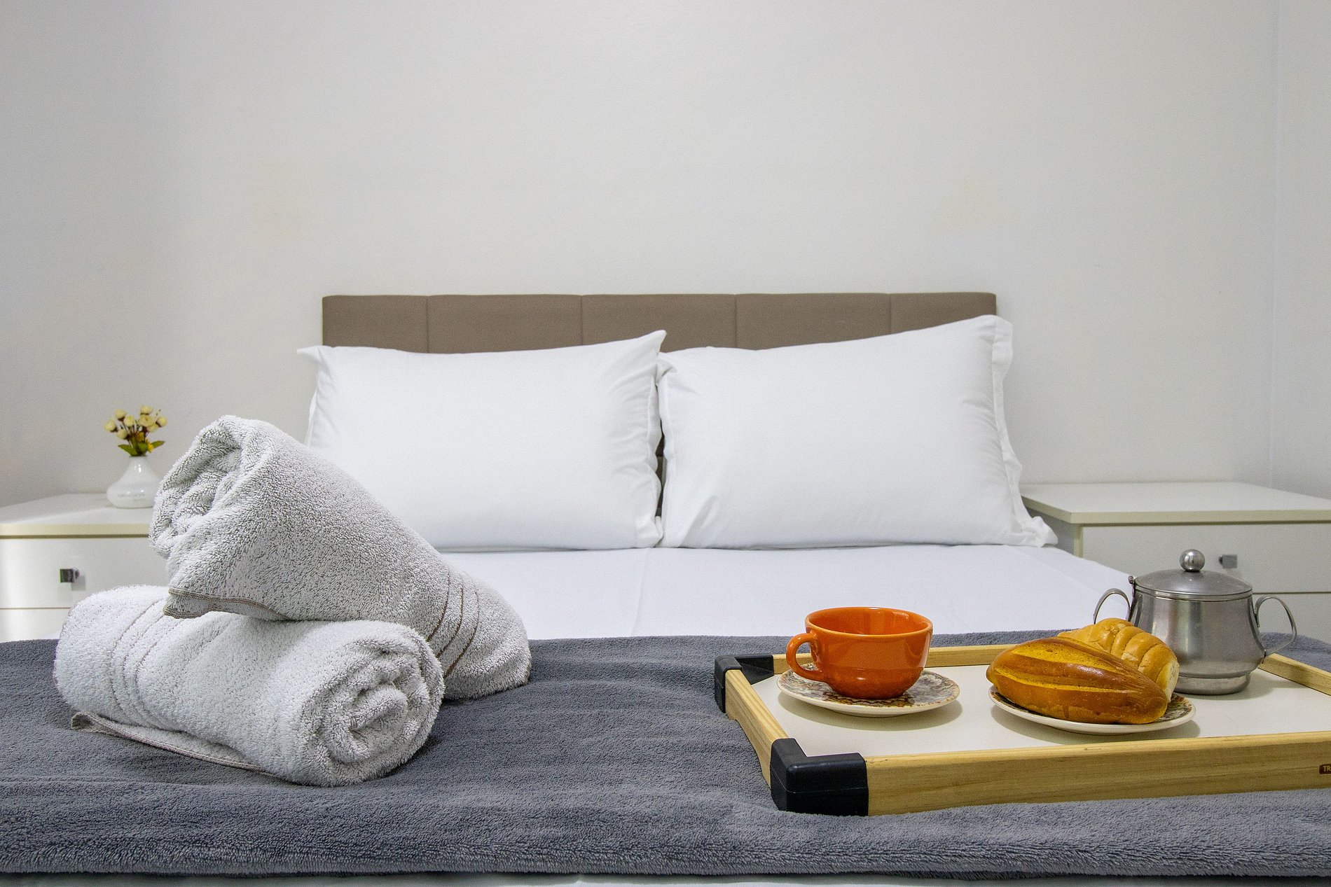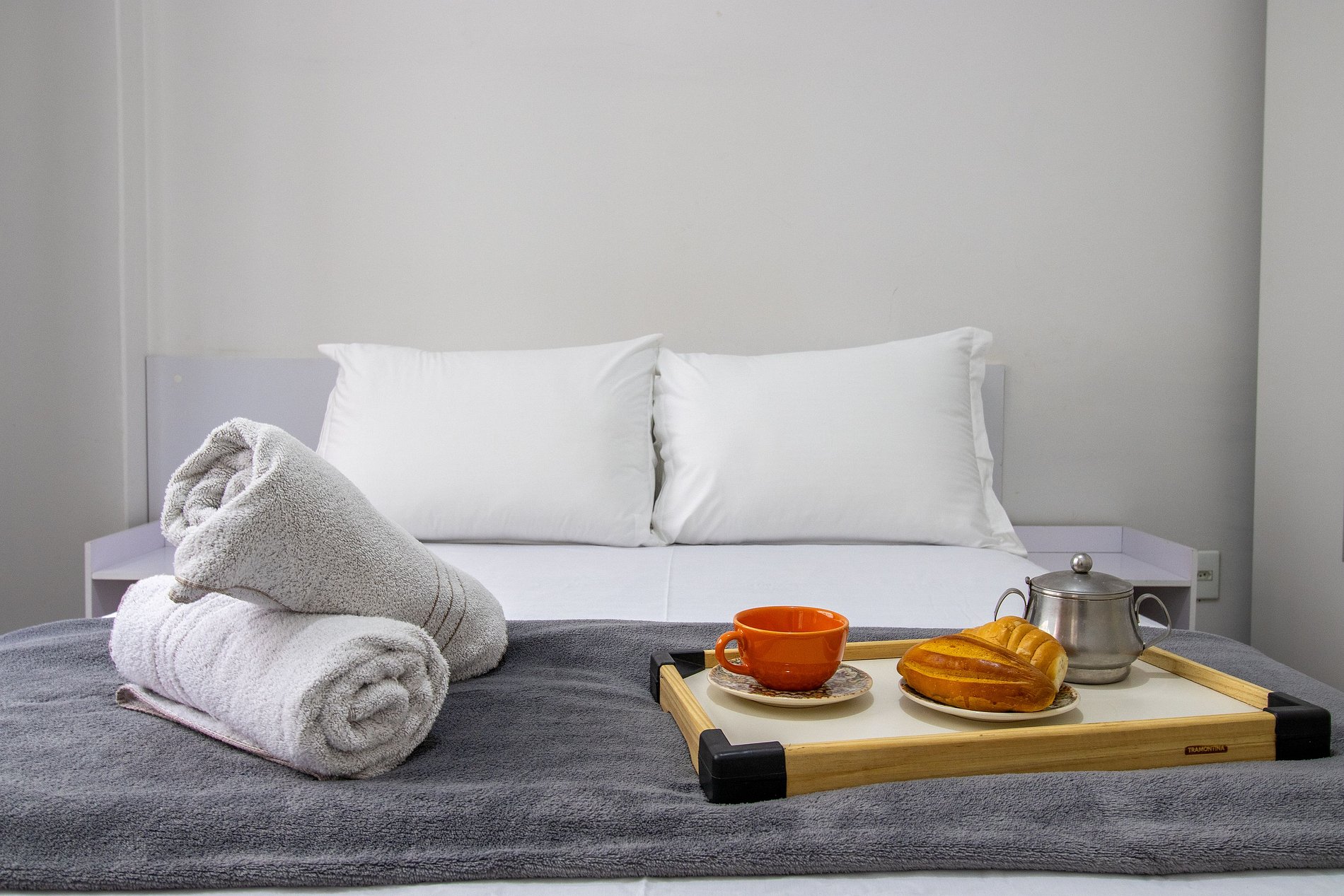 Fornecemos roupa de cama básica e uma toalha de banho por hóspede. Oferecemos um edredom para cada cama e uma manta de microfibra para colchão avulso e auxiliar, garantindo seu máximo conforto.