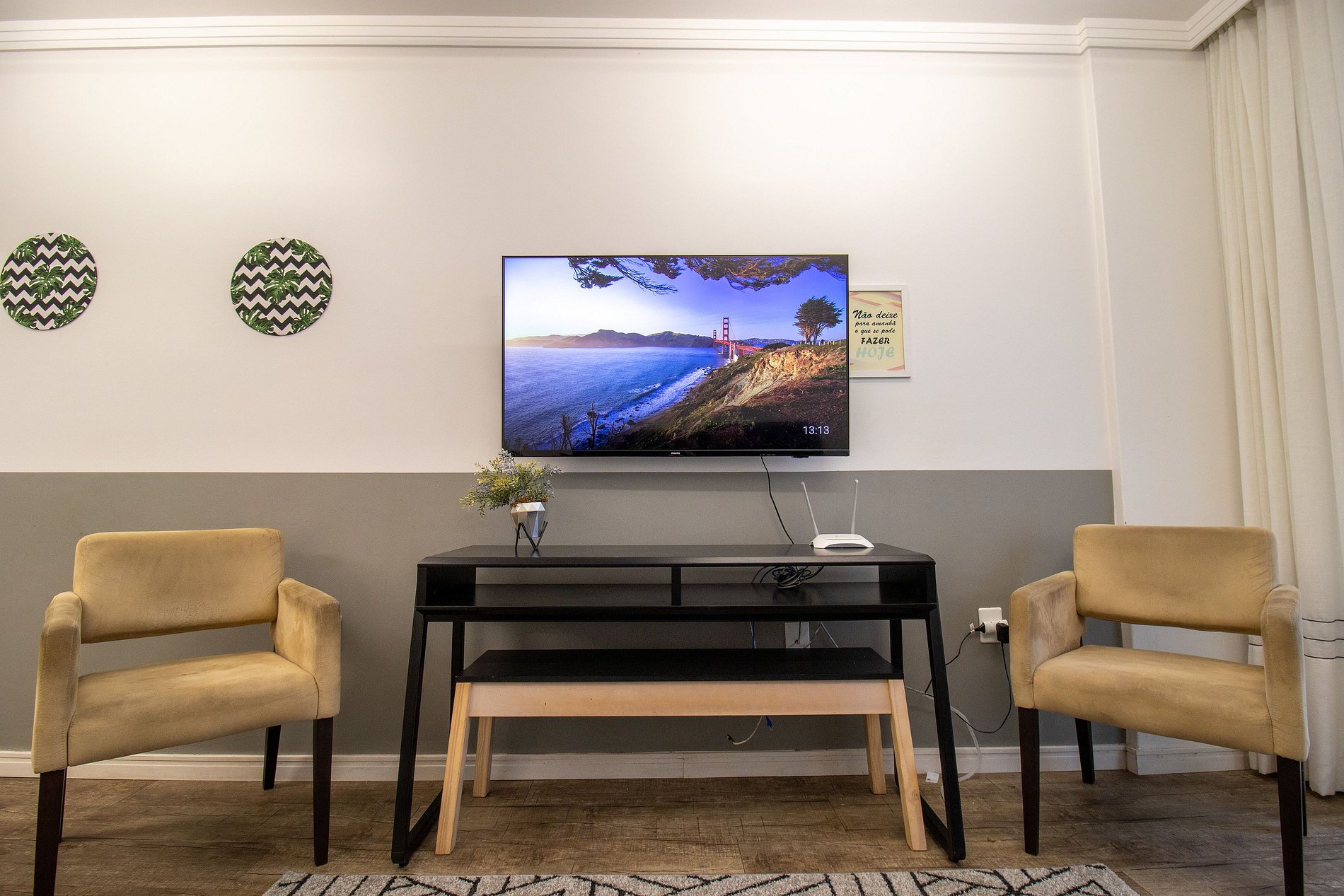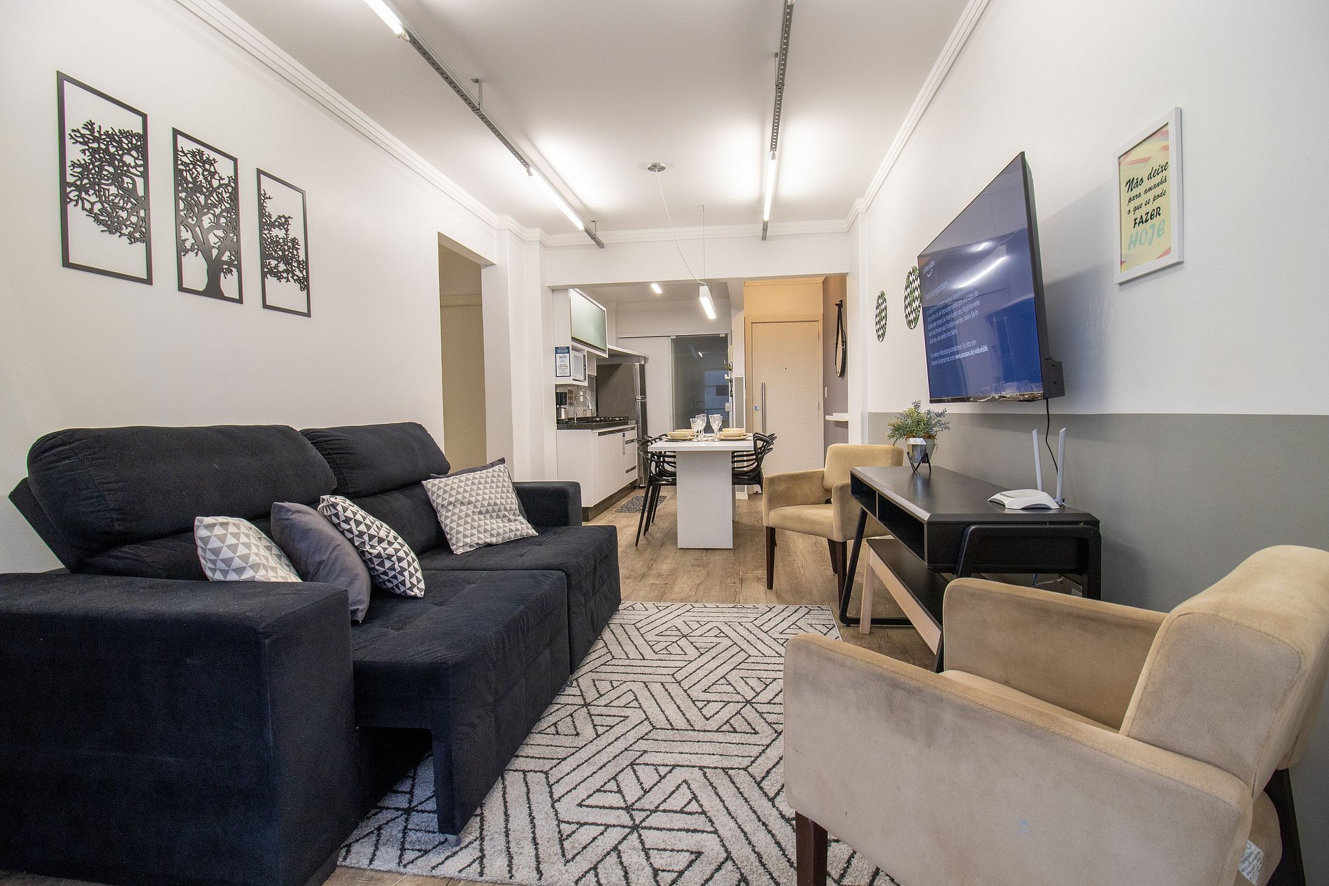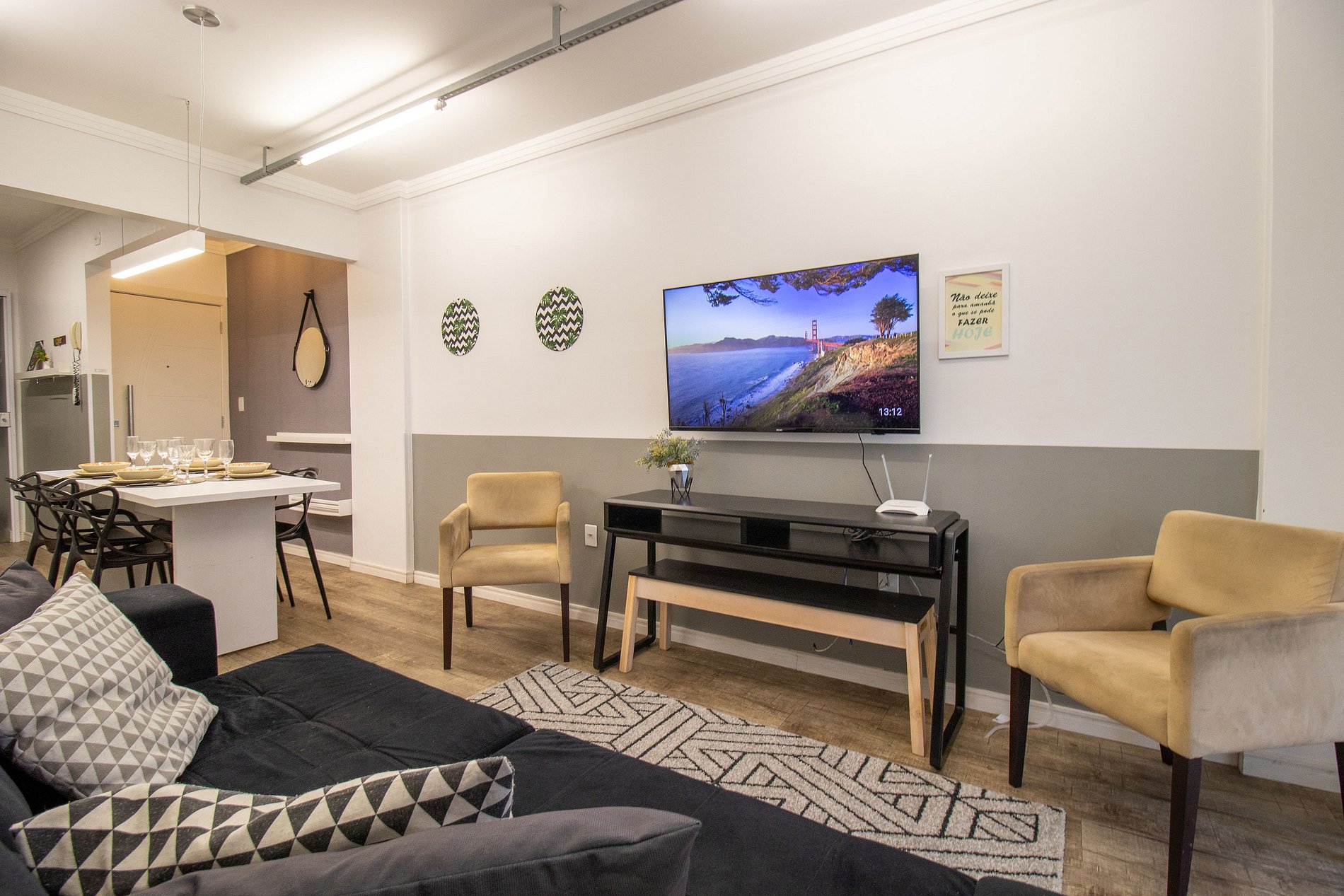 Internet wi-fi de boa velocidade própria do apartamento, TV Smart na sala.