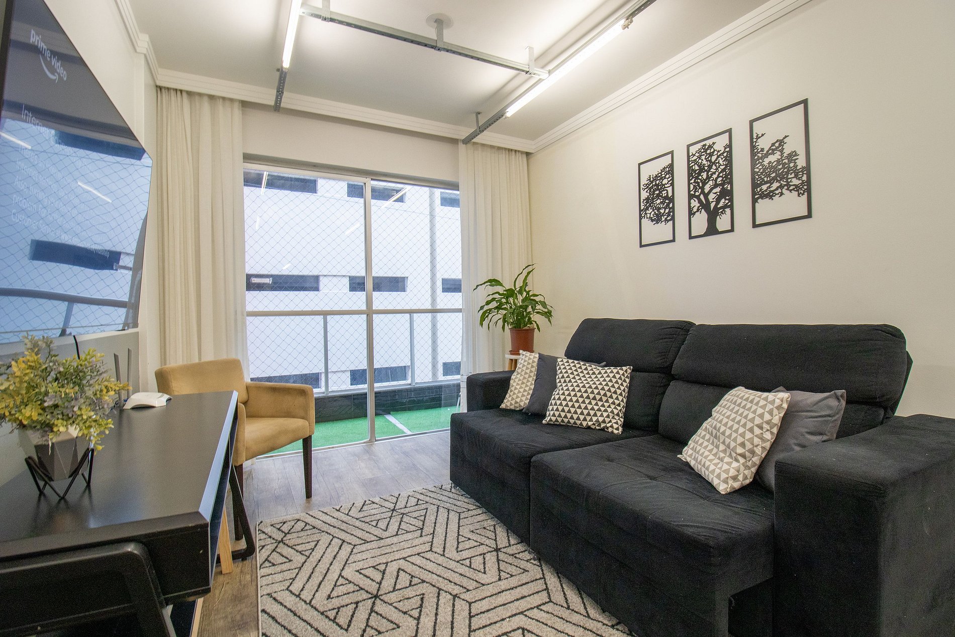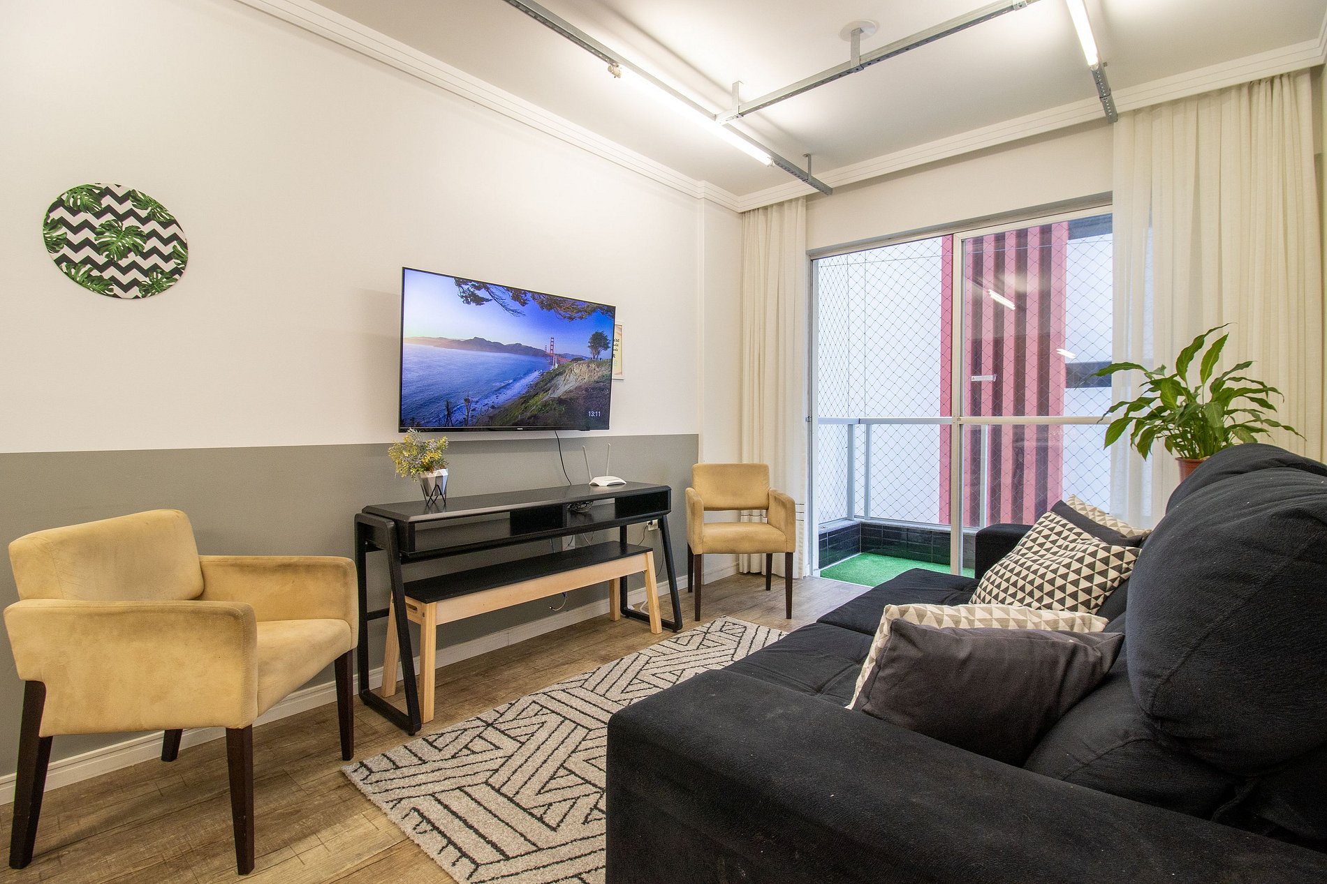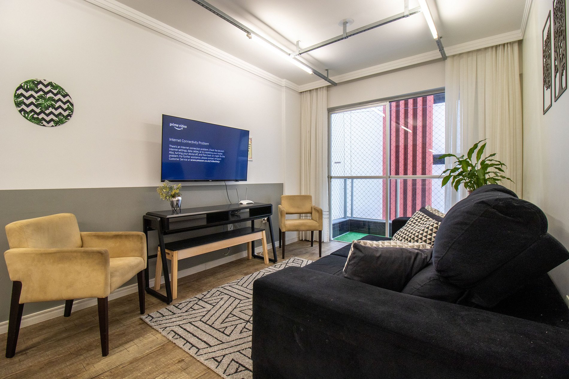 Internet wi-fi de boa velocidade própria do apartamento, TV Smart na sala.