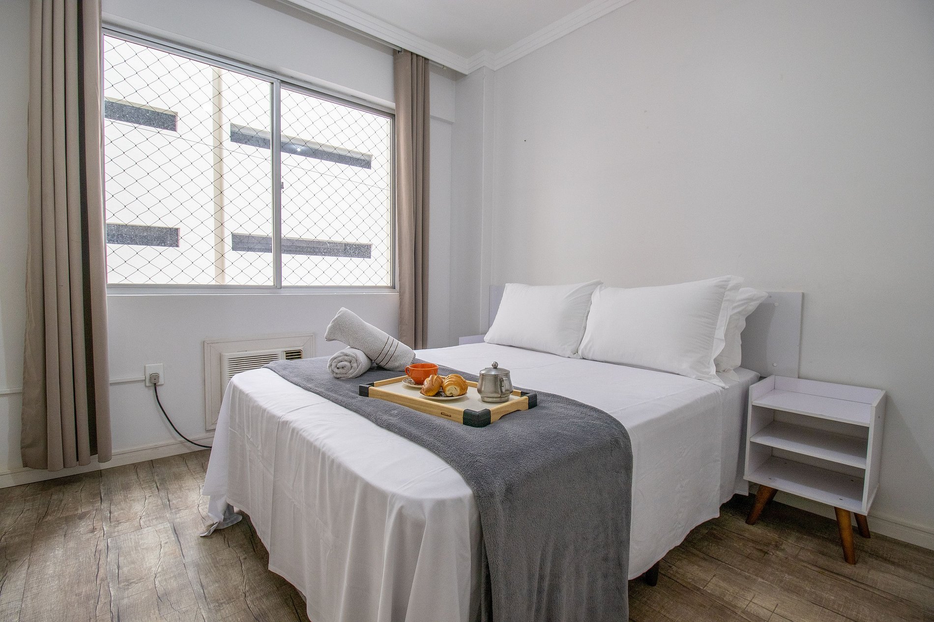 Venha para Balneário Camboriú e fique hospedado nesse apartamento localizado no centro da cidade. São dois dormitórios maiores e um dormitório menor após a cozinha, todos climatizados. Sala com TV Smart e sacada. A cozinha é equipada com utensílios para preparar refeições básicas, temos também forno elétrico, liquidificador, sanduicheira, cafeteira, ferro de passar e secador de cabelo.