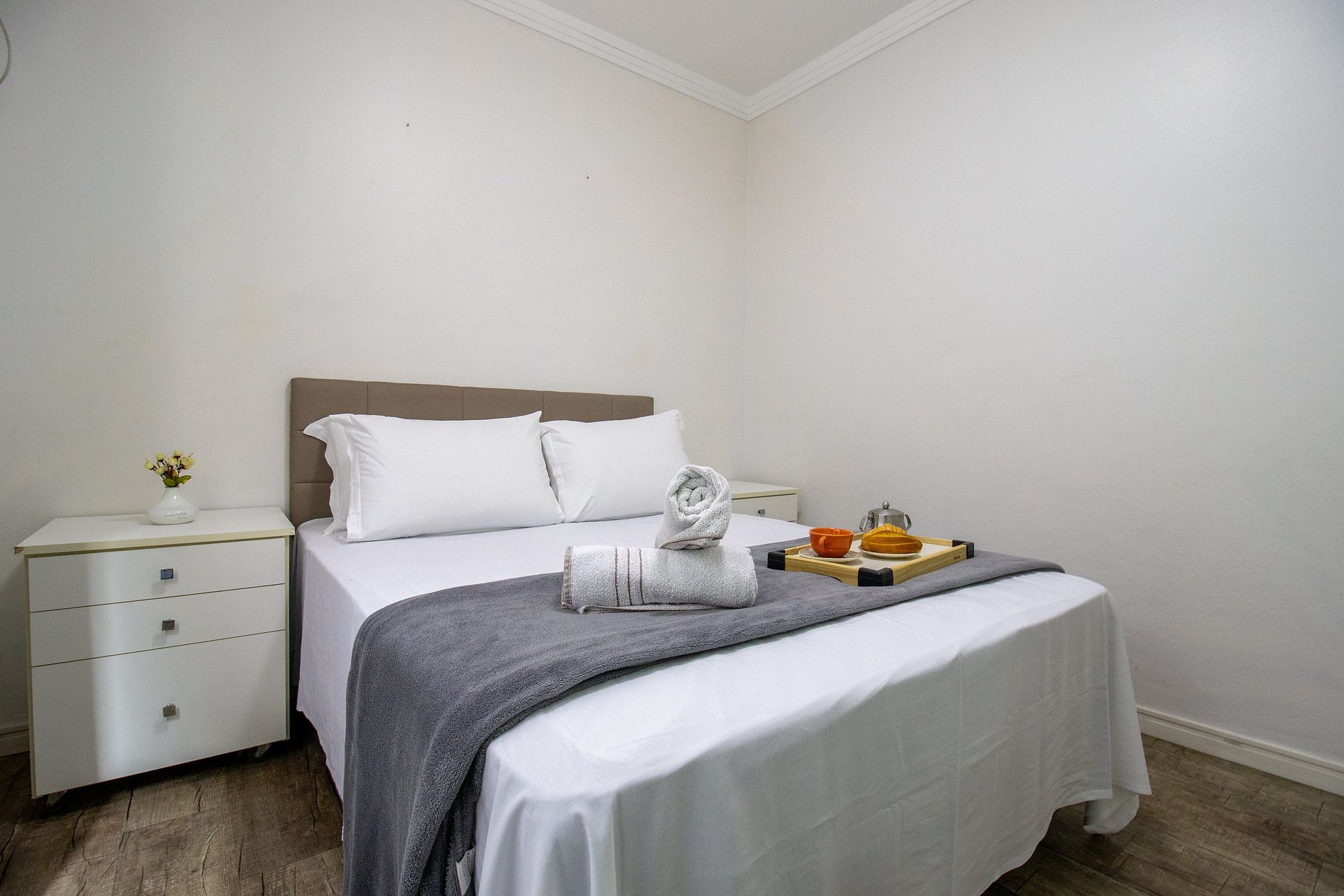 Fornecemos roupa de cama básica e uma toalha de banho por hóspede. Oferecemos um edredom para cada cama e uma manta de microfibra para colchão avulso e auxiliar, garantindo seu máximo conforto.