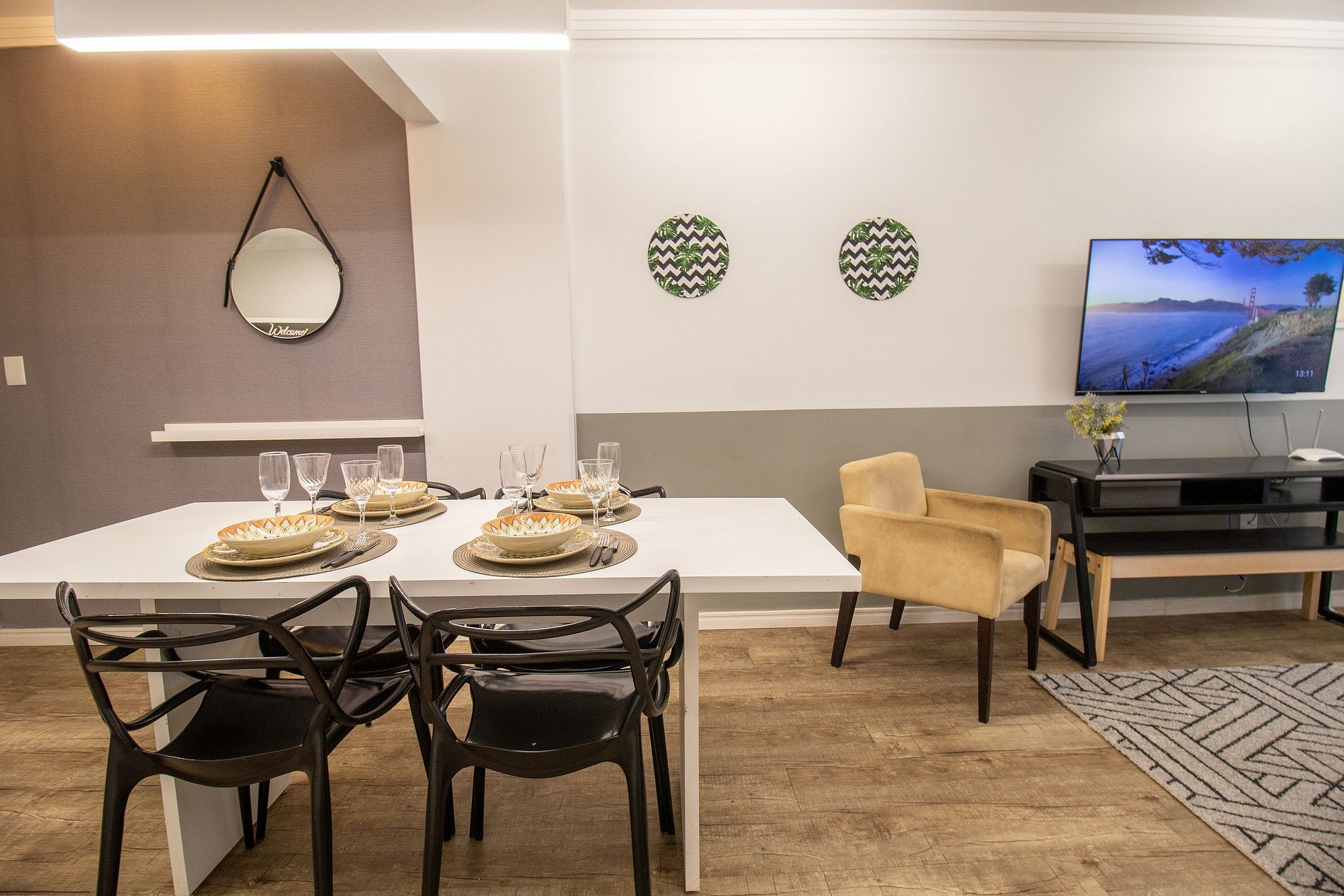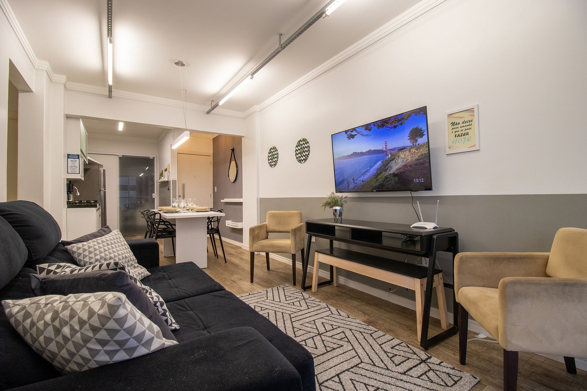 Internet wi-fi de boa velocidade própria do apartamento, TV Smart na sala.