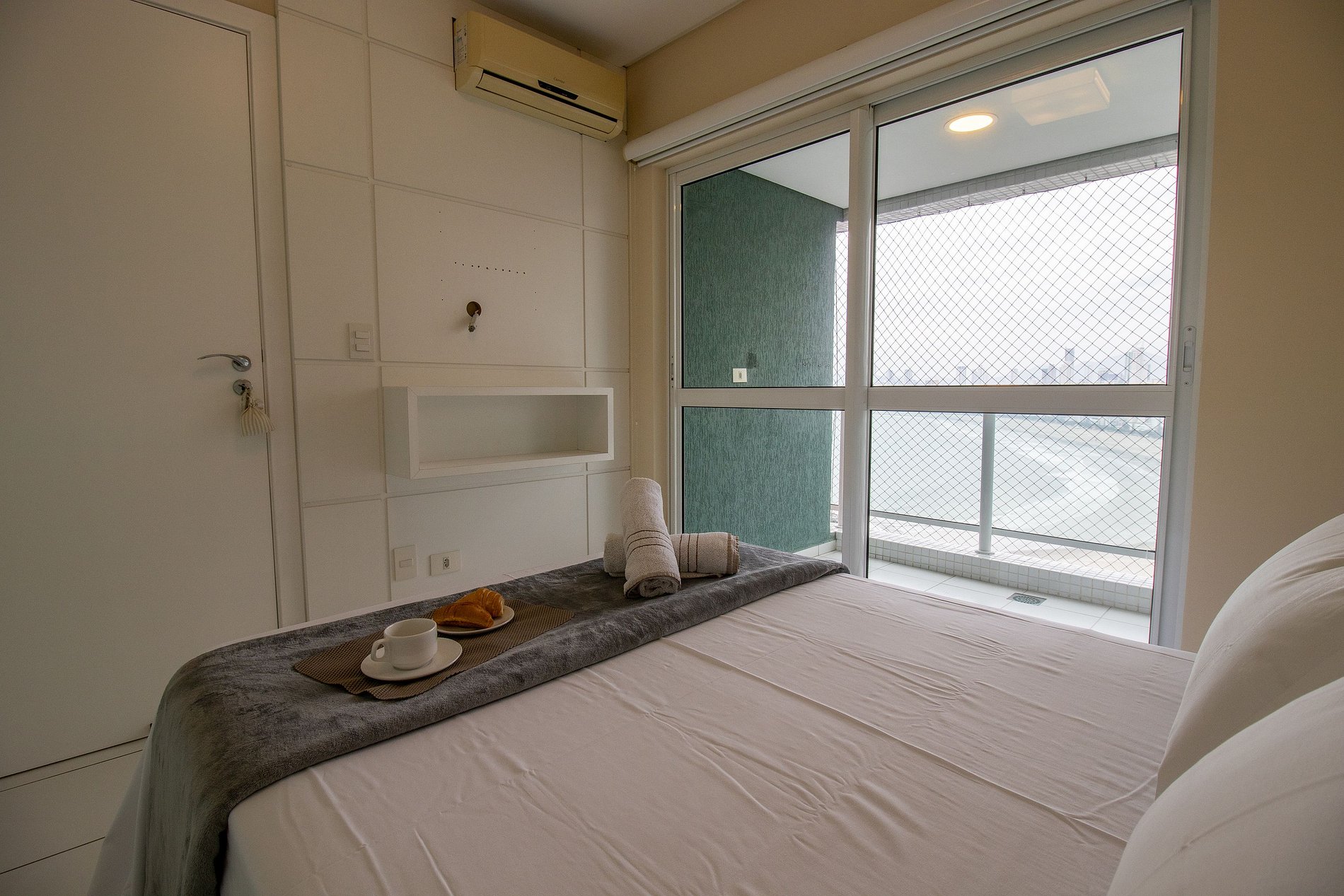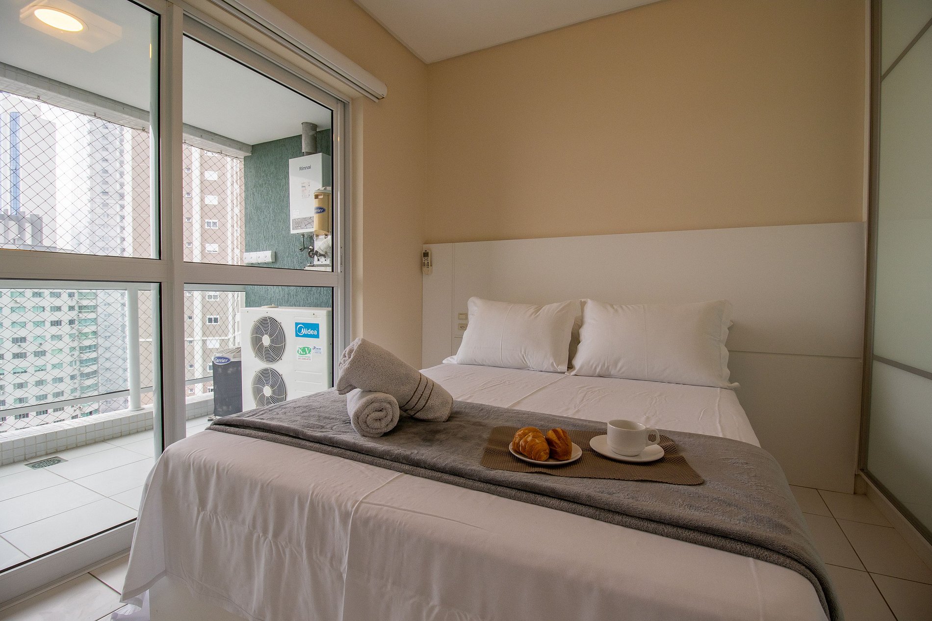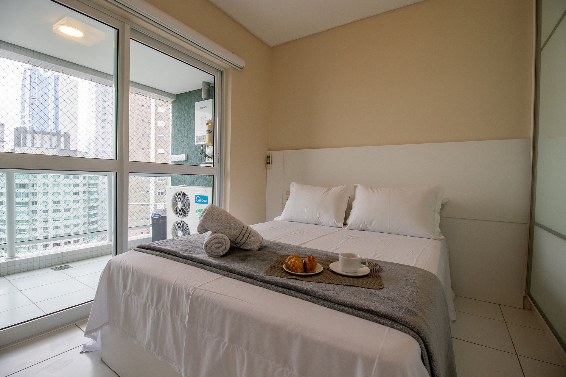 Ao total são três ares condicionados splits, sendo um em cada quarto e um na sala.