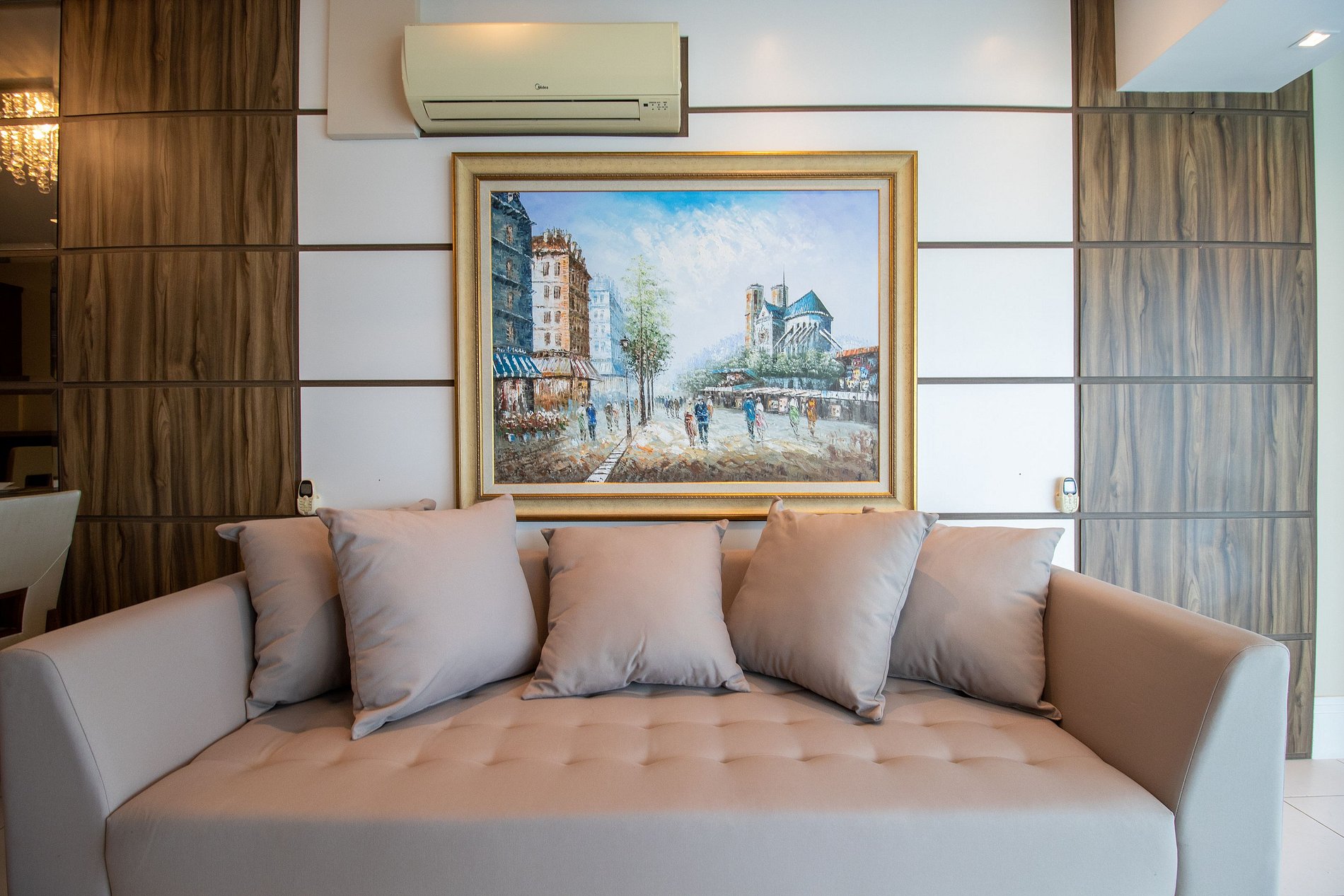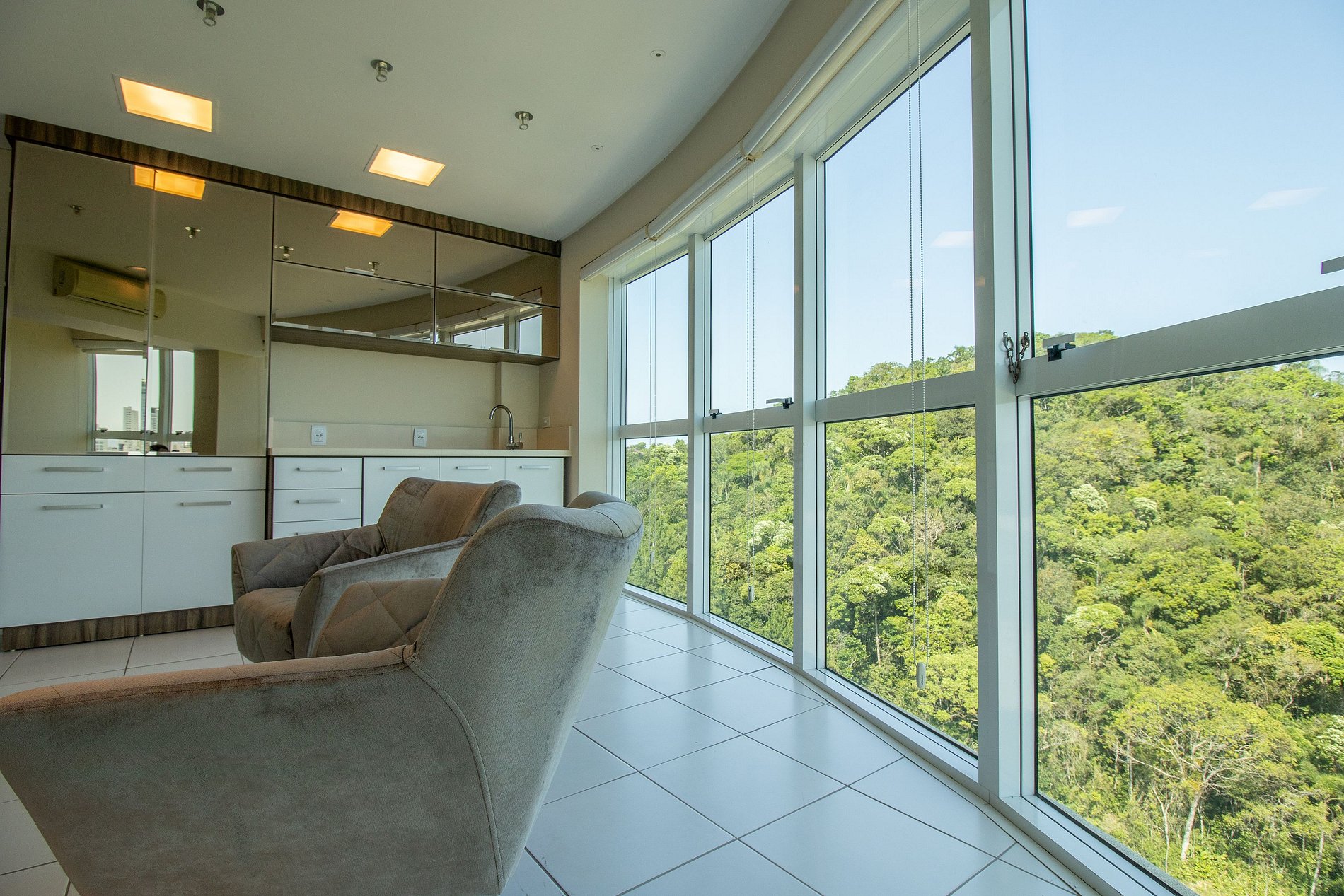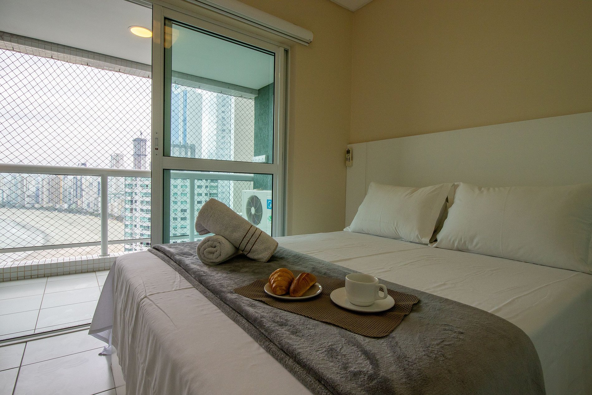 Ao total são três ares condicionados splits, sendo um em cada quarto e um na sala.