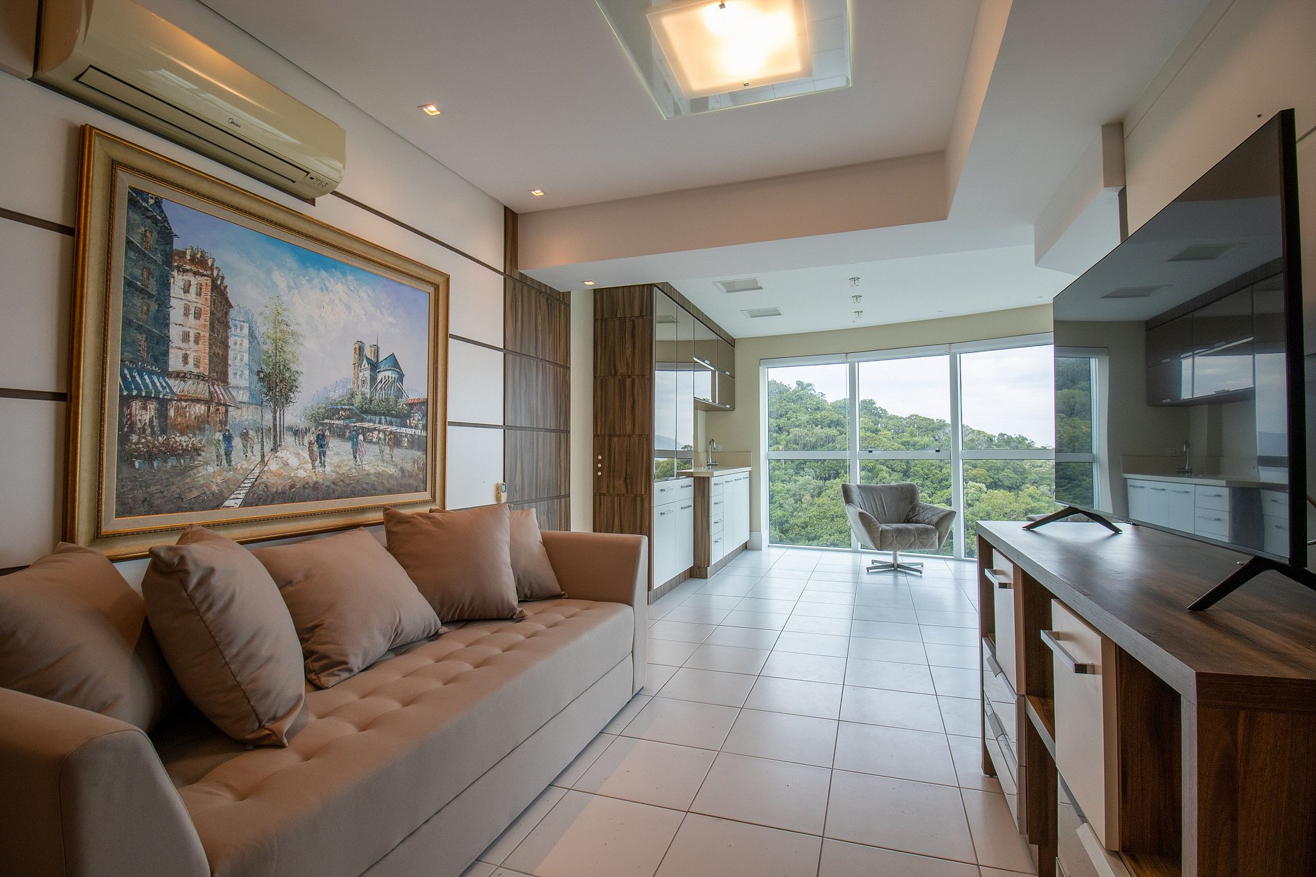 Internet wi-fi de boa velocidade própria do apartamento, TV Smart na sala.