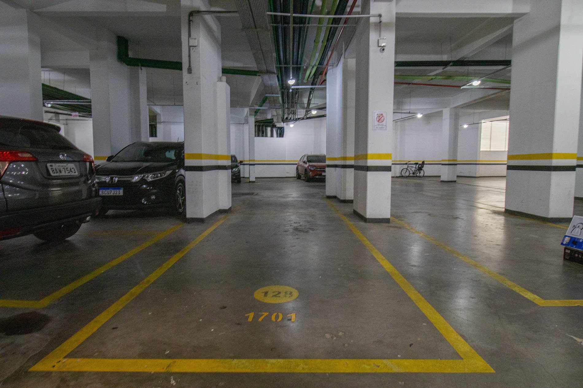 Duas vagas de garagem privativas para um veículo cada no mesmo prédio, cada vaga mede 2,10m por 4,85m. Caso necessário, minha equipe poderá lhe indicar estacionamento privado próximo ao edifício.