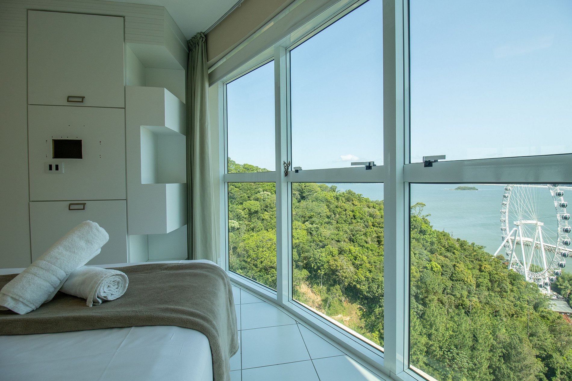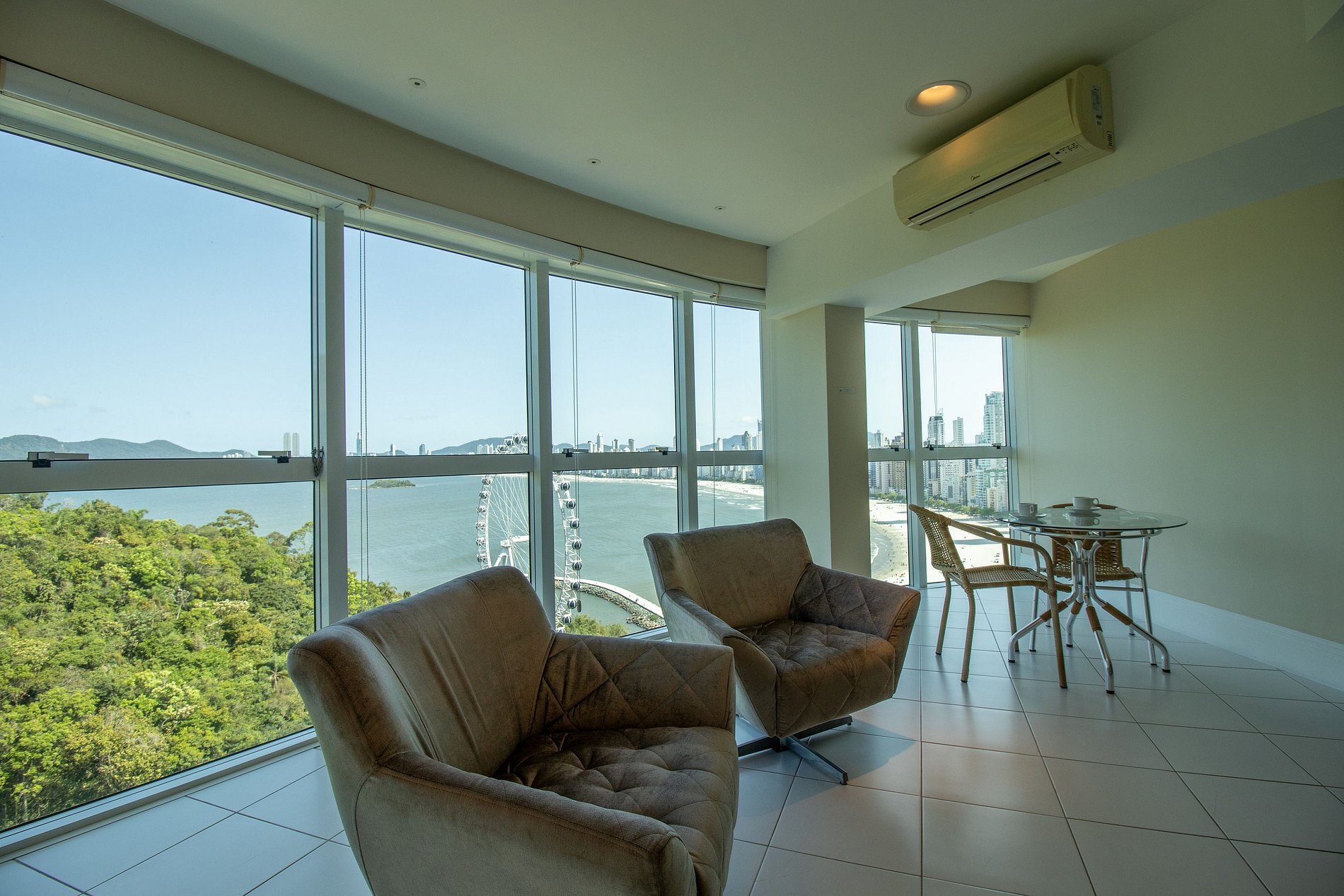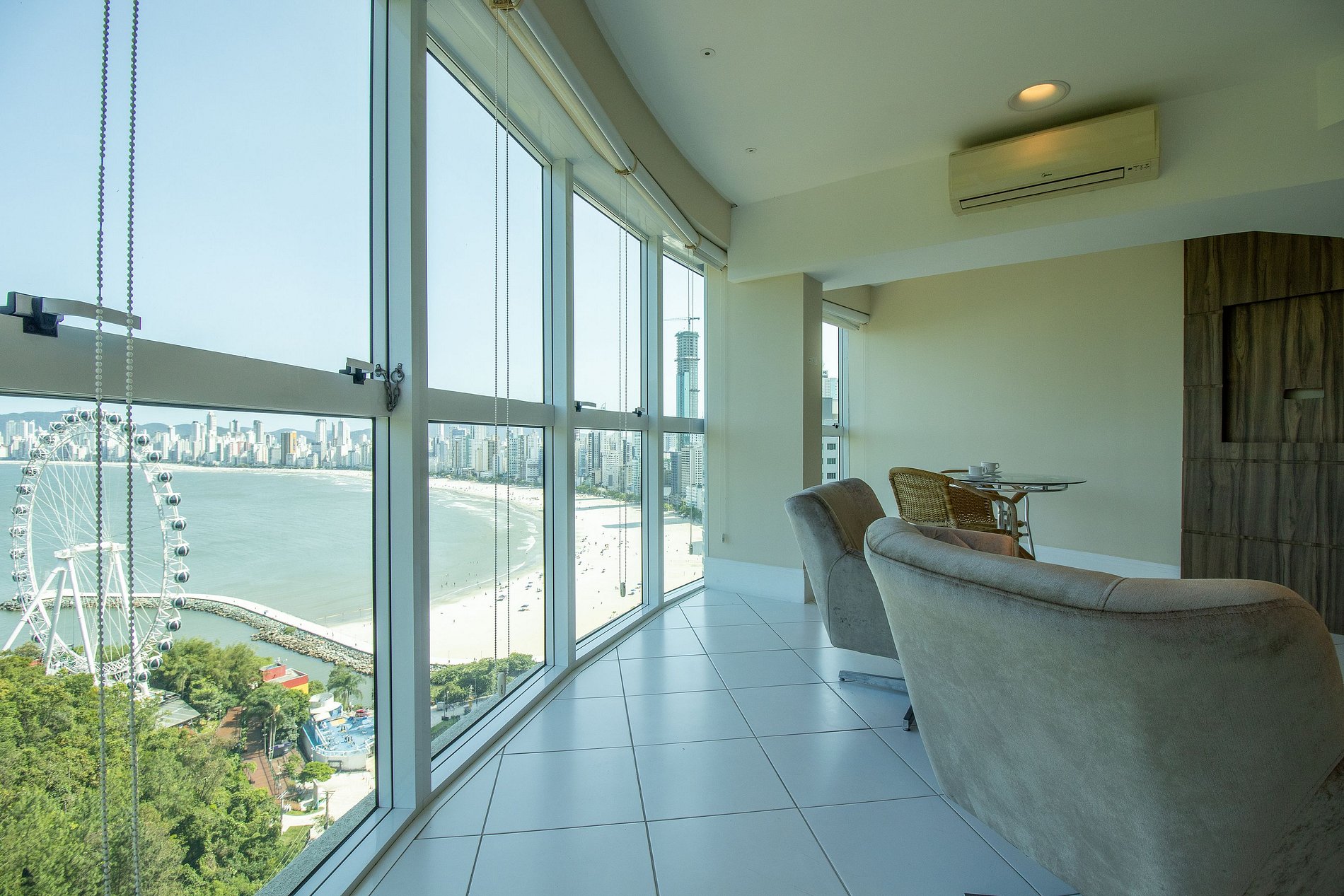 Fique hospedado no famoso Terraços da Rainha, ao lado da roda gigante com tudo que um viajante precisa. O apartamento fica no 17º andar e possui uma linda vista para a praia. Possui uma suíte e um dormitório climatizados. Sala dois ambientes climatizada e com TV Smart. Cozinha equipada com utensílios para refeições básicas. Hóspedes podem utilizar áreas comuns do prédio como a piscina, academia, sala de cinema e playground.