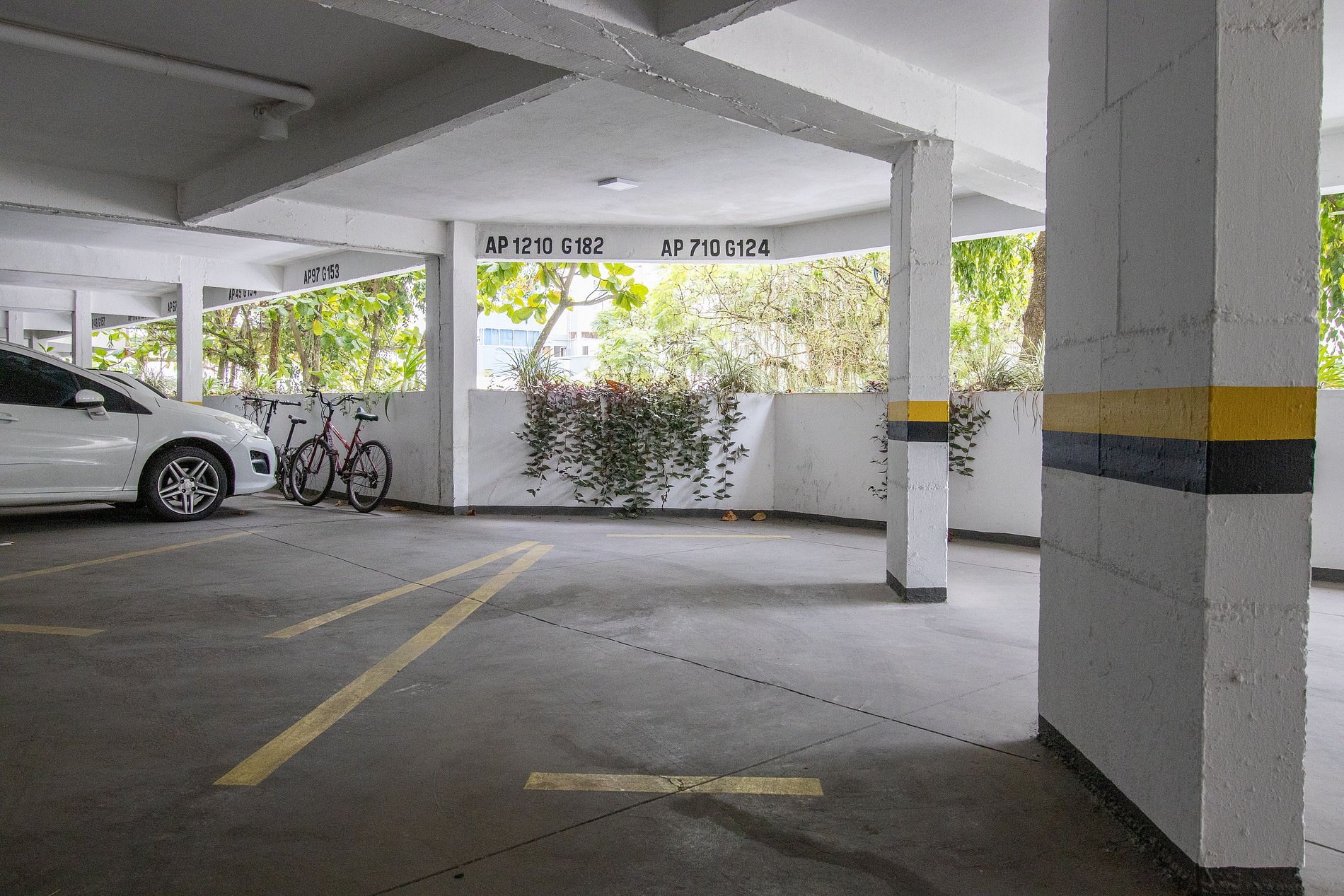 Uma vaga de garagem privativa que comporta até SUVs médias. A vaga fica entre pilares, é necessário manobrar para estacionar. Caso necessário, minha equipe poderá lhe indicar estacionamento privado próximo ao edifício.