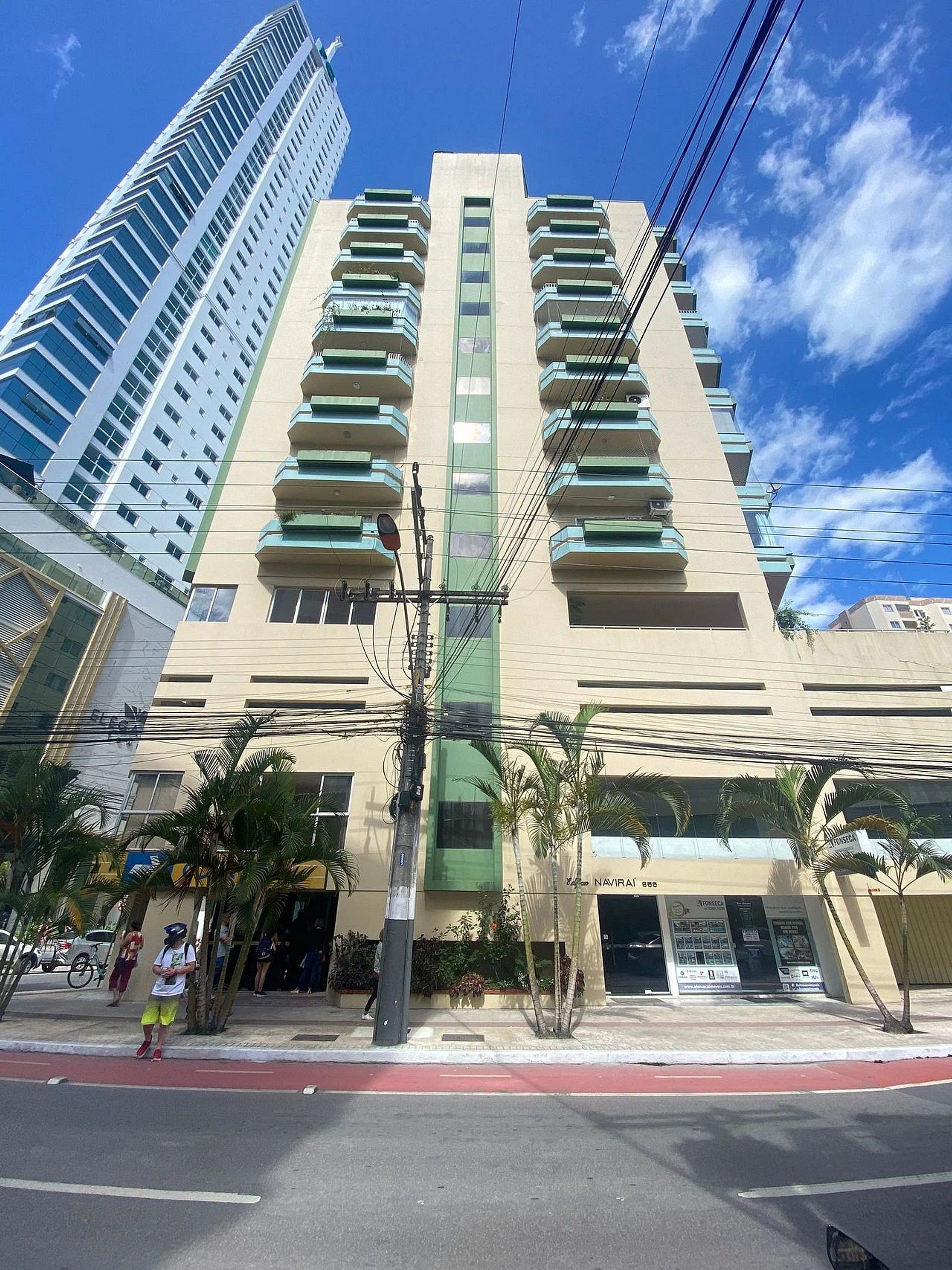 O Edifício Naviraí é localizado na Avenida Brasil, número oitocentos e cinquenta e cinco. Ele fica a cerca de três minutos andando do Shopping Atlântico e um minuto da areia da praia.