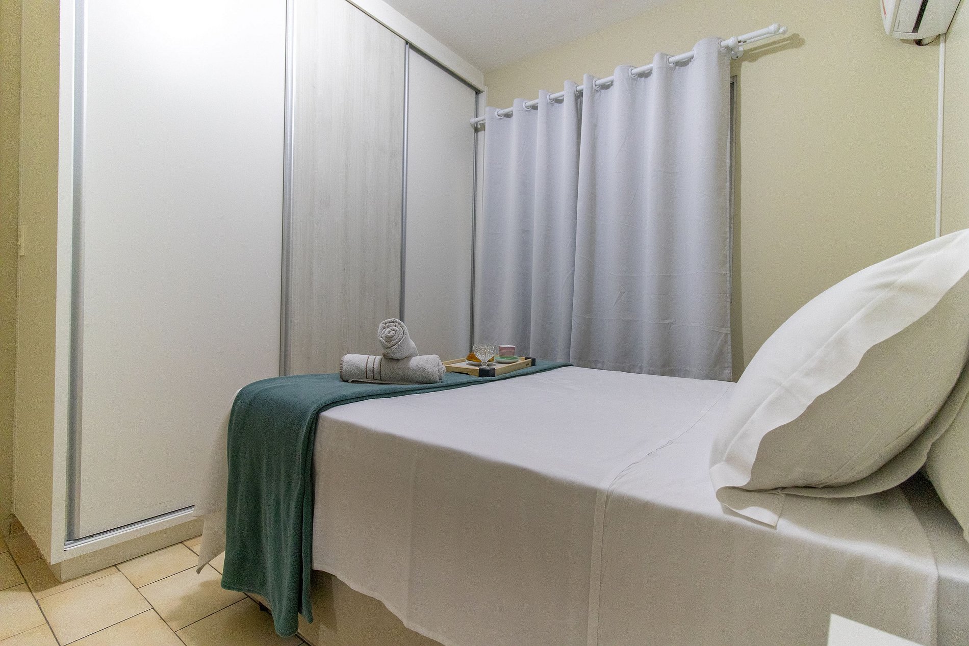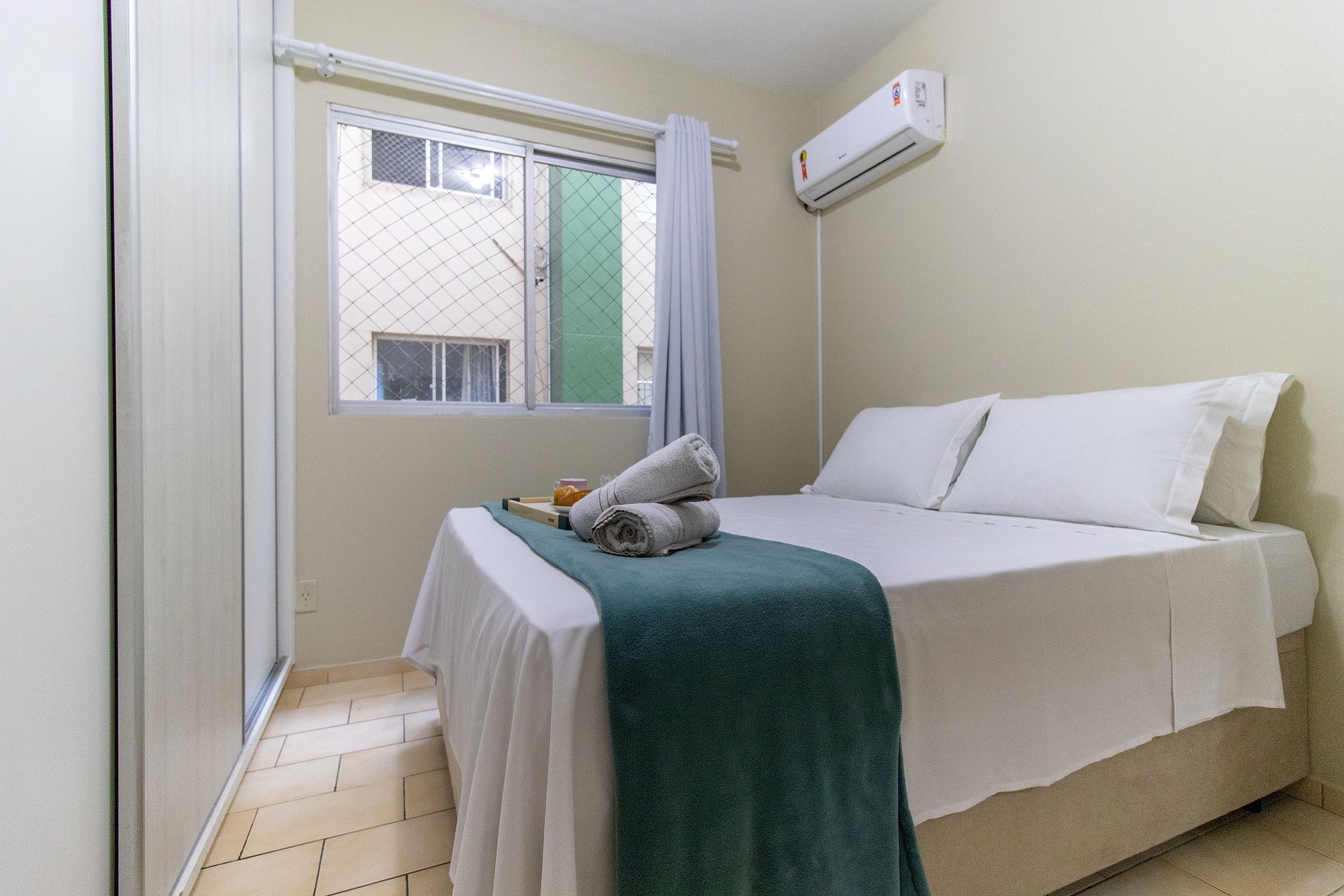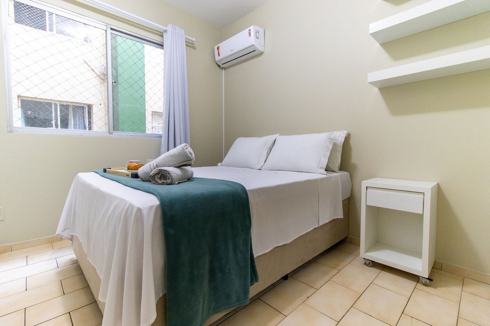 O espaço conta com ar condicionado nos dois dormitórios.