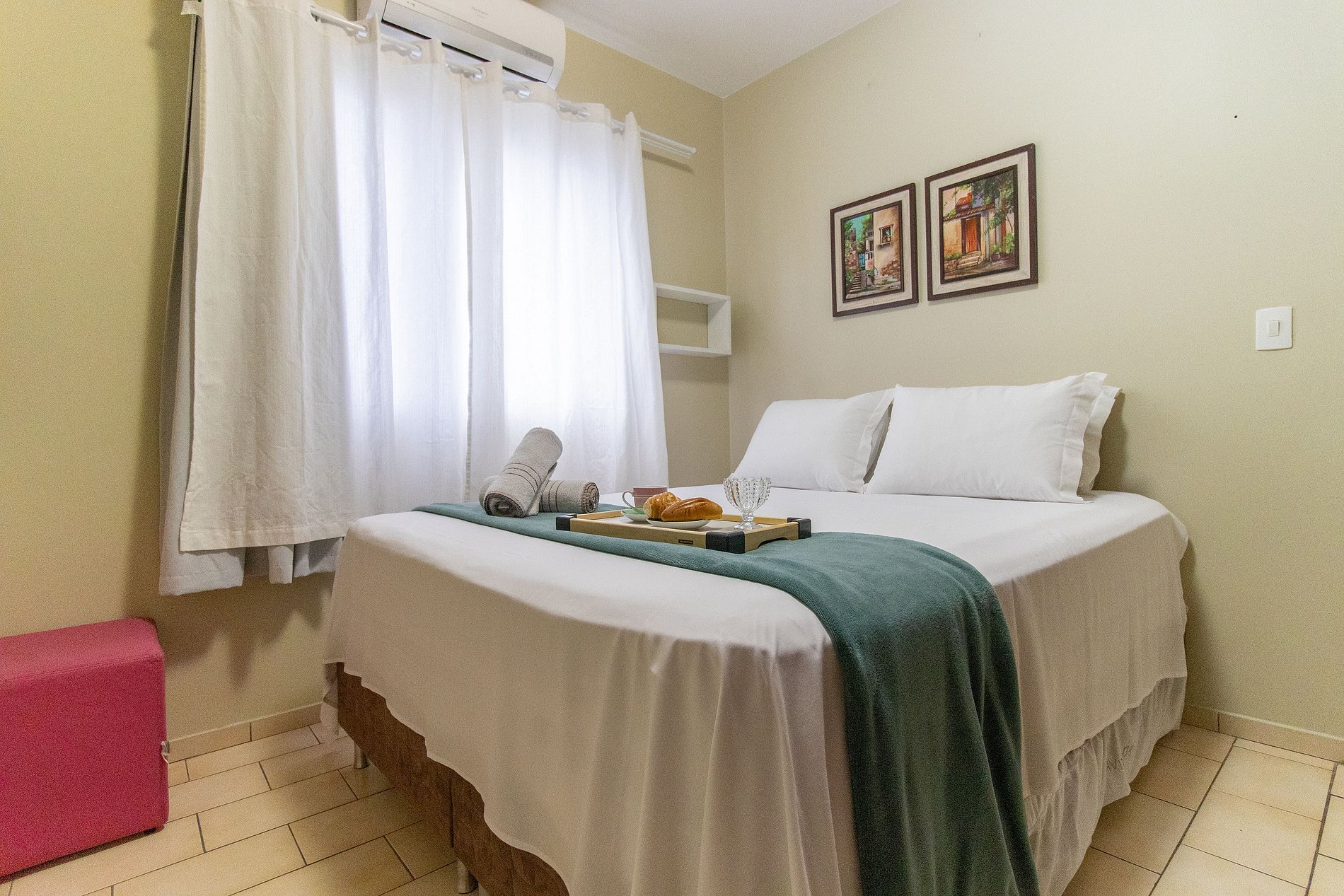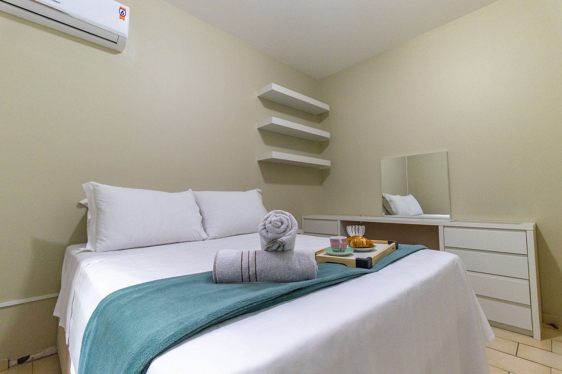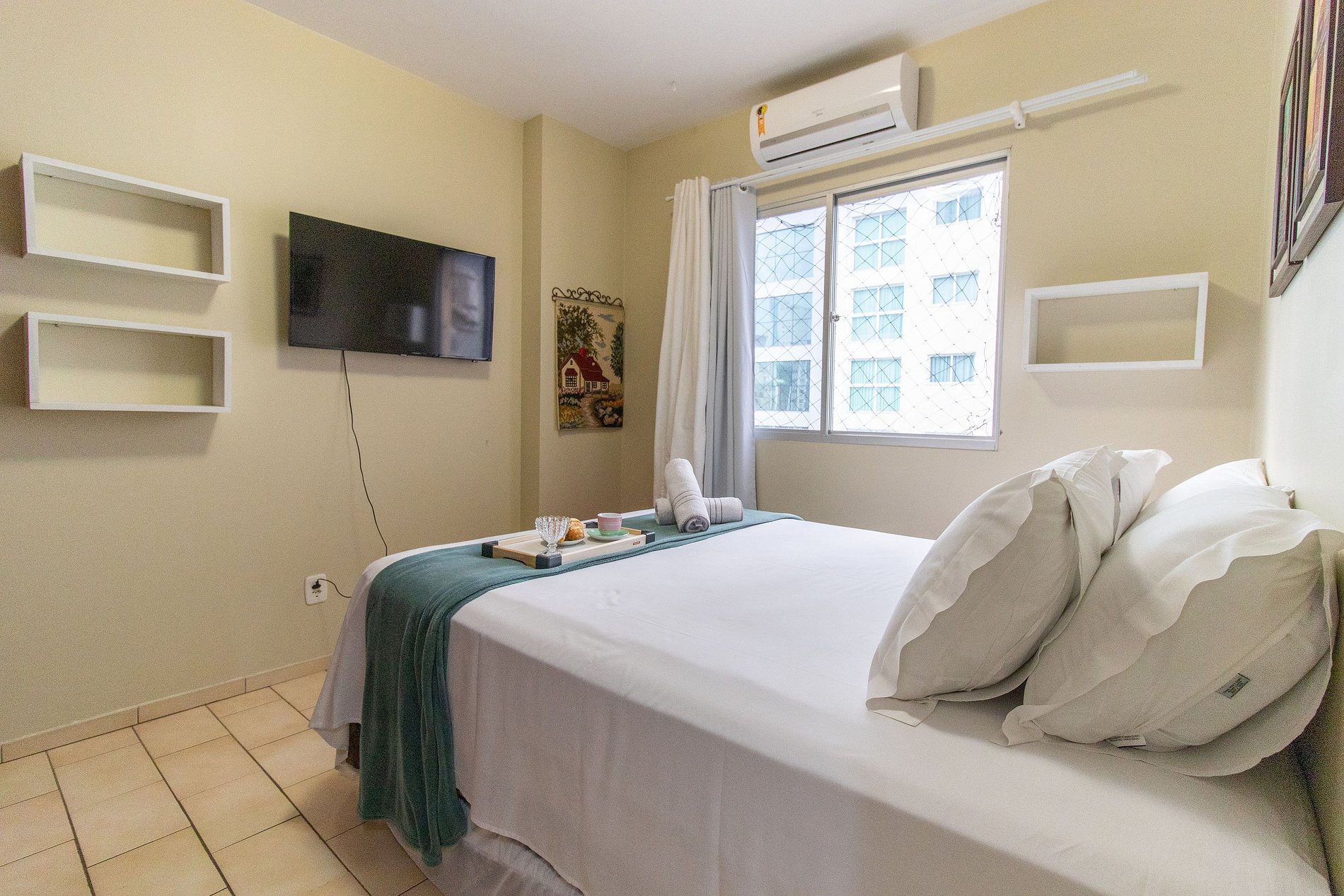 O espaço conta com ar condicionado nos dois dormitórios.