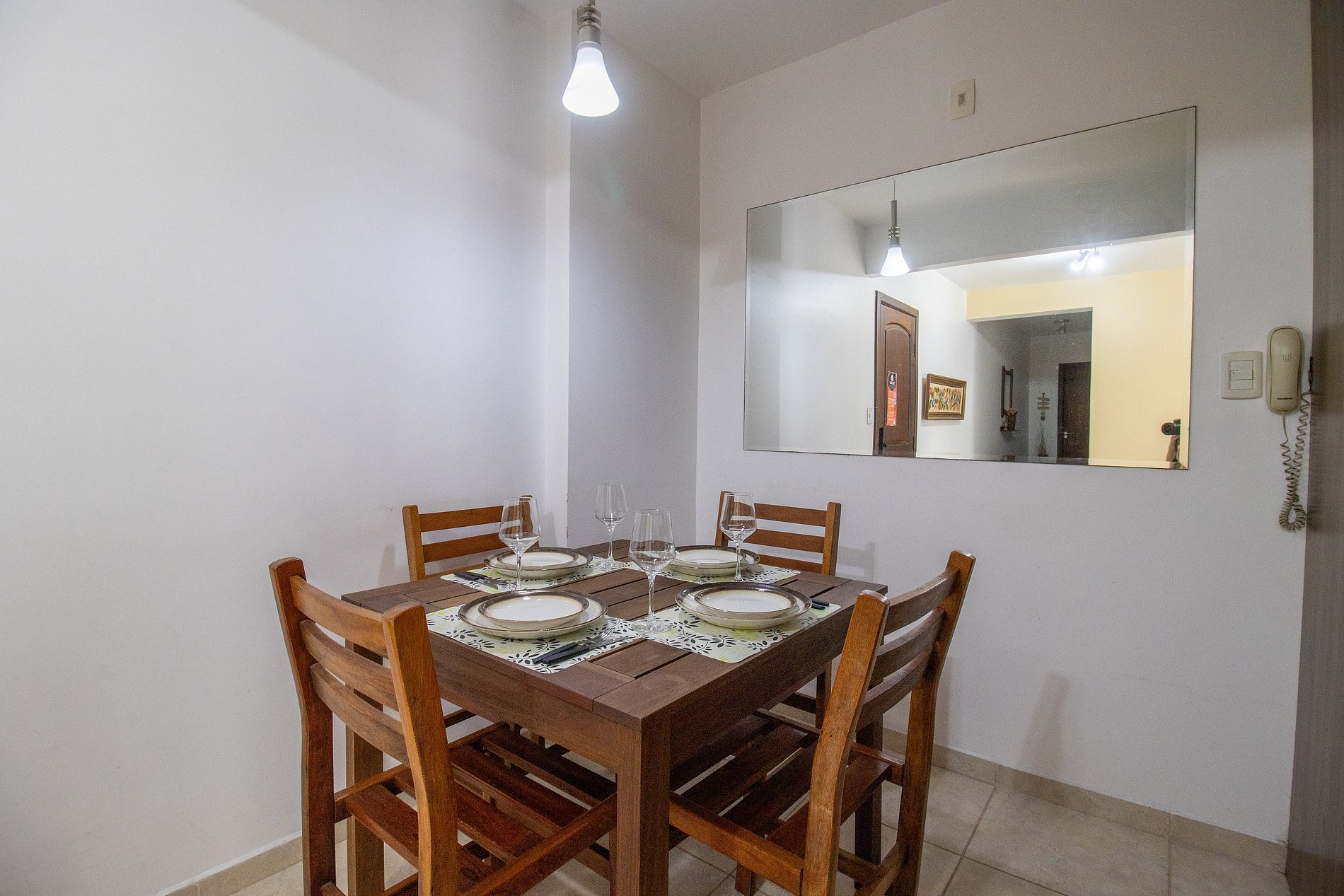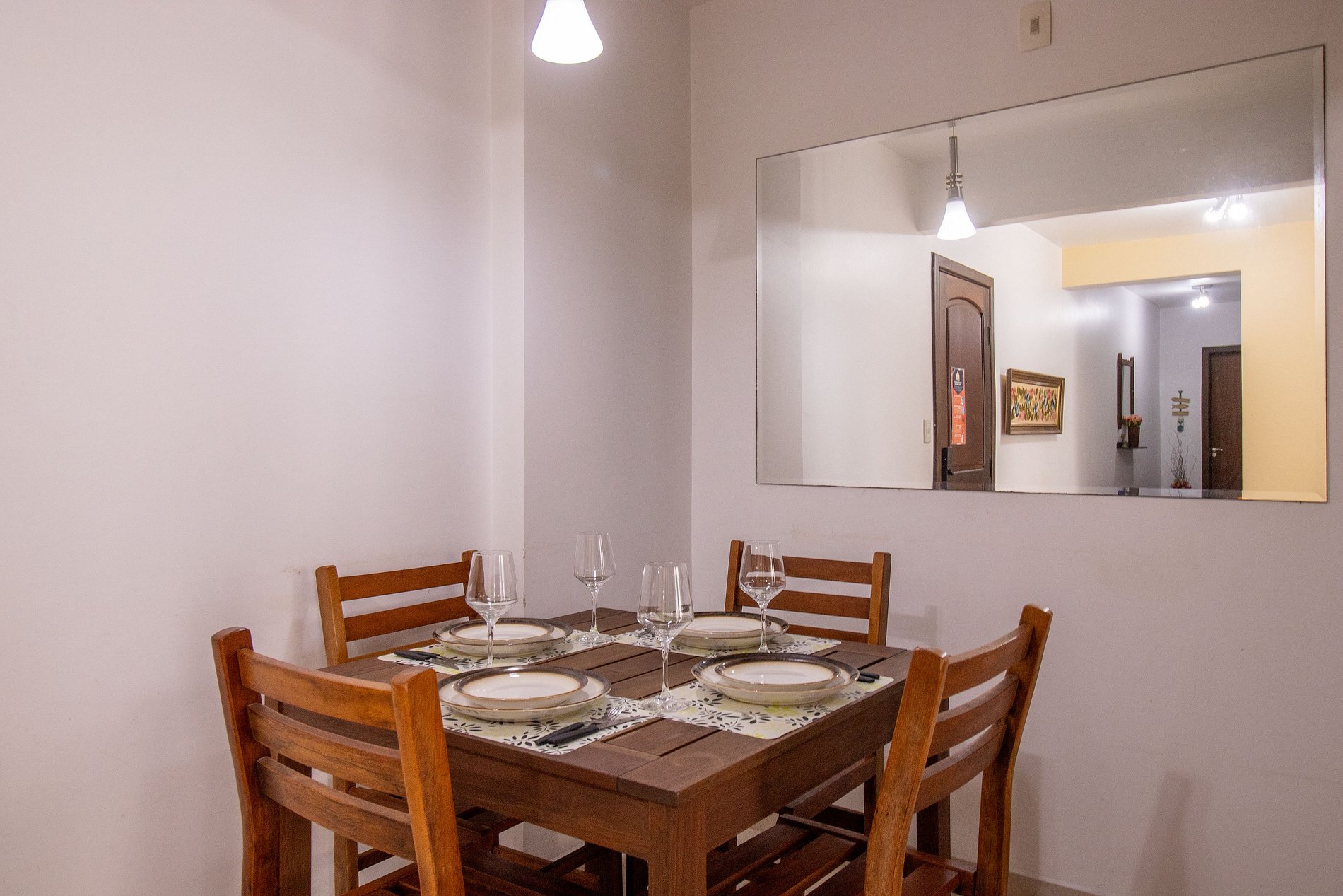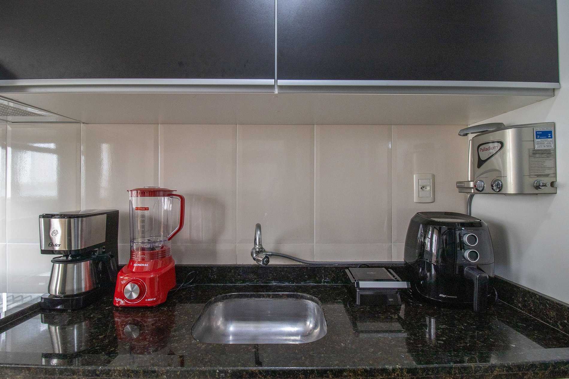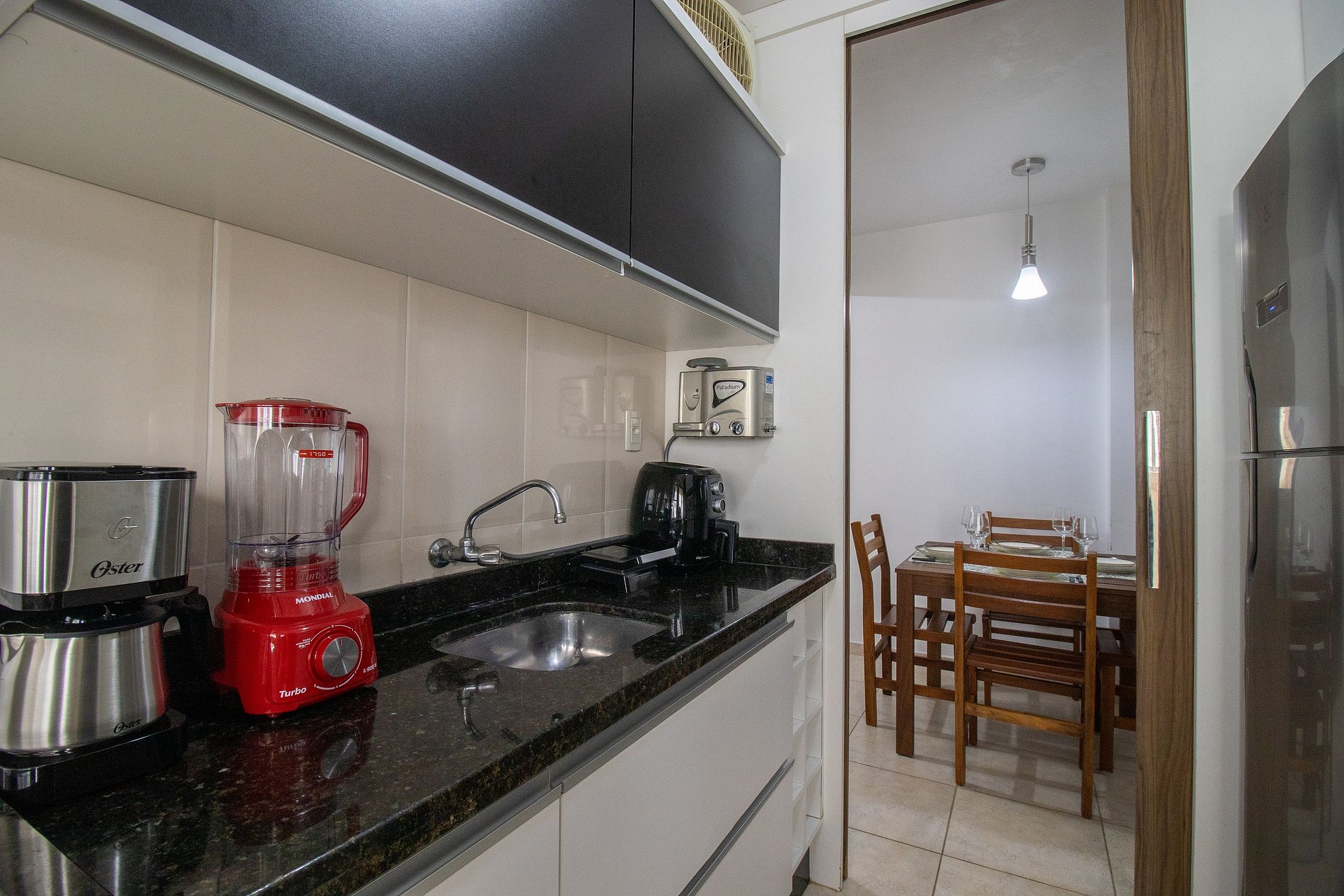 O espaço acomoda até 4 pessoas com tranquilidade, contando com dois quartos, ambos com TV com acesso aos canais abertos. Um possui cama queen e o outro uma cama king. A sala é aconchegante e integrada com a sala de jantar, perfeita pra momentos em grupo. Ainda conta com uma sacada para curtir o clima da cidade. A cozinha é completa, com tudo que você precisa no dia a dia, geladeira, fogão, microondas, filtro de água, liquidificador, airfryer, sanduicheira e cafeteira elétrica, tudo pronto para preparar suas refeições com praticidade. E para facilitar ainda mais, há uma área de serviço com máquina de lavar, além de secador de cabelo e ferro de passar. Aqui você se sente em casa, com o conforto que merece durante a viagem.