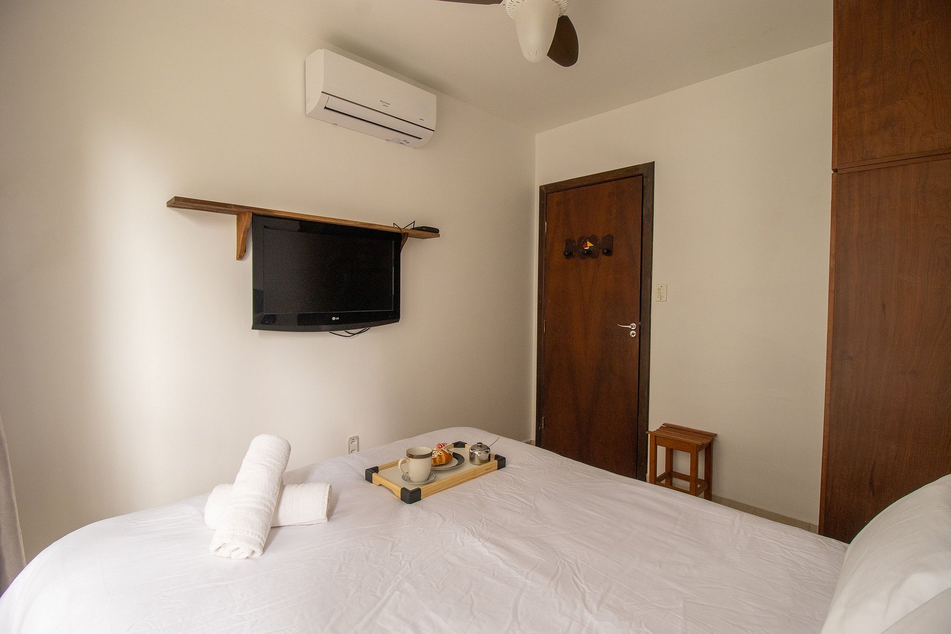 O apartamento conta com três ares-condicionados split, sendo um na sala e nos dois quartos. Todos funcionam no modo refrigeração, garantindo um ambiente fresquinho e confortável nos dias mais quentes.