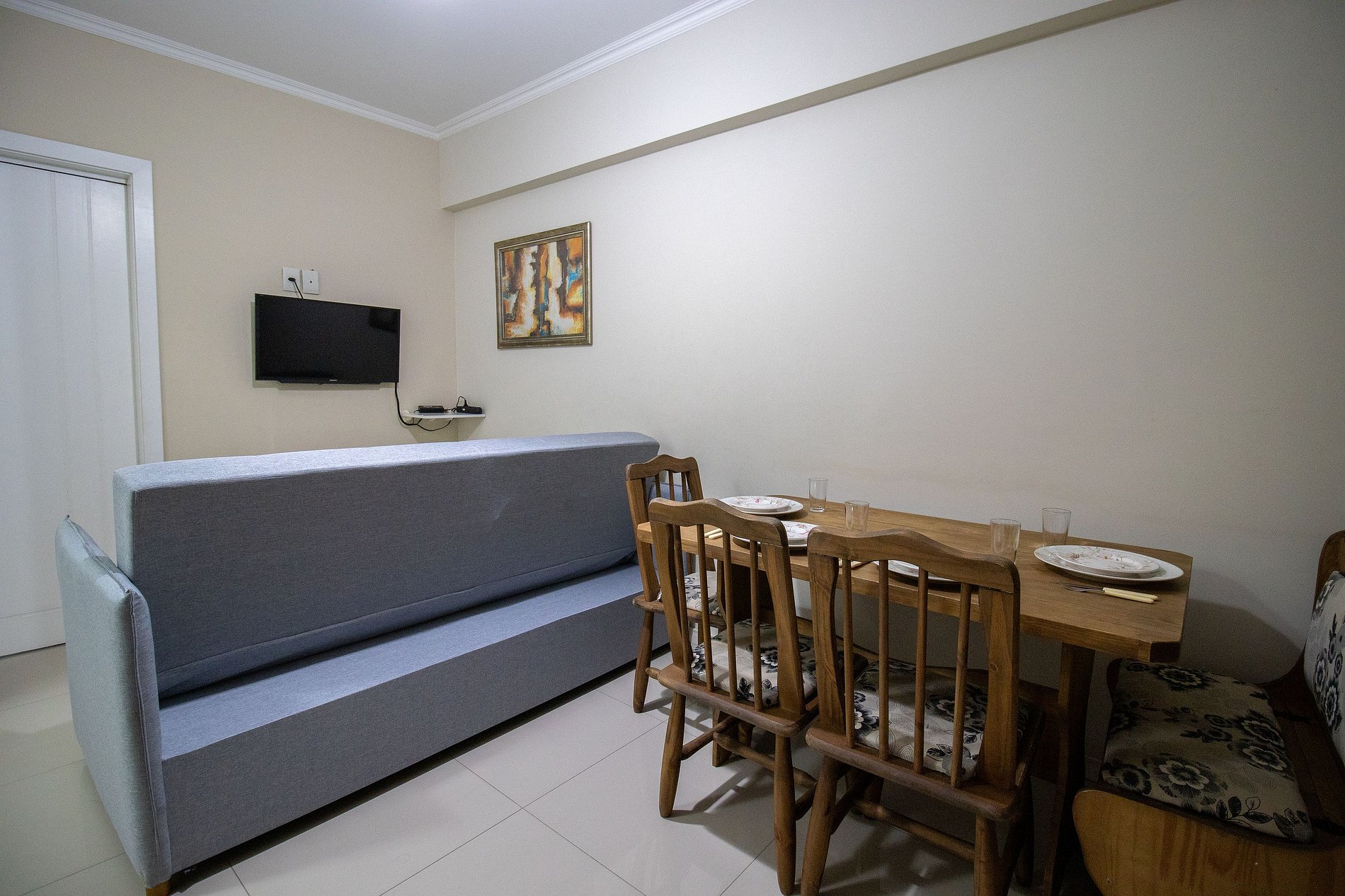 Internet wi-fi de boa velocidade própria do apartamento, TV Smart na sala.