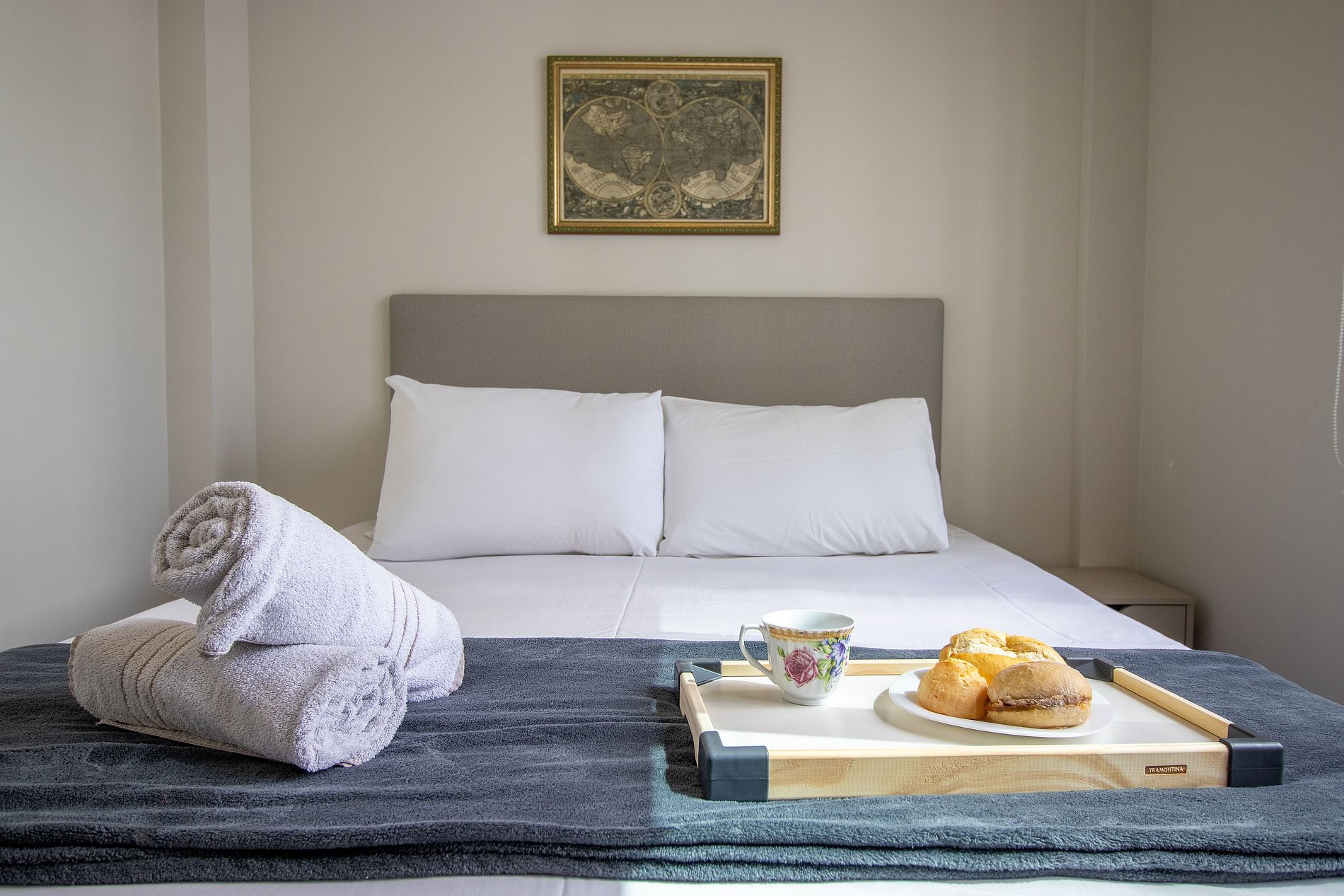 Disponibilizamos roupa de cama básica (lençol de elástico, sobre lençol e travesseiros com fronha) e uma toalha de banho por hóspede. Oferecemos um edredom para cada cama de casal, e para o colchão avulso fornecemos uma manta de microfibra, garantindo seu máximo conforto.