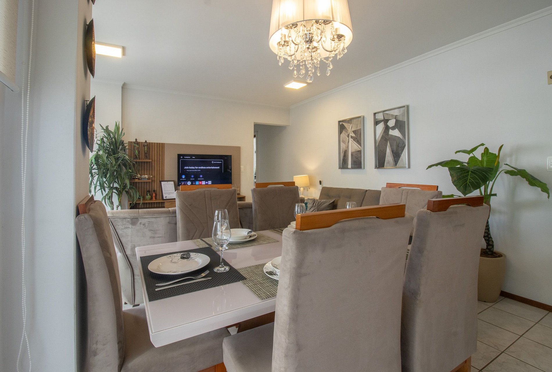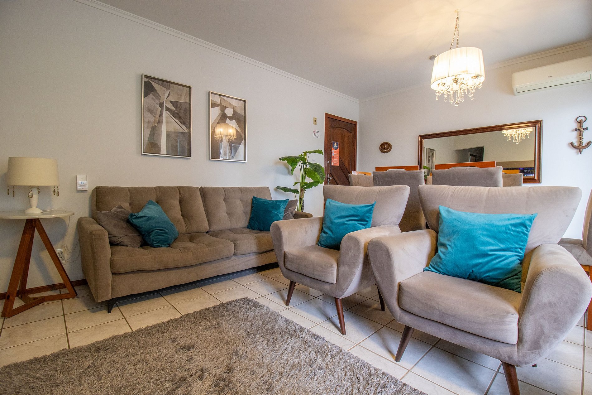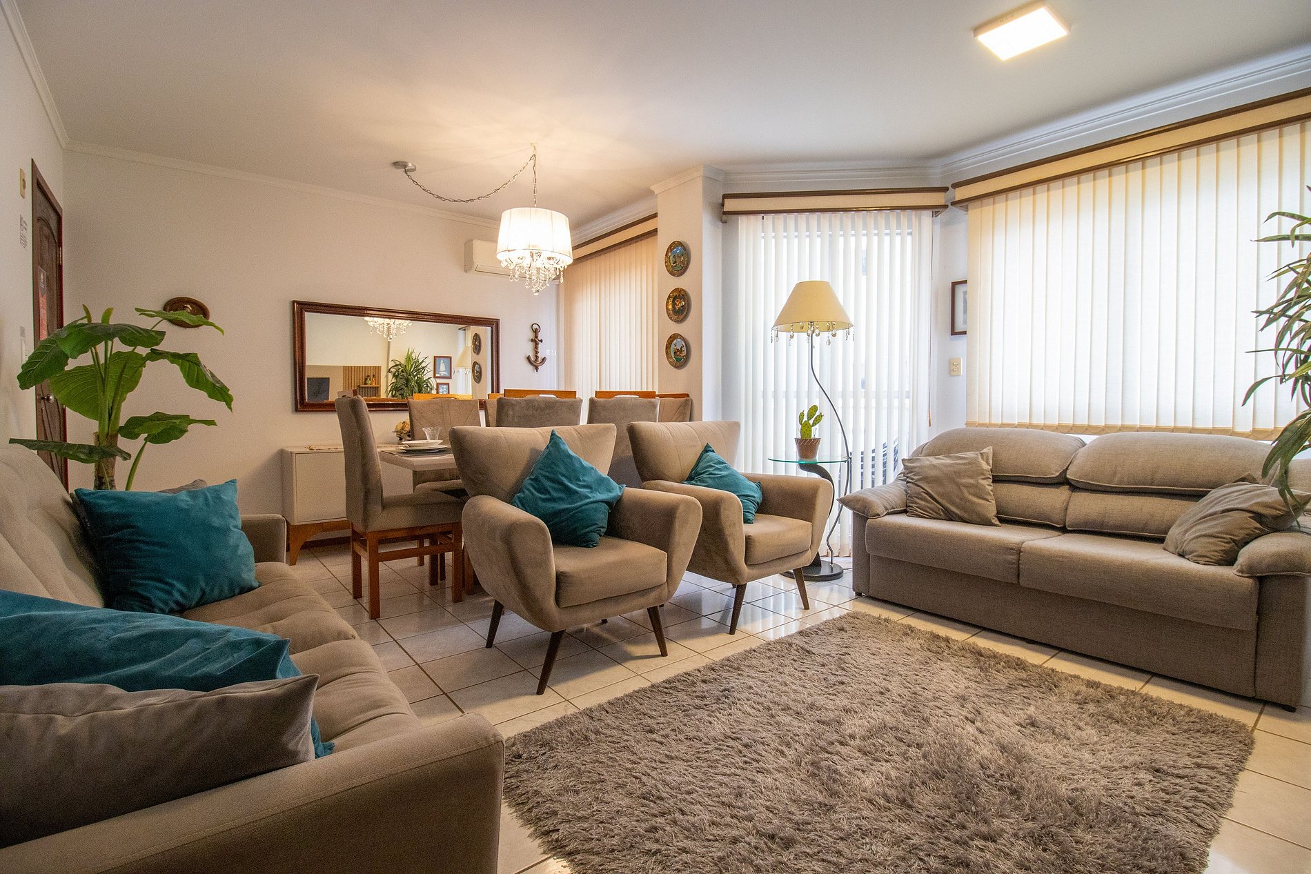 O apartamento é bem iluminado e arejado. Conta com uma suíte, um dormitório e um outro quarto menor após a cozinha com banheiro. Ao total são três camas casal. Há três banheiros com chuveiros elétricos. O apartamento possui uma sala com TV Smart e com dois sofás confortáveis A cozinha é equipada com utensílios para refeições deliciosas básicas, conta com: sanduicheira, cafeteira elétrica, liquidificador, microondas e lava louças. A área de serviço possui uma máquina de lavar., varal, ferro de passar roupas e secador de cabelos para maior comodidade. Disponibilizamos roupa de cama básica (lençol de elástico, sobre lençol e travesseiros com fronha) e uma toalha de banho por hóspede. Oferecemos um edredom para cada cama de casal.