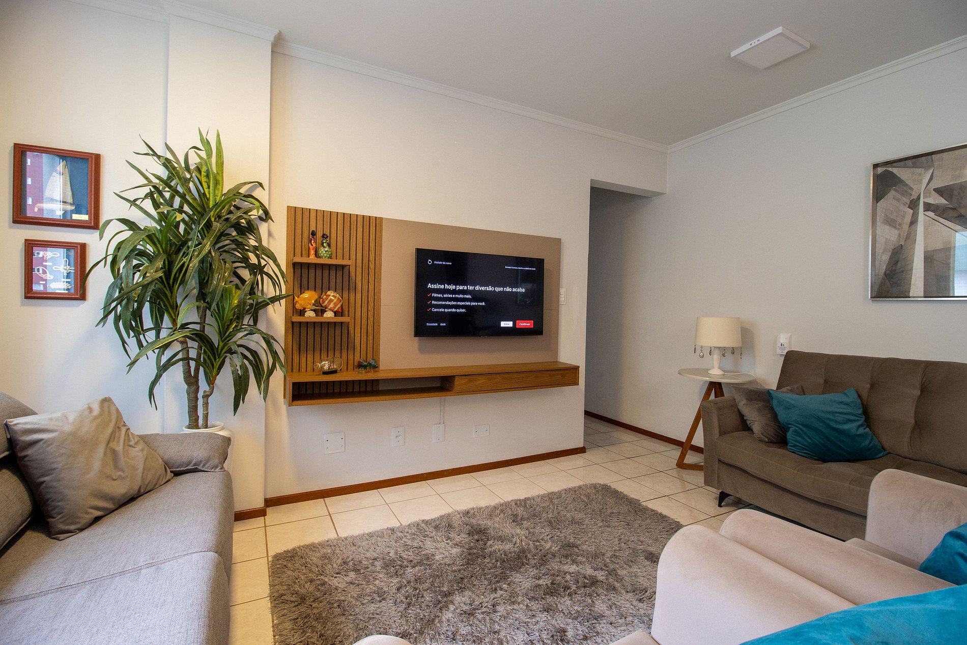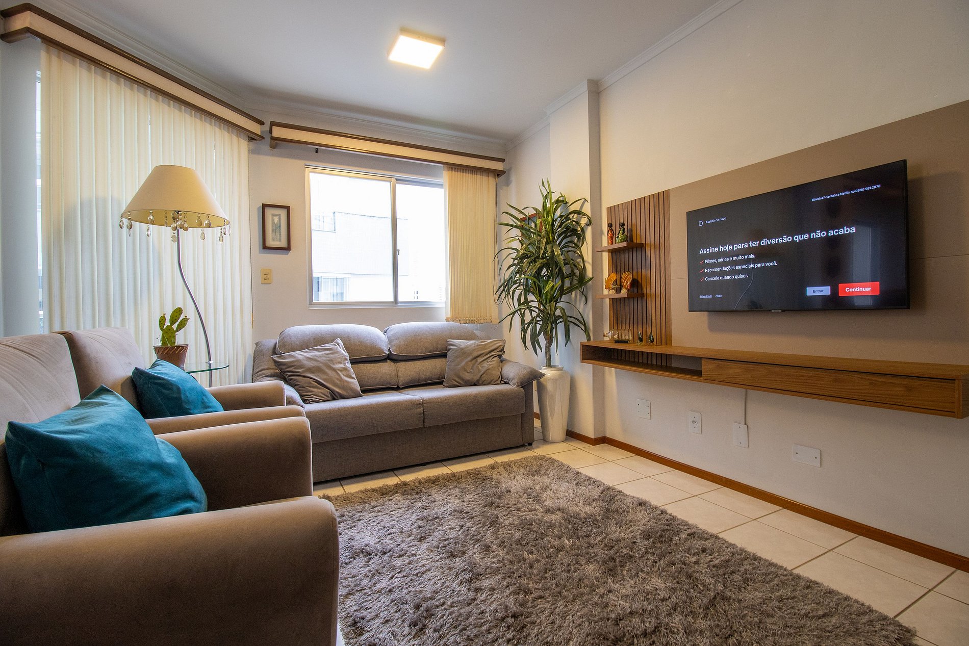 Espaço com internet wi-fi própria e de boa qualidade, própria para home office. Conta com duas Tv's Smart, sendo uma na sala e na suíte.