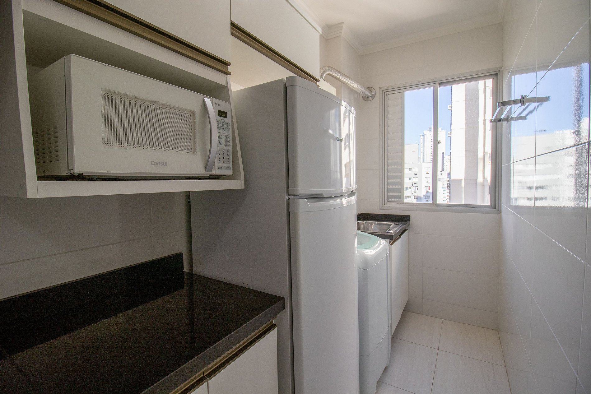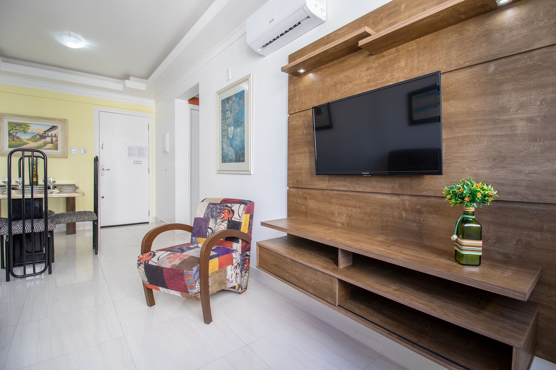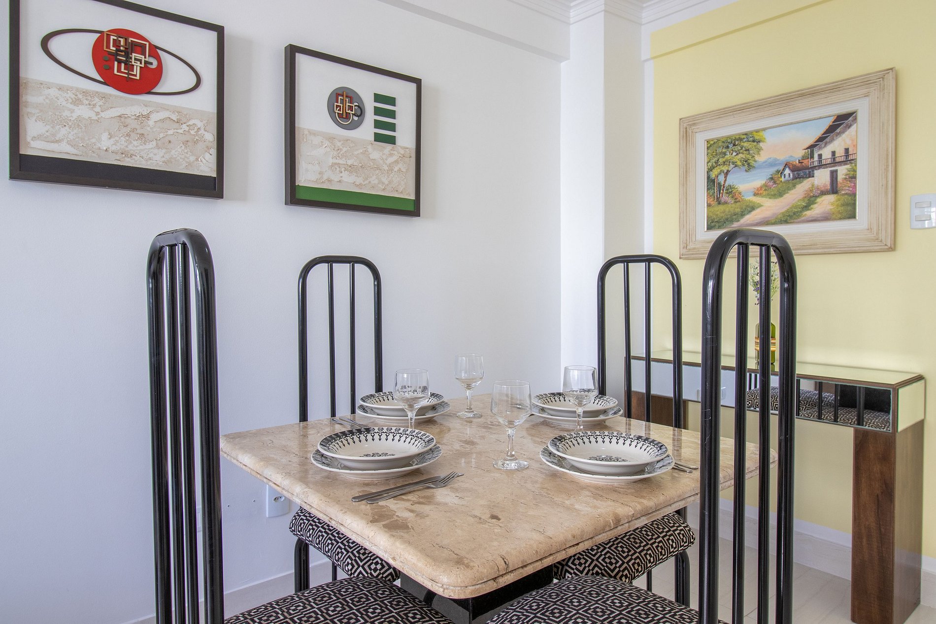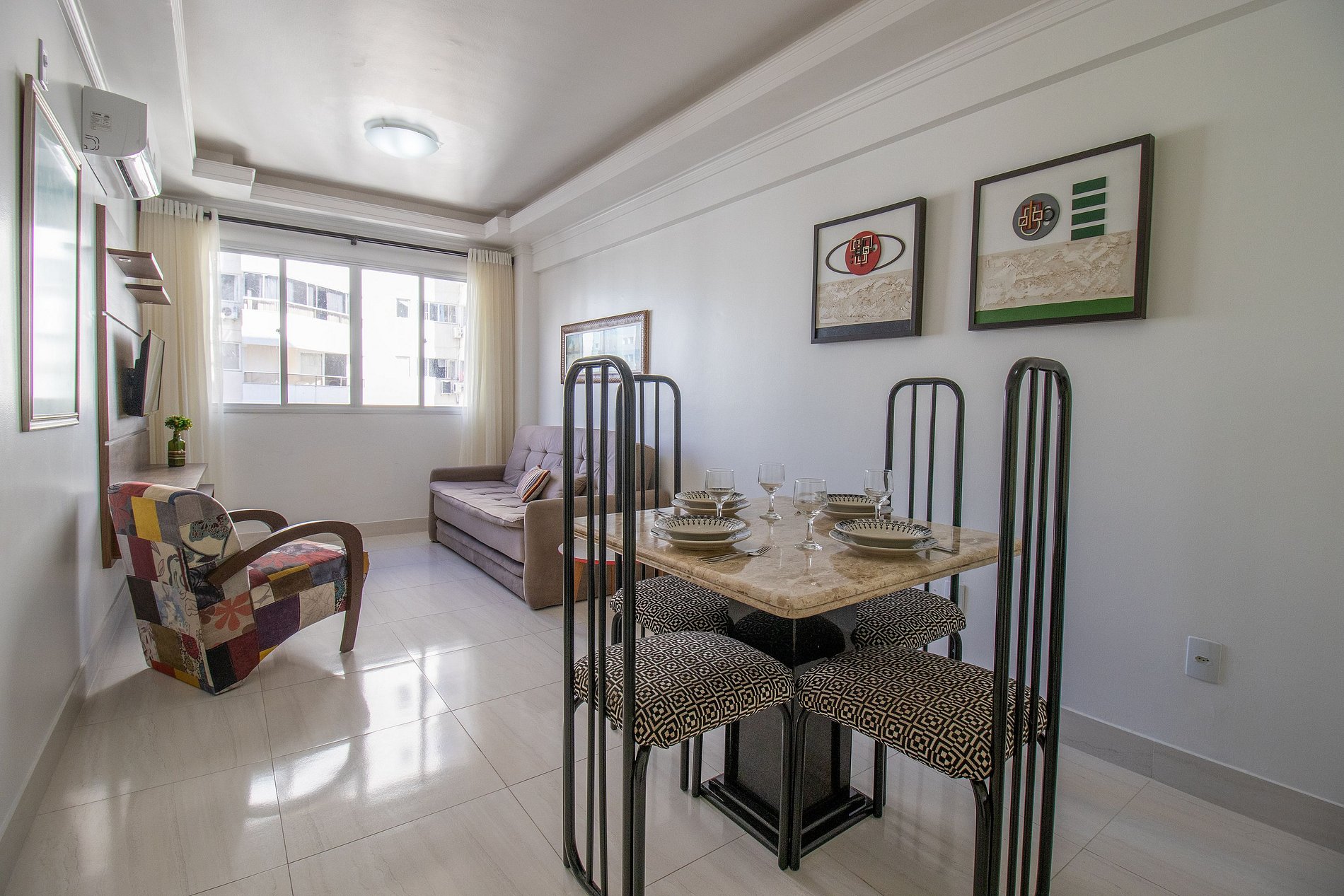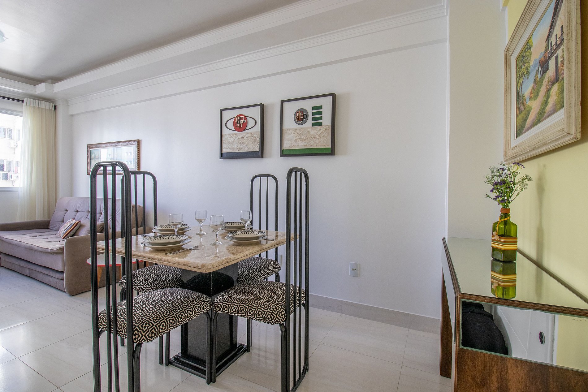 O apartamento dispõe de um dormitório climatizado. Ao total temos uma cama de casal, um sofá cama e um colchão de solteiro avulso. Sala ampla de dois ambientes com o sofá cama, mesa de jantar e uma TV. Cozinha completa com todos os utensílios para preparar cozinhar refeições básicas. Lavanderia de lavar roupas e local para secar roupas.